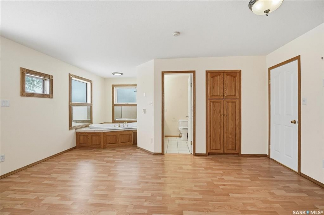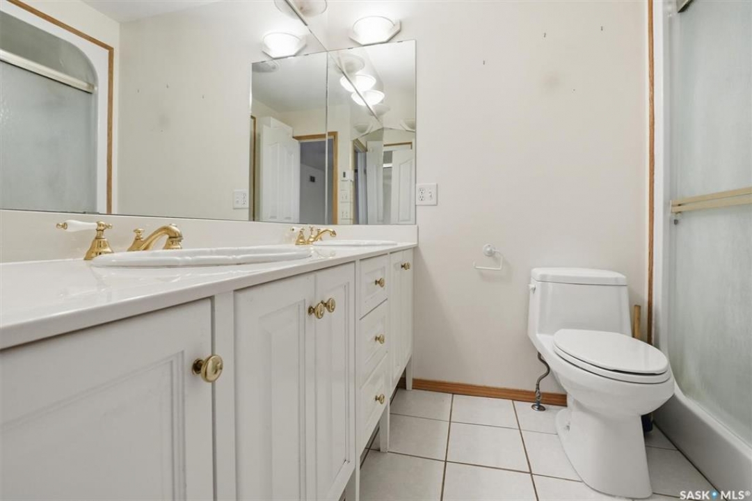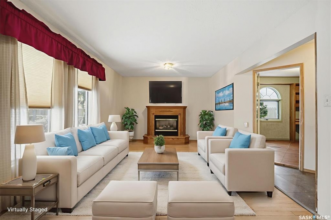 Welcome to 330 Fehr Crescent. This home is located on large pie shaped lot on a quiet crescent in Martensville. Enjoy your large back yard that is fully fenced, lots of mature trees and a large shed. The lot does have a back lane that gives you the option of rv parking and or a detached future garage. Out front you have a double interlocking block driveway that leads to the double attached garage that is heated! Once inside you will find a very spacious home that has 1820 square feet spread over two levels. The main floor has a large foyer, formal dining room, large kitchen, den, 2 piece bath and a large living room that features a gas fire place. Upstairs features a huge master bedroom with a walk in closet, gas fireplace, ensuite bathroom with a separate jetted tub! Also on the upper level is another 4 pc bathroom and two more bedrooms. The basement has a storage room, utility room and a bedroom with a walk through closet to the 4 pc ensuite. The basement could also be used as a small family room. Call today to view!!