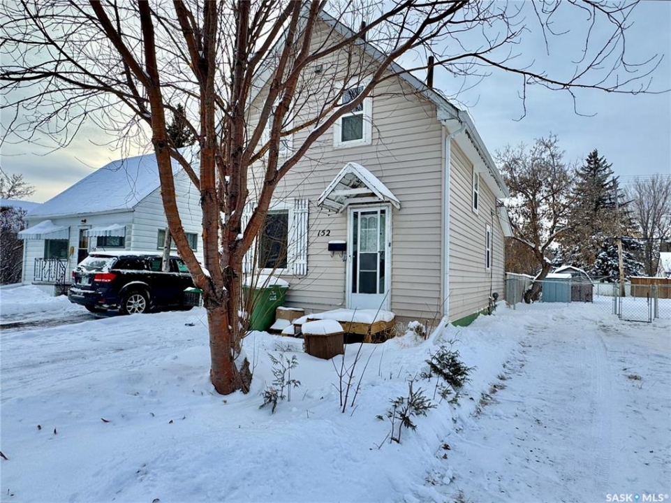 Welcome to 152 6th Avenue North—a charming character home steps from downtown and full of thoughtful updates blended with original details you'll love. From the moment you walk in, the home feels inviting, with updated linoleum guiding you from the front entry into a bright kitchen featuring refreshed laminate countertops. The connected dining and living rooms offer a cozy, everyday gathering space, accented by laminate flooring and original millwork that brings timeless warmth to the main floor. Upstairs, you'll find two comfortable bedrooms, including a primary suite with its own spacious sitting room—an ideal spot for a reading nook, nursery space, home office, or simply a quiet retreat. Original doors and hardware add an extra layer of charm throughout the home. The bathroom has seen a simple renovation, keeping the space fresh and functional for modern living. The basement offers a high-efficiency furnace and a newly updated water heater (Nov 2024), giving the next owner peace of mind for years to come. Outside, enjoy vinyl siding, a detached single-car garage off the alley, and a partially fenced yard that could easily be fully enclosed with very little effort or cost. If you've been searching for an affordable home with character, updates, walkability, and room to make your own, this property is ready to welcome its next chapter. Schedule your viewing today!