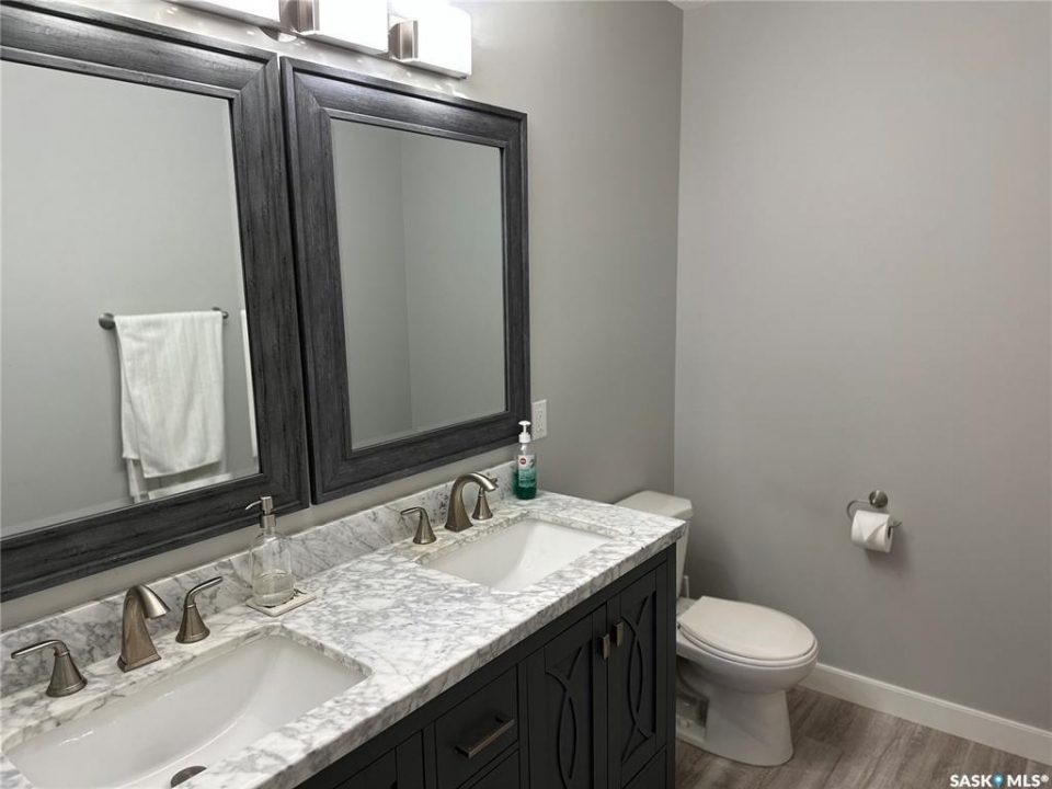 Beautifully Renovated Home with Modern Finishes and Spacious Layout! This completely renovated home, originally built in 1985, offers over 1,100 sq. ft. on each level and blends modern style with functional living spaces. Featuring an attached garage and a low-maintenance yard, this property is move-in ready and ideally located close to the local school. Inside, you'll find a stunning updated kitchen with quartz countertops, crisp white cabinetry, a stylish tile backsplash, and a center island with seating. The kitchen flows seamlessly into the dining room, creating an inviting space for everyday living and entertaining. The spacious living room offers plenty of room for relaxation. The main level includes two bedrooms, including a generous primary suite complete with a beautifully updated 3-piece ensuite featuring dual sinks. A modern 4-piece bathroom, a convenient main-floor laundry room, and a 2-piece bathroom off the mudroom add to the thoughtful layout. The fully finished basement provides even more living space with a large family room, two additional bedrooms, a 3-piece bathroom, and a dedicated storage room—perfect for growing families or guests. Outside, the low-maintenance yard and concrete driveway add convenience and curb appeal. This home offers modern upgrades, ample space, and a fantastic location—truly a must-see!