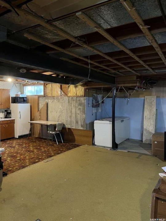 For more information, please click the "More Information" button. Beautiful single family bungalow. 2 bedroom, 2 bathroom home with upstairs and downstairs kitchen areas. 2 bedrooms, 4 piece bathroom, living room, main kitchen and laundry room with washer and dryer on main floor. Vinyl flooring throughout main floor. The main kitchen has large amount of cupboard space, with stove, fridge, sink and built-in table. The unfinished basement has a kitchen space with stove, sink and fridge, and 3 piece bathroom; all materials for finishing the basement are purchased and in the home. The basement was a 2 bedroom, cold storage room and dry storage rooms, along with large open kitchen and living space. Front entrance into living area and side entrance to basement, making for a suitable rental basement suite. Single vehicle carport and detached garage. There is also a gravel parking pad on the west side of the home. Large fenced in backyard with rainbird sprinkler system installed for the lawn and garden spaces. New windows and front door purchased to be installed. New shingles and furnace in 2020.The 1200 sq ft shop is located on west side of the yard with paved driveway, small office/ reception area with 1/2 bath, 100amp electrical service, 2 overhead doors, 12 foot ceiling height, open shop space and solar panels. Solar panels power both the shop and home through SaskPower program. Located within a 5 minute walk of school, and grocery store. 10 minute walk to the hospital and hockey rink. Leader is located at Hwy junction of 32 and 21 along the south Saskatchewan river valley, an hour from Kindersley, and an hour and a half to Swift current or Medicine hat for city necessities. Amenities include K-12 school, ball diamonds, out door swimming pool and slide, senior hockey team, boxing club, school of dance, Beautiful 9 hole grass green golf course, skating and curling rink, hunting and fishing. A great place to raise a family or retire!
