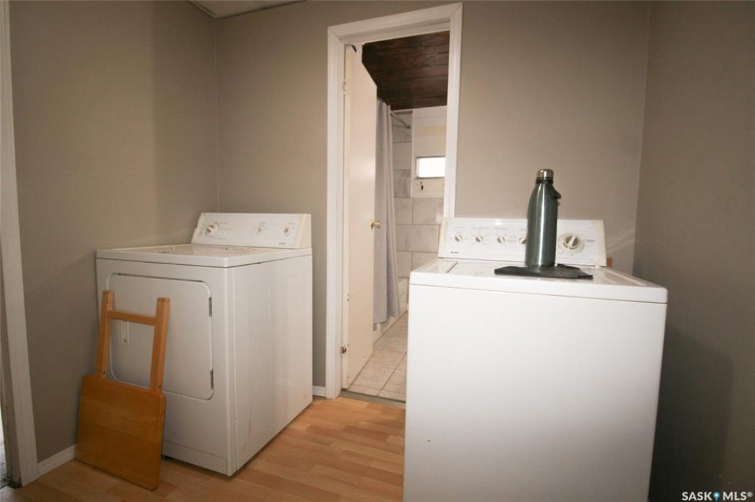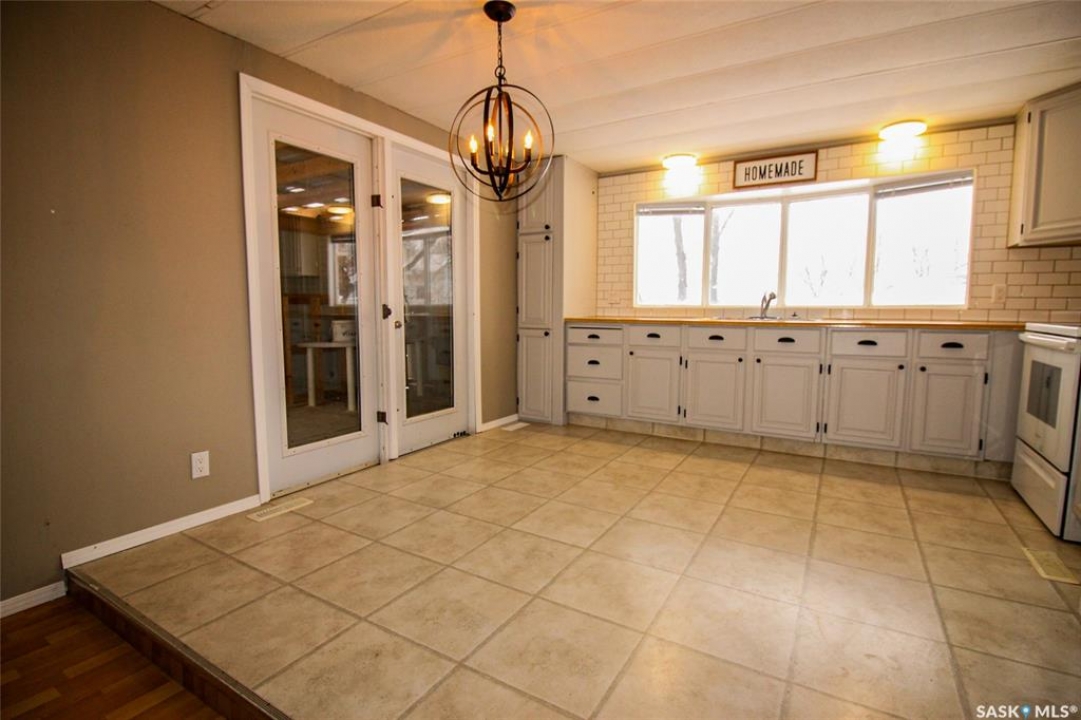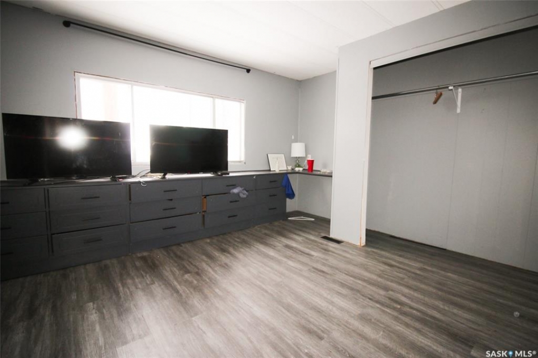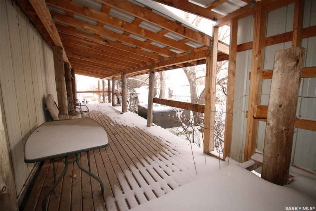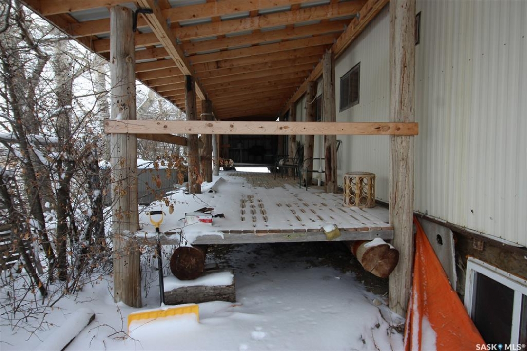 Bring your fishing rod and move into the best cottage in Simmie, SK just steps from Duncairn Dam. This property is a double lot site on a corner with all the amenities you are looking for. The home is a mobile home, set up on a full preserved wood basement. Lots of loving care has been put into this home with, upgraded electrical panel, new natural gas furnace, new hot water heater and an all metal roof. The home is pretty unassuming from the street but features two large covered decks for all of the outside enjoyment. The home has an open kitchen to living room space with neat laminate flooring and access to the deck through garden doors. There are two bedrooms with tons of closet space and the main floor bath is fully renovated with ceramic tile and a modern look. The lower level is framed out for various rooms and rough plumbed for a bathroom. With all this space, there is room to add any out building you are interested in, the current Atco Trailer on the site is slated to be moved in the spring so there is plenty of room for a garage. Affordabe and peaceful this property has location locked in and is ready for you.