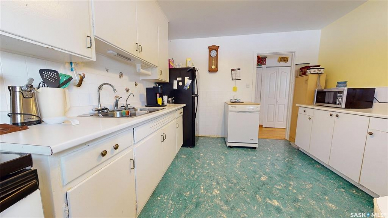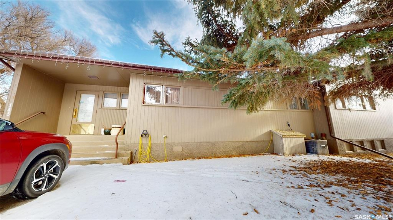 Located in Fox Valley, a quiet community in SW Saskatchewan, 1 hr from Medicine Hat, 40 min from Maple Creek and 20 min to Leader. This home offers ample space for your family or potential investment income with rental suites.. Featuring 5 bedrooms and 2 bathrooms. Originally designed as a dual purpose residence with a living space on one side and Dr office on the other. Through the South side entrance which was the living space side, there is a porch leading into the living room on one side and an office on the other. There are 2 bedrooms and 4 pc bath on this end of the home. There are original hardwood floors throughout this living space. The eat in kitchen is at the front of the home and has ample cabinets. The hallway has closets close to the entrance. You can also easily access the back yard from the split back entry or continue to the partial basement. Presently unfinished, this area could be rec space and ample storage. Continuing to the other side of the home there is a large pantry with additional cabinet storage. There is a 2 pc bath operational and another 2 pc rough in (was his/hers from dr office) which offers opportunity to expand or create en-suite from one of the bedrooms. Down this hall there are 3 more bedrooms that can be easily used as office or craft (present use). At the North end there is another front entrance/porch and a second family room space. The additional opportunity for this home is to utilize it as a multi-generational family living with the separation of space, Or create full separation with a rental suite. This home also sits an an extra large 128' X 125' fully fenced lot. There is parking at both sides with room for 4 cars/RV and room for 2 or more on the other end. Plenty of extra space for additional parking or building a large garage. The yard has multiple places to enjoy, including mature trees, a fire pit area, a play area and a patio. This property offers a unique layout with ample possibilities.