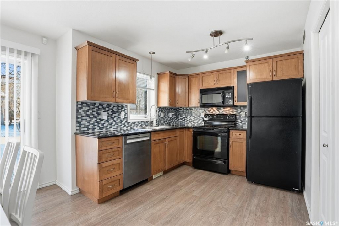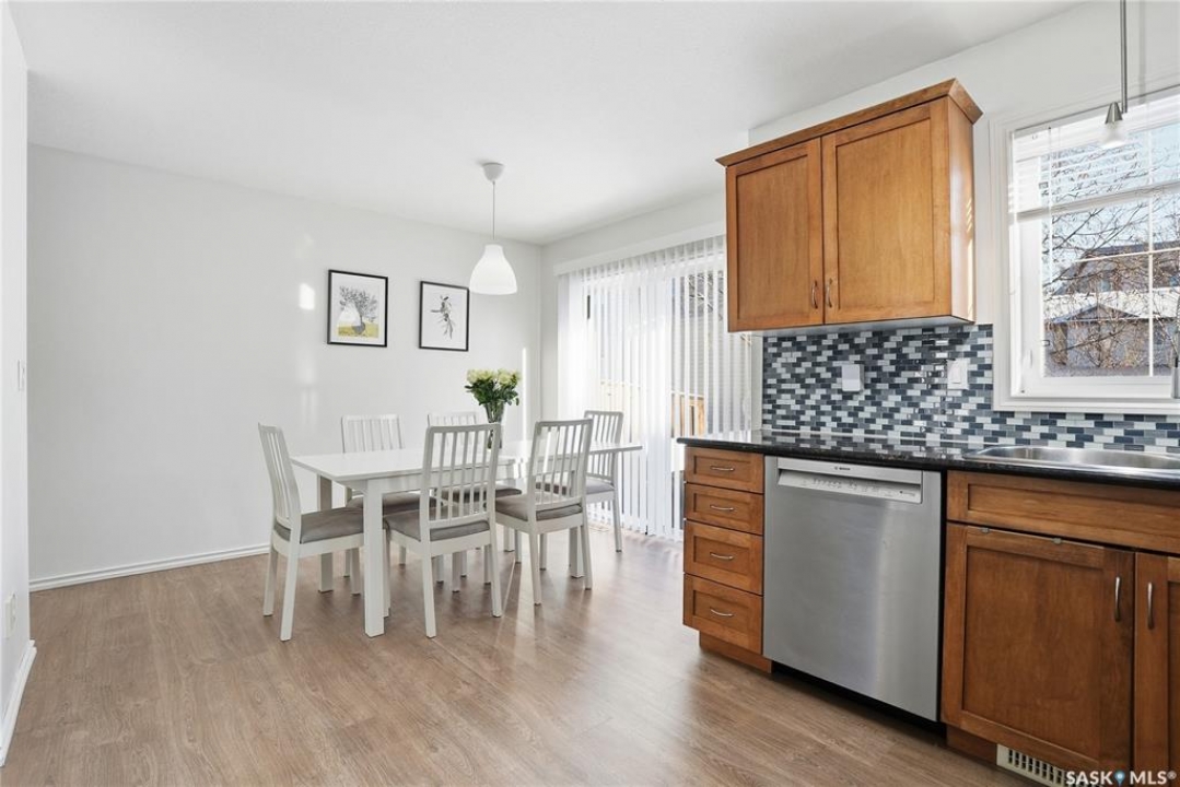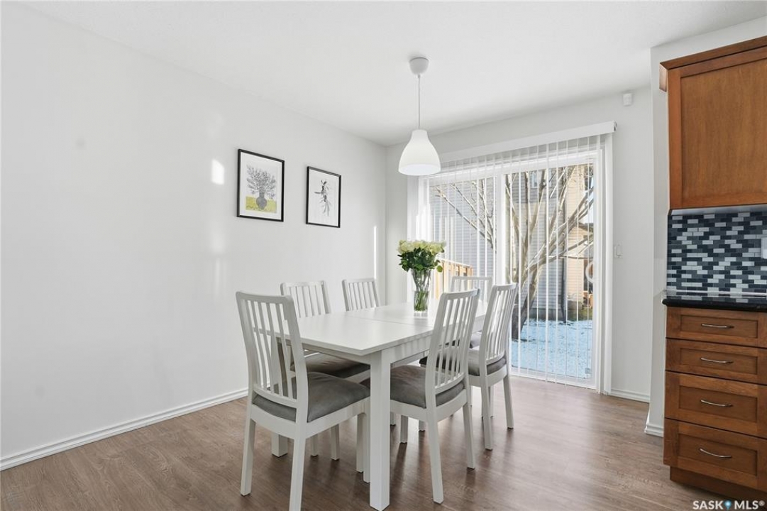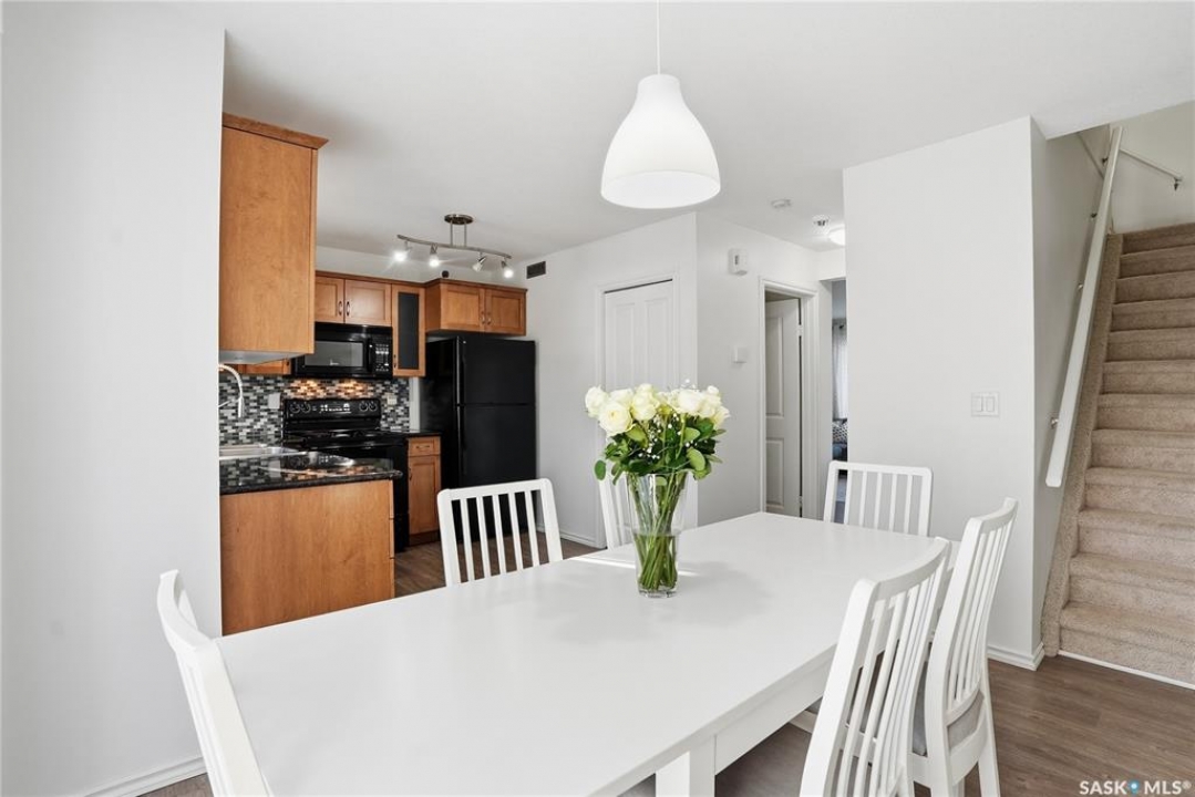 Welcome to Suite 120 in Saskatoon's Pine Creek townhomes! This updated 3bed/2bath home is beautifully positioned in one of the Lakewood's most admired collection of townhomes. A premium location known for its access to the incredible array of parks that surround it, rich naturalized areas, and one of the longest networks of continuous walking paths in the city - it is an incredible setting for those that love the outdoors! Pine Creek townhomes are also conveniently situated within a 5min walk of Lakewood's excellent cafés, restaurants, grocery stores, and gyms, offing the best in daily conveniences and active city life. Inside, the home interior offers a great, time-tested floor plan, including a formal entry, a spacious living area that is wonderful for hosting, bright kitchen & formal dining spaces with sliding door access to the home's private rear patio, a main floor powder room, and 3 generous bedrooms. In the lower level, one will discover a bright and professionally finished family room with modern pot lighting and upgraded flooring, office nook, laundry area, and ample storage. The home has also seen a variety of modern touches and stylings, including newer flooring on the main level, paint, window coverings, Bosch dishwasher, and newer pendant and vanity lighting selections. This unit enjoys a prime location within the townhome collective, with views of the green space from the rear of the home and outdoor entertaining area. The home comes complete with window coverings, central air, newer water heater, a full appliance package, and electrified parking amenities outside one's door (with visitor parking conveniently situated around the corner from the suite). The Pine Creek condominiums are located just a short bike or drive from the Lakewood Civic Centre, Cliff Wright Library, Briarwood, Wildwood and Lakewood parks & paths, soccer fields & tennis courts, and neighbourhood schools (and is within the school bus service catchment for Lakeridge & Rosewood).
