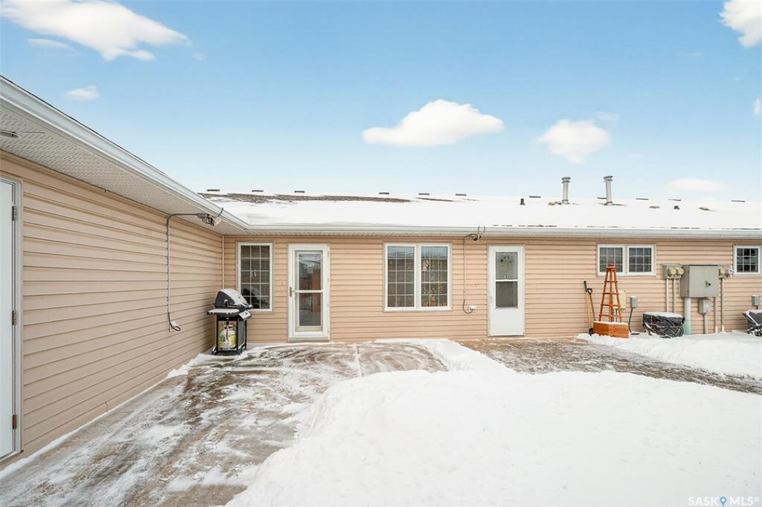 Are you looking for easy living? This beautiful condo boasts 1,176 sq.ft. of living space all on one level with a double attached garage! Excellent curb appeal as you pull up - pride of ownership shows well! Centrally located in the downtown area - making the shops a nice walk from your home! Heading inside you are greeted by a spacious foyer that opens up into a good sized living room! Heading back from there we find a spacious kitchen / dining area. You are sure to love this kitchen - boasting oak cabinets, a large island and lots of counter space! Off the kitchen you have access to your private patio area and a shared backyard! Down the hall we find a spacious bedroom at one end followed by a laundry room. Next in line we find a nice 4 piece bathroom. At the other end of the hall we have a large primary suite - complete with a walk-in closet and a 2 piece ensuite! Off the back of the home we have a double attached and heated garage which is sure to be a hit! Behind the garage is a concrete driveway with 2 more parking spots just for you! This home is ready for you to move in and relax! No more cutting grass or moving snow here! Reach out today to book your showing!