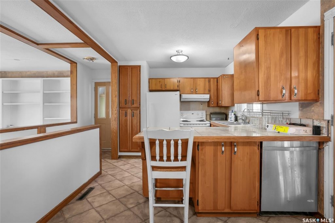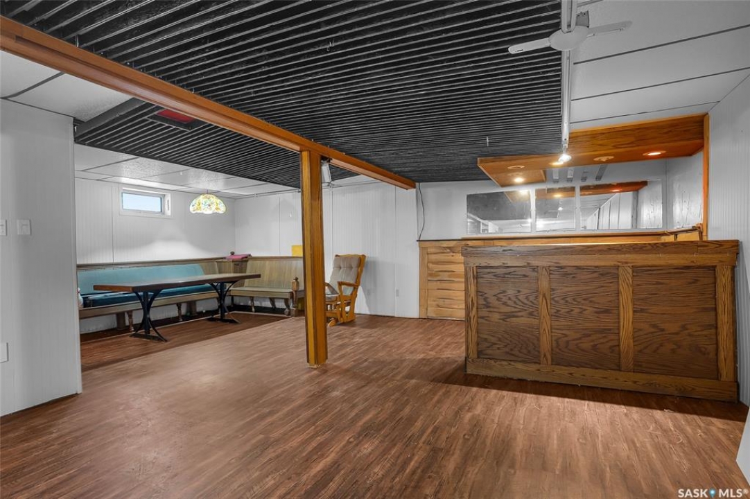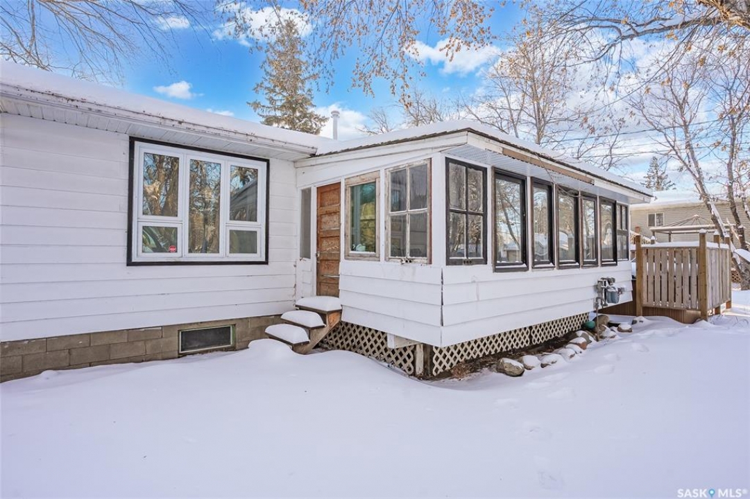 This 1,040 sq. ft. 3-bedroom bungalow on a corner lot with numerous updates and unique bonus buildings. Main floor features spacious living areas, updated kitchen (white appliances), and a bathroom with steam shower. Newly renovated basement offers a large family/rec room and new 2-piece bathroom. Home includes HE furnace, new hot water tank. Cozy enclosed porch for summer enjoyment. Property includes three additional buildings: • 66 sq. ft. cabin with wood stove and sleeping area. • 286 sq. ft. two-storey guest house with finished upper level, electricity, and space for future bathroom and kitchen. • 896 sq. ft. boathouse/garage/workshop with wood stove and greenhouse section. LARGE private backyard (23,700 sq ft ) with mature trees, fire pit, and hot tub pad. Located in Blaine Lake, “Gateway to the Lakes,” with close access to amenities and within an hour of Saskatoon, Prince Albert, and North Battleford. Your options with this property are endless and the corner lot has access from the north & south side of the property. Many options with this property .