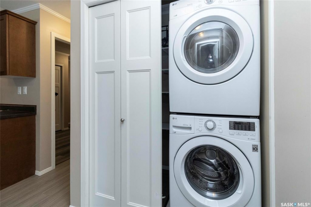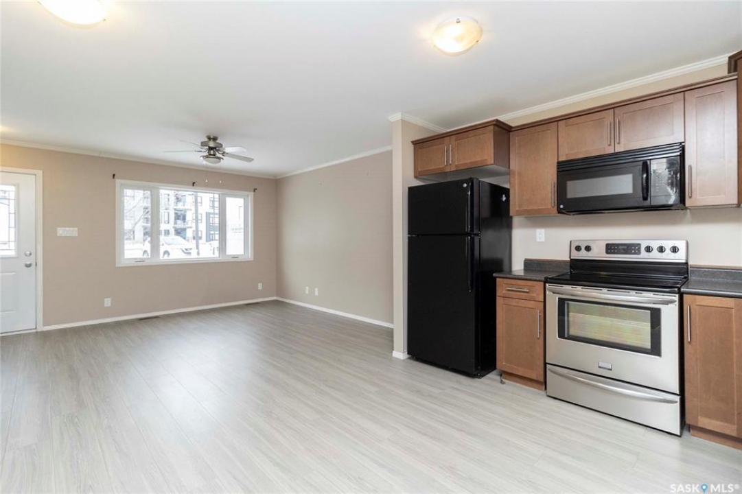 Step into contemporary comfort with this stylish “End Unit” condo nestled in the heart of Evergreen. This bright and inviting 2-bedroom, 1-bathroom home features a smart layout complete with a convenient laundry closet and an open-concept living area designed for both relaxing and entertaining. Nearly all-new flooring enhances the fresh, modern feel, while the on-demand hot water heater adds everyday efficiency. Enjoy the bonus of a designated electrified parking stall, plenty of nearby street parking, and a partially fenced yard with patio—perfect for soaking up sunny summer days and evenings. Located just steps from Evergreen Square, you'll love having shops, dining, and amenities at your doorstep, along with easy access to parks, walking paths, and schools. Offering low-maintenance living in one of Saskatoon's most desirable communities, this home is an excellent and affordable opportunity, perfectly suited for first-time buyers, students, or savvy investors alike.