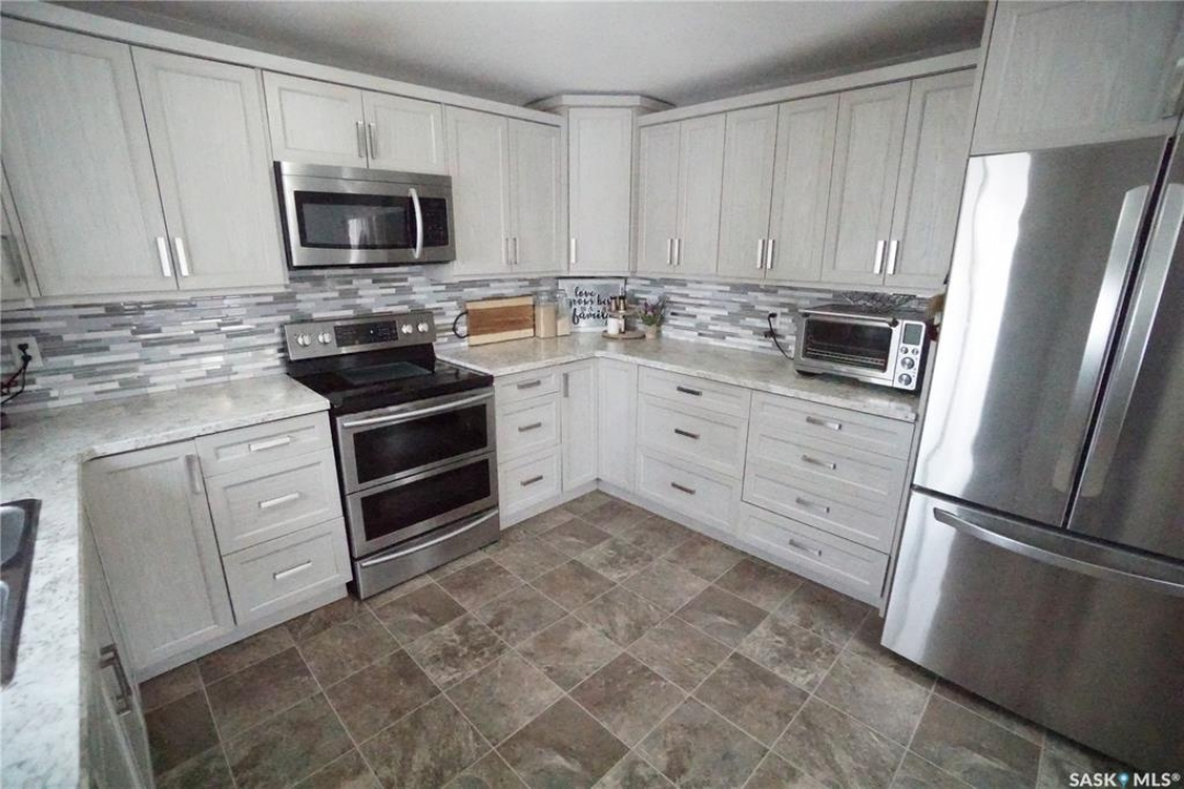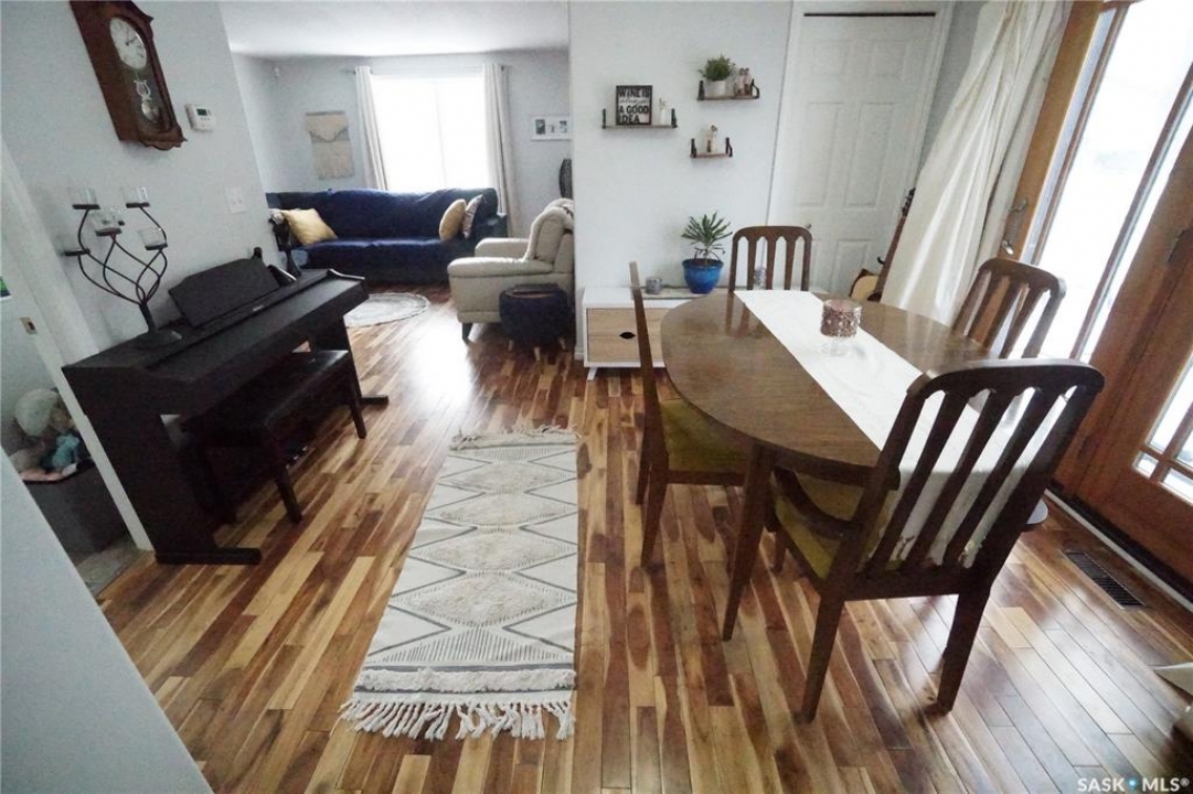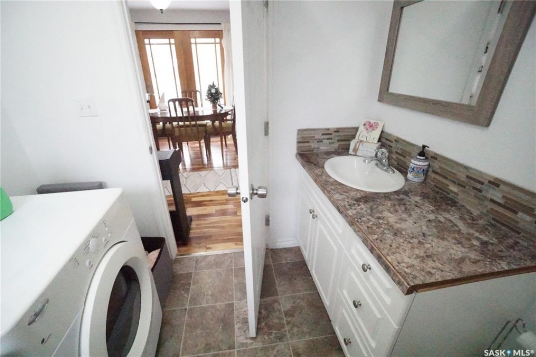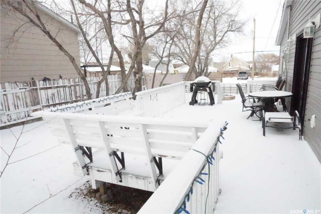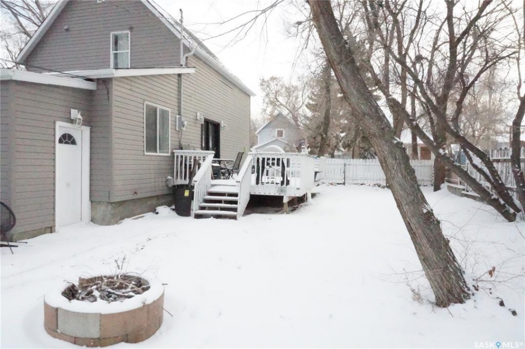 Welcome to this nicely updated and inviting 2-bedroom, 2-bathroom home. Upon entering, you're greeted by warm hardwood floors and a cozy electric fireplace in the living room. The well-sized dining area features garden doors that lead to a large deck, perfect for indoor-outdoor living. Just off the dining space is a convenient two-piece washroom with main-floor laundry. The expansive kitchen offers stainless steel appliances, including a built-in dishwasher, along with space for an eating table or sitting area—ideal for guests to relax and visit with the cook while meals are prepared. A porch off the kitchen provides access to both the backyard and the unfinished basement. Downstairs, the basement includes a den area suitable for a gaming or hobby space, as well as a large utility room offering ample storage. Step outside through the garden doors to enjoy the spacious deck with built-in seating, a firepit area, and a fully fenced yard with mature trees. The property offers parking for at least four vehicles, with space long enough for RV parking, and provides the opportunity to build your dream garage off the back lane. According to the previous listing, the furnace was replaced in 2013, along with numerous updates including drywall, flooring (hardwood, carpet, and lino), windows, doors, electrical, plumbing, kitchen cabinetry and countertops, as well as the tub, toilet, and vanity.