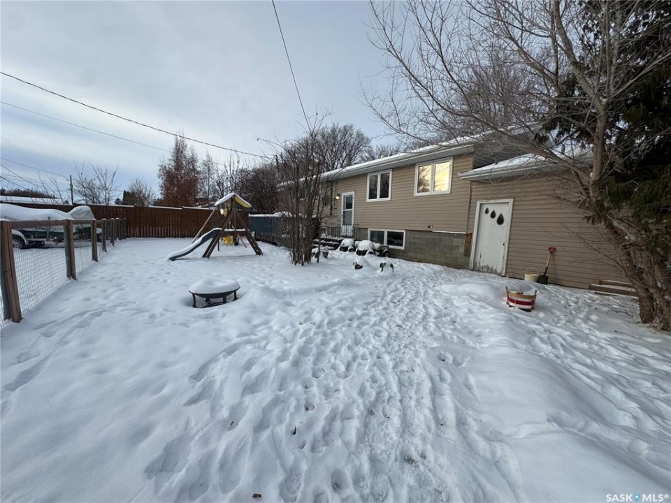Welcome to this solid 1,004 sq.ft. bungalow offering space, flexibility, and a convenient location. The main floor features two bedrooms plus an additional office space currently used as a nursery, along with a 4-piece bathroom. Enjoy a spacious living room filled with natural light from a large front window, seamlessly open to the kitchen and dining area. The kitchen offers ample cupboard and counter space, perfect for everyday living and entertaining. The main floor bathroom has been recently renovated within the last two years and is generously sized, featuring a relaxing deep corner tub and a separate standing shower. The basement is partially finished and adds excellent value with a bedroom, 3-piece bathroom, and a recreational room. With its layout, the basement has the potential to be converted into a rental suite for additional income. Outside, you'll appreciate the oversized single attached garage that may appear to be a double, but it is a single with a convenient breezeway providing direct access to the backyard. Part of the yard is fenced, with more yard that extends beyond the fence line, providing extra outdoor space and room to park recreational vehicles or toys. Ideally located close to downtown, the hospital, and the high school, this home offers both comfort and convenience. A fantastic opportunity for families, investors, or anyone seeking flexible living space in a central location. Taxes for 2025 are $2,121.