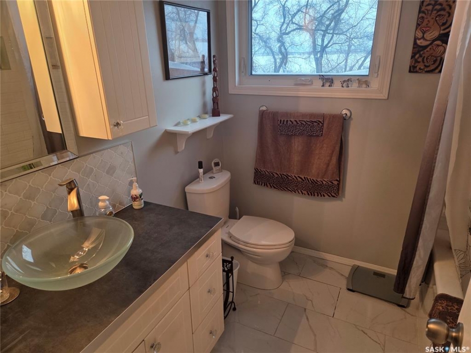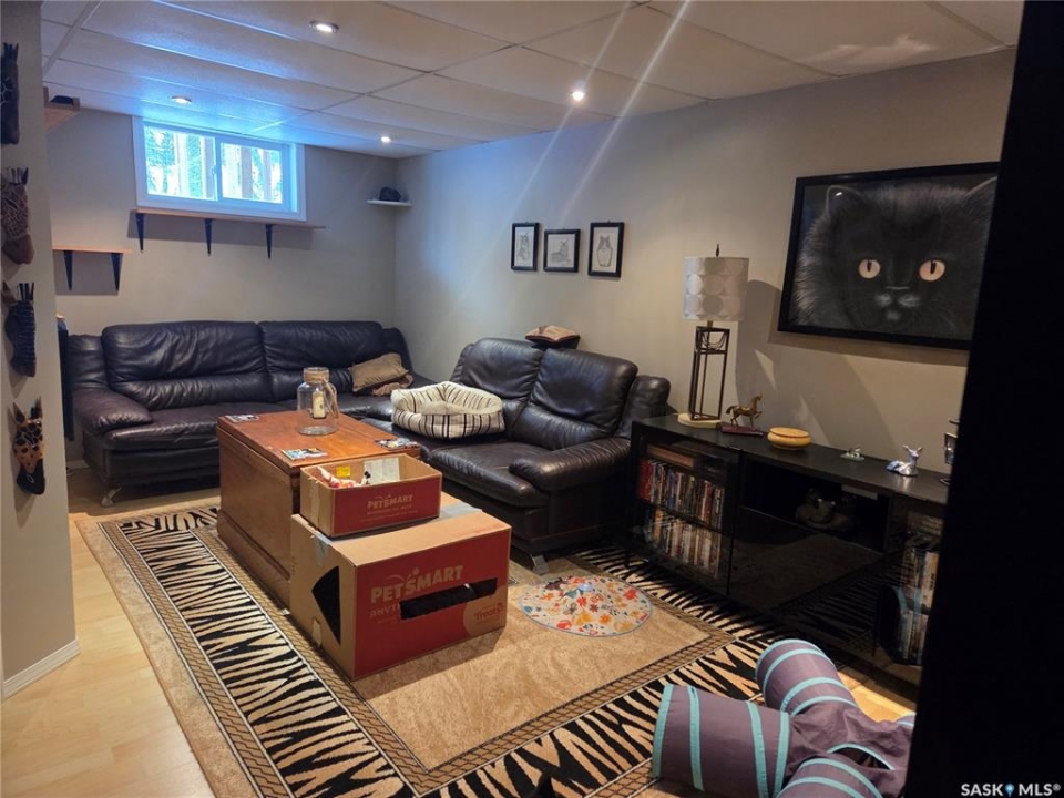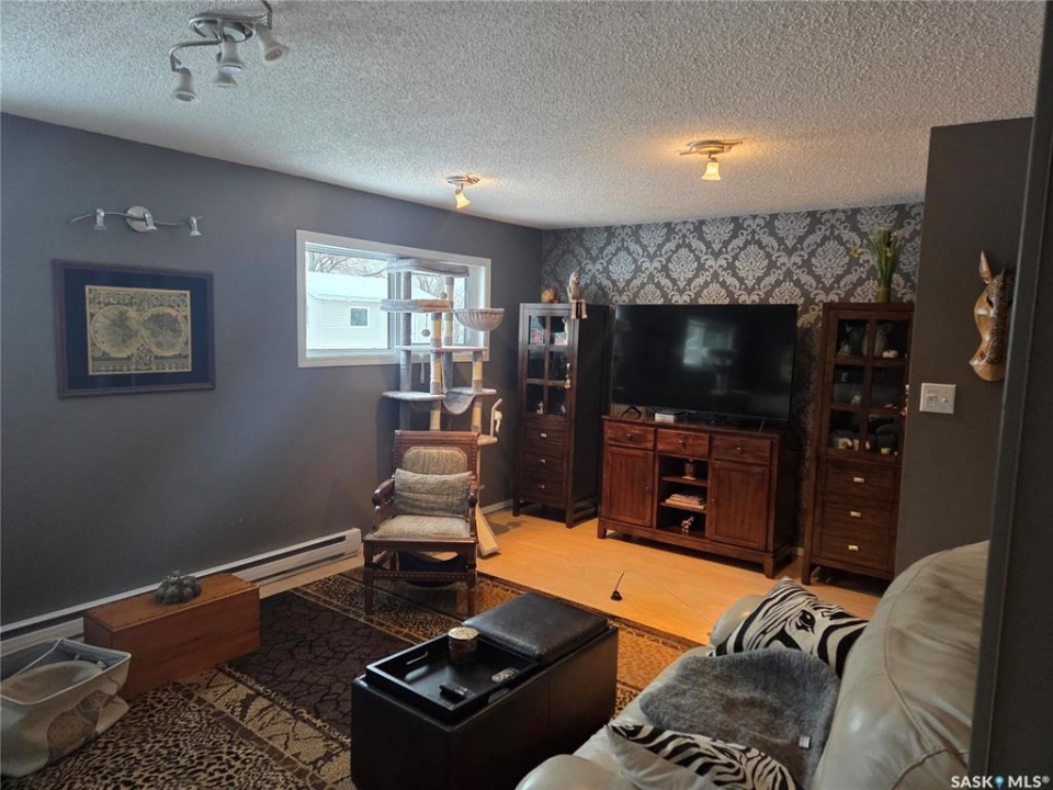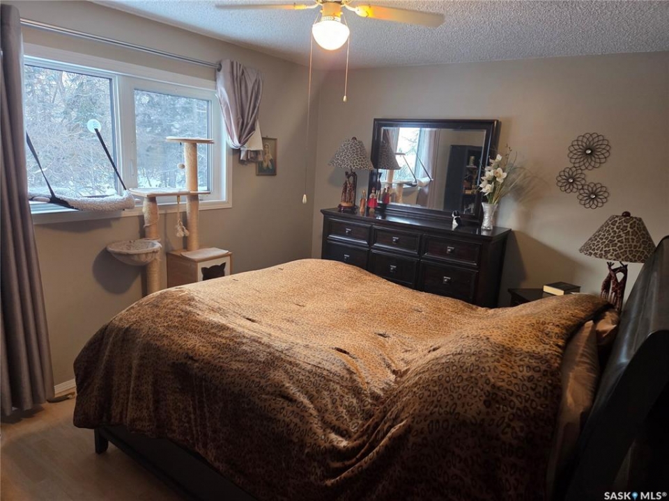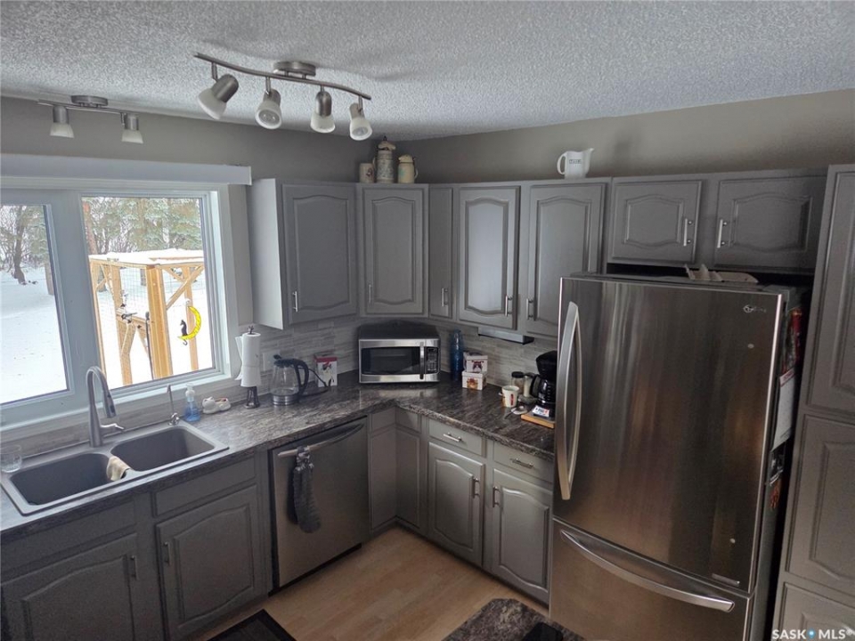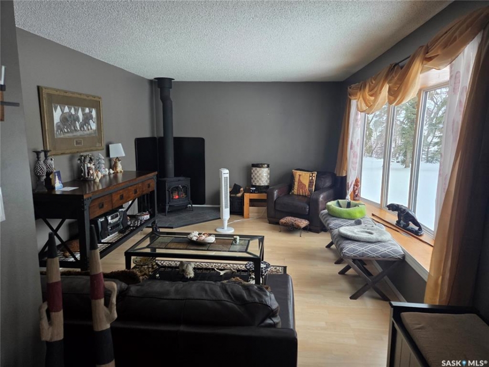 Welcome to the perfect acreage to fit anyone's needs. 5 bedrooms, 2 bathrooms, 3 living areas and plenty of storage on this 4 level split just a short 8kms from the heart of Tisdale. 3.72 acres enclosed with in a complete shelterbelt with a large storage shed, 20x30x12 tarp shed, garden area and tree house for the little ones. Large deck with covered gazebo off the back entrance, year round fish pond with fish along the patio entrance to garage, enclosed CATIO for the cats with separate house entrance and a 2 car 30x24 attached garage with built in cabinets and electric plug in heater. All appliance except bar fridge and basement freezer included (stove and hood fan new) as will the couches and electric fireplace in the basement, bed in first upper bedroom, lawn sweep and garden tiller. Sewer is by septic tank with pump out to south east, water is rural pipeline, 200 amp panel box. Sump pump pumps out far behind garage. Many many upgrades in the past years make this home ready to move in and live the life.