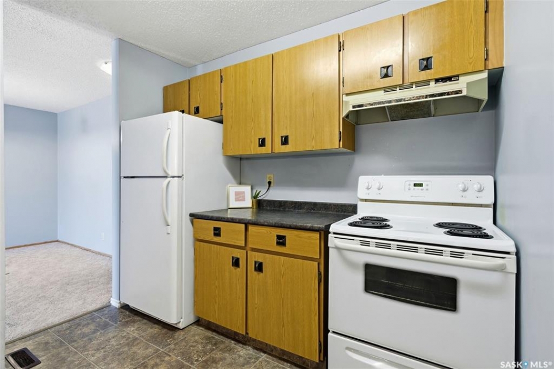 This top-floor condo, located in McCarthy Park, offers 843 sq ft of living space, featuring 2 bedrooms and 1 bathroom. The unit provides an enhanced view and a quieter living experience. It is move-in ready with upgrades that include newer countertops, windows, and patio doors. Inside, you'll find an open concept living room and dining area that leads to a refurbished balcony through patio doors. The kitchen offers ample space, and there is a convenient in-suite laundry/storage room. The full 4-piece bathroom and two spacious bedrooms complete this cozy home. This smoke-free apartment is situated in a secure, quiet building that is conveniently near parks, schools, and Rochdale amenities. The exterior of the building has been refinished with hardie board siding and features new aluminum railings on the balcony. This affordably priced property could be the perfect fit for you. Call your agent today to schedule your private viewing!