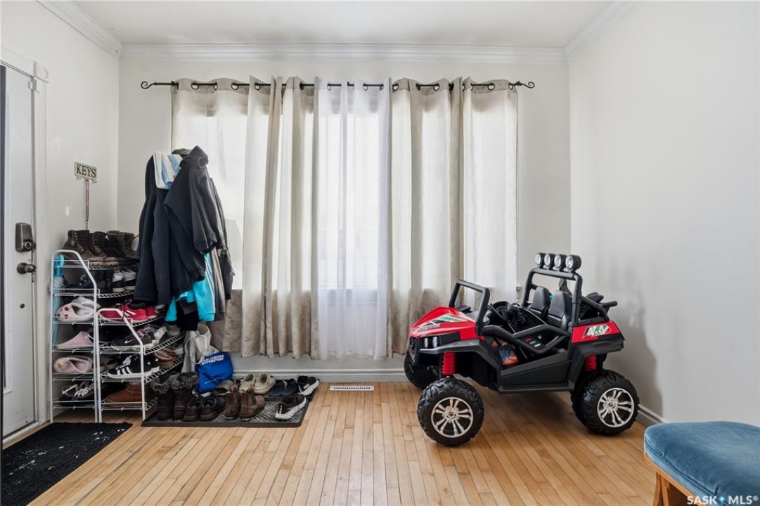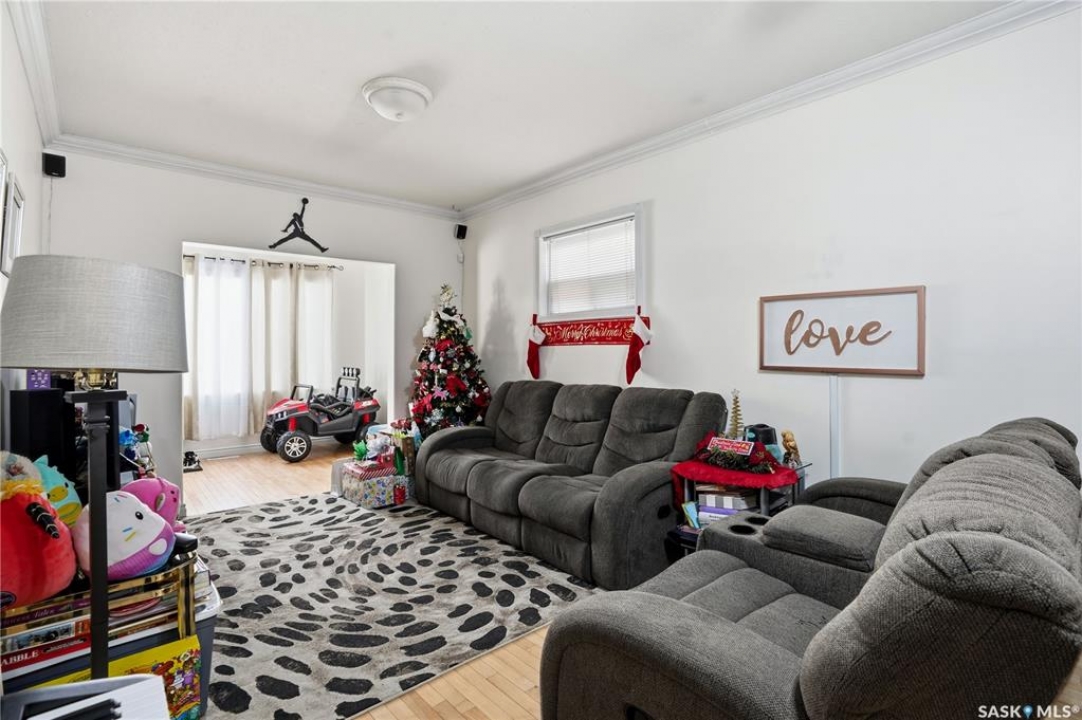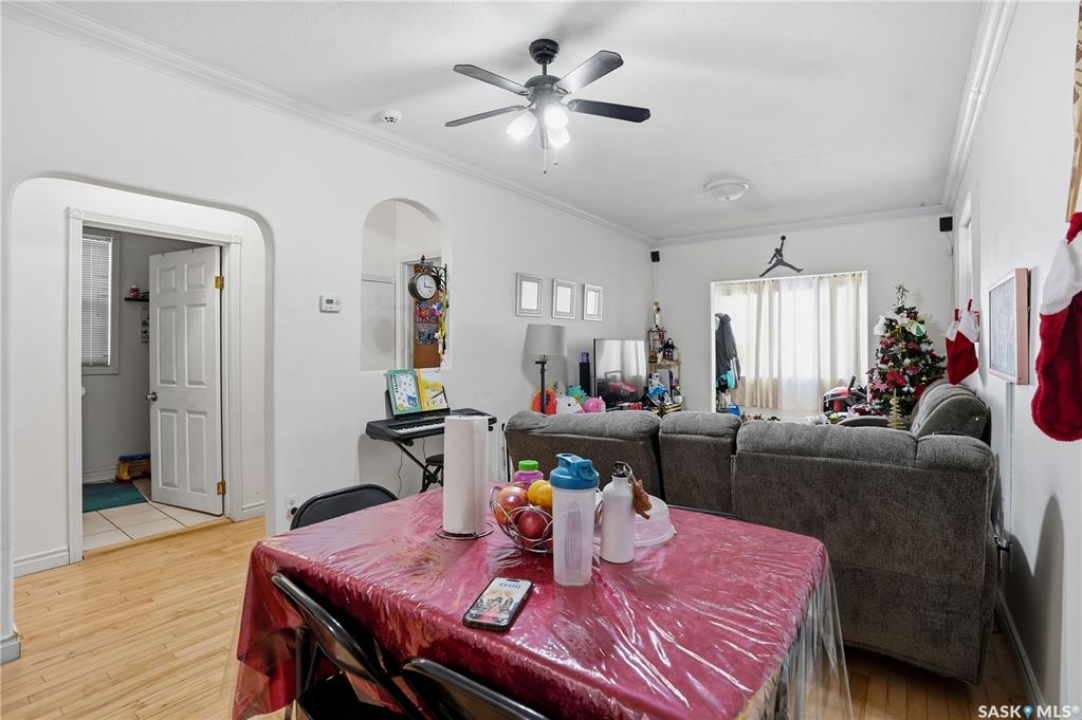 Own for Less Than Rent – Affordable, Move-In-Ready Bungalow! Why rent when you could own your own home for approximately $763/month, including mortgage and property taxes? (Estimated based on a 5-year fixed rate of 4.19% at time of listing.) A great opportunity for first-time buyers looking for affordability and long-term value. Over 800 sq. ft. bungalow features a bright main level with maple hardwood floors, 9' ceilings, crown mouldings, and rounded corners. The layout includes two spacious bedrooms, an updated 4-piece bathroom with a relaxing soaker tub and espresso vanity, a dining area, comfortable living room, and an inviting galley kitchen. The open basement is ready for future development, and the seller is including gyproc to help you get started. Outside, you'll find a fully fenced yard, a 12' x 12' deck, and convenient lane access with room to build a garage. Key updates include: Eaves, plumbing, electrical, sewer line, PVC triple-pane low-E argon windows (except front foyer) noted from a previous listing 2004. Shingles and insulated vinyl siding (2019) Located on a quiet, nice block, close to the Armories and just a few blocks from Pasqua Hospital. With low property taxes and a price that makes homeownership truly attainable, this home offers incredible value. Priced to sell—book your viewing today!