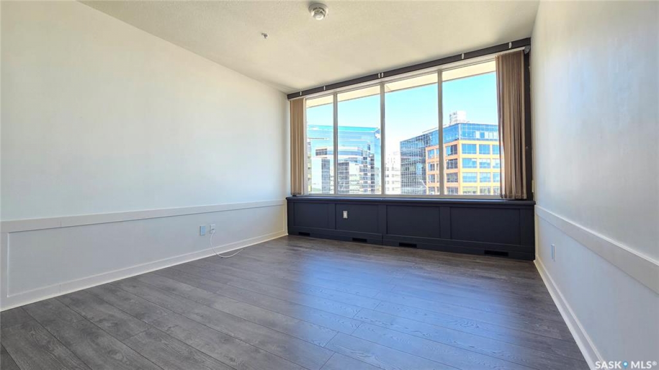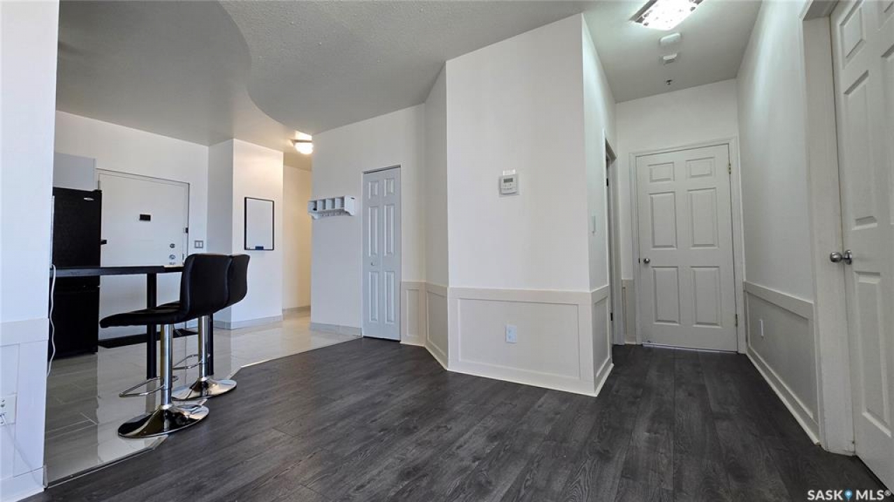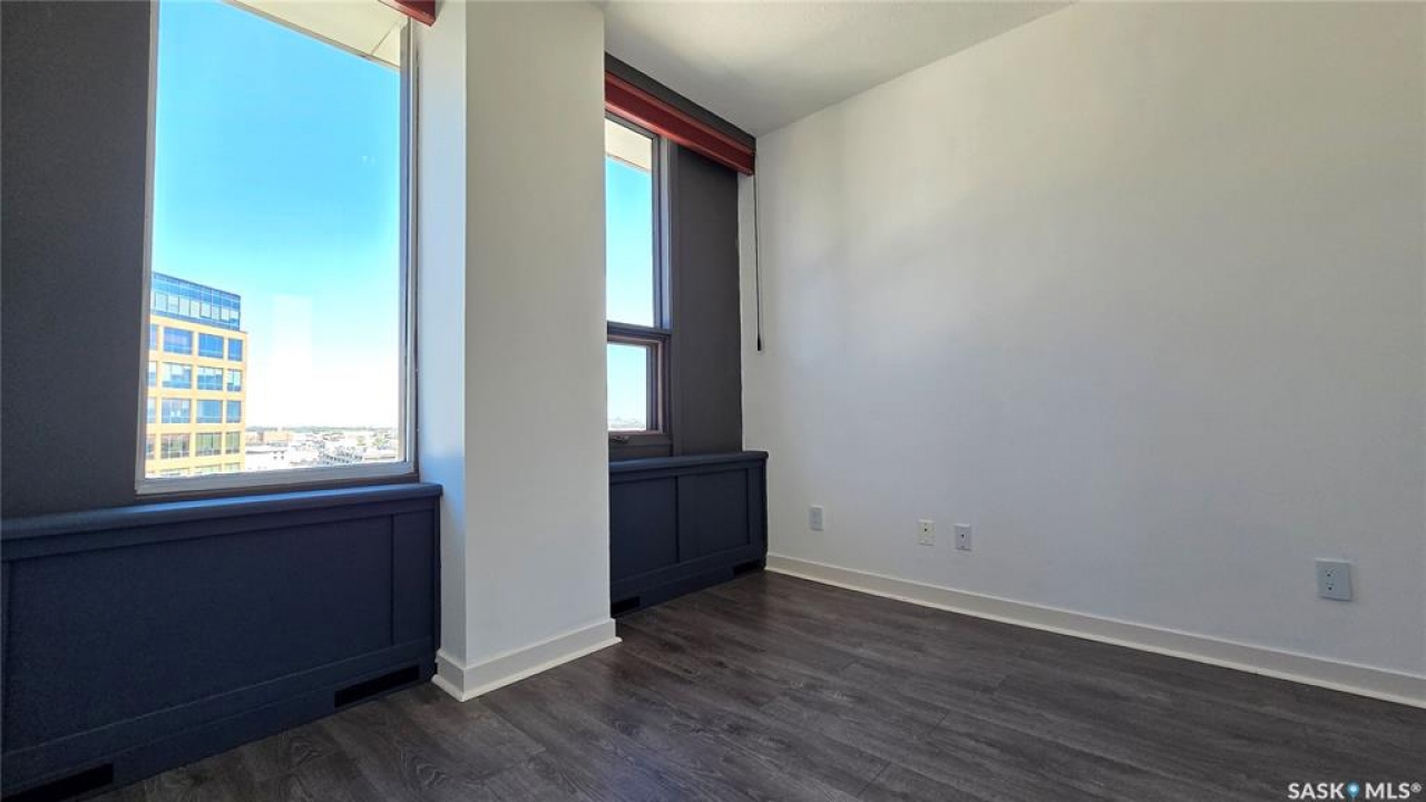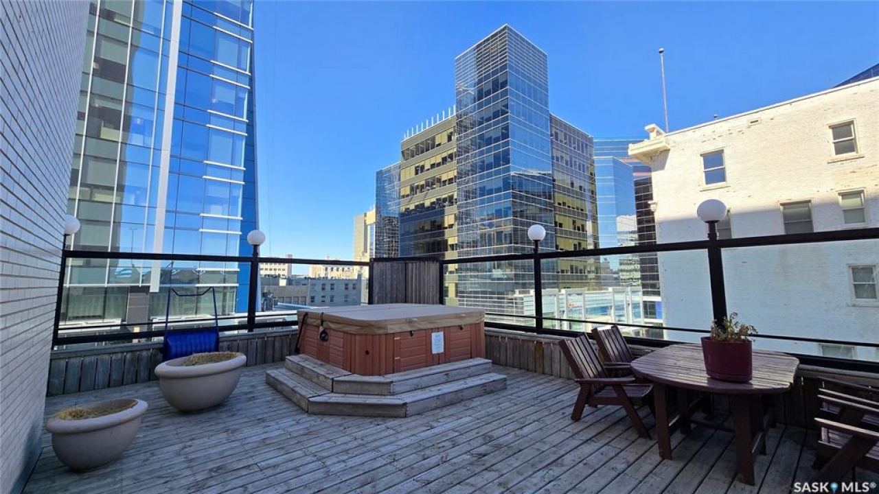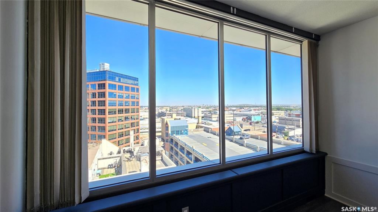 This high rise condo is securely nestled in downtown Regina, and offers an urban and convenient lifestyle. The Hamilton building is a well-known Regina staple, and by purchasing this bright and well updated 2 bedroom condo, you'll gain access to a plethora of amenities, not limited to; Gated and secure parking, fully outfitted gym, large amenities room for lounging and hosting, designated storage area, and of course the outdoor patio and garden area, complete with BBQ and hot tub. This unit is freshly painted with new laminate flooring throughout. The kitchen offers ample cupboard and counter space, stainless steel appliances, and a built in dishwasher. The main bath has been updated with new vanity, sink, fixtures, and backsplash. Both bedrooms face North and offer wonderful views of the city. The primary bedroom is tastefully wallpapered and boasts its own 4 piece ensuite, with updated vanity, sink, and fixtures. Other features of this condo include smart plugs and light switches, tasteful custom built coverings for the radiators, modern light fixtures, and custom blinds. Be right in the action of downtown, and enjoy the safety of being 8 floors up, with your vehicle in a completely gated lot, and even a concierge in the lobby to handle your deliveries.