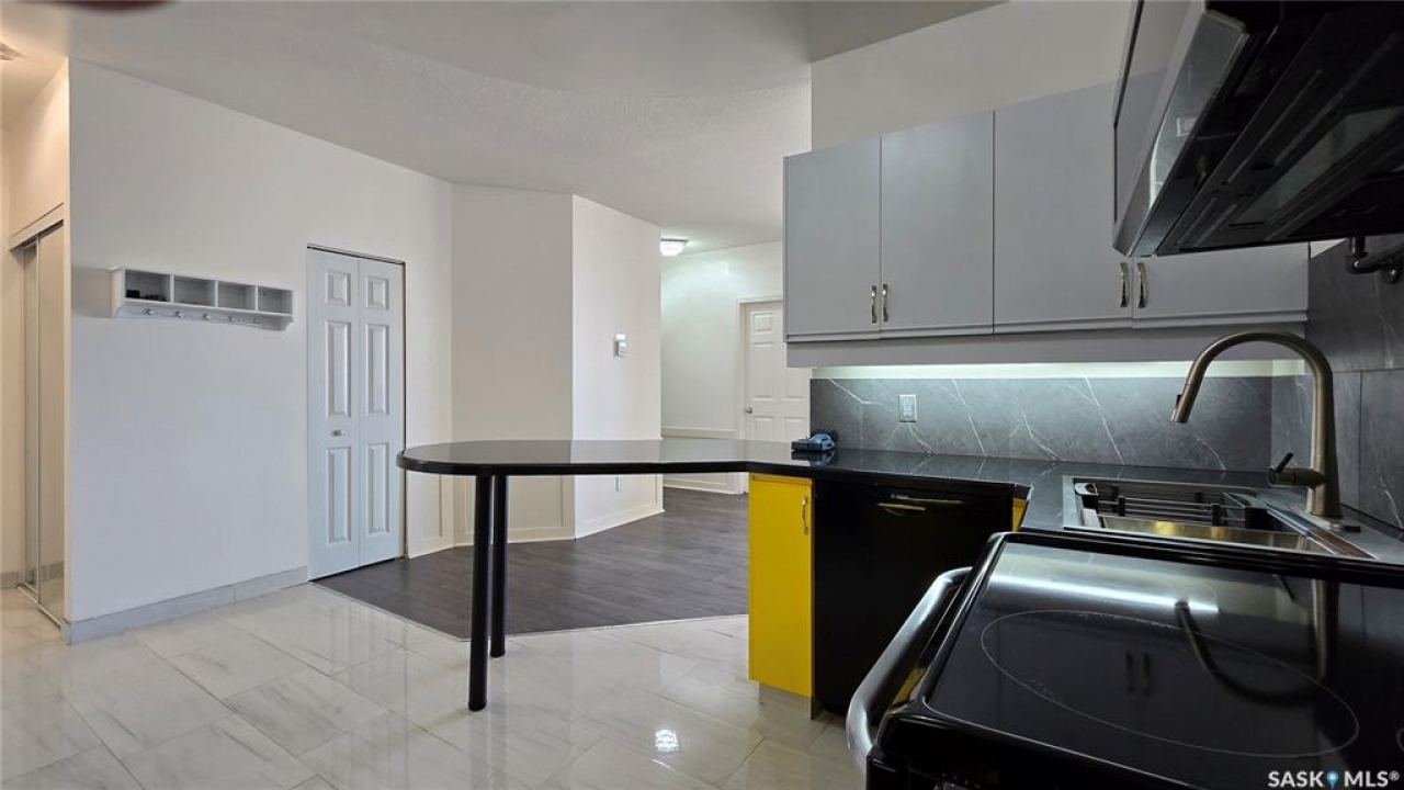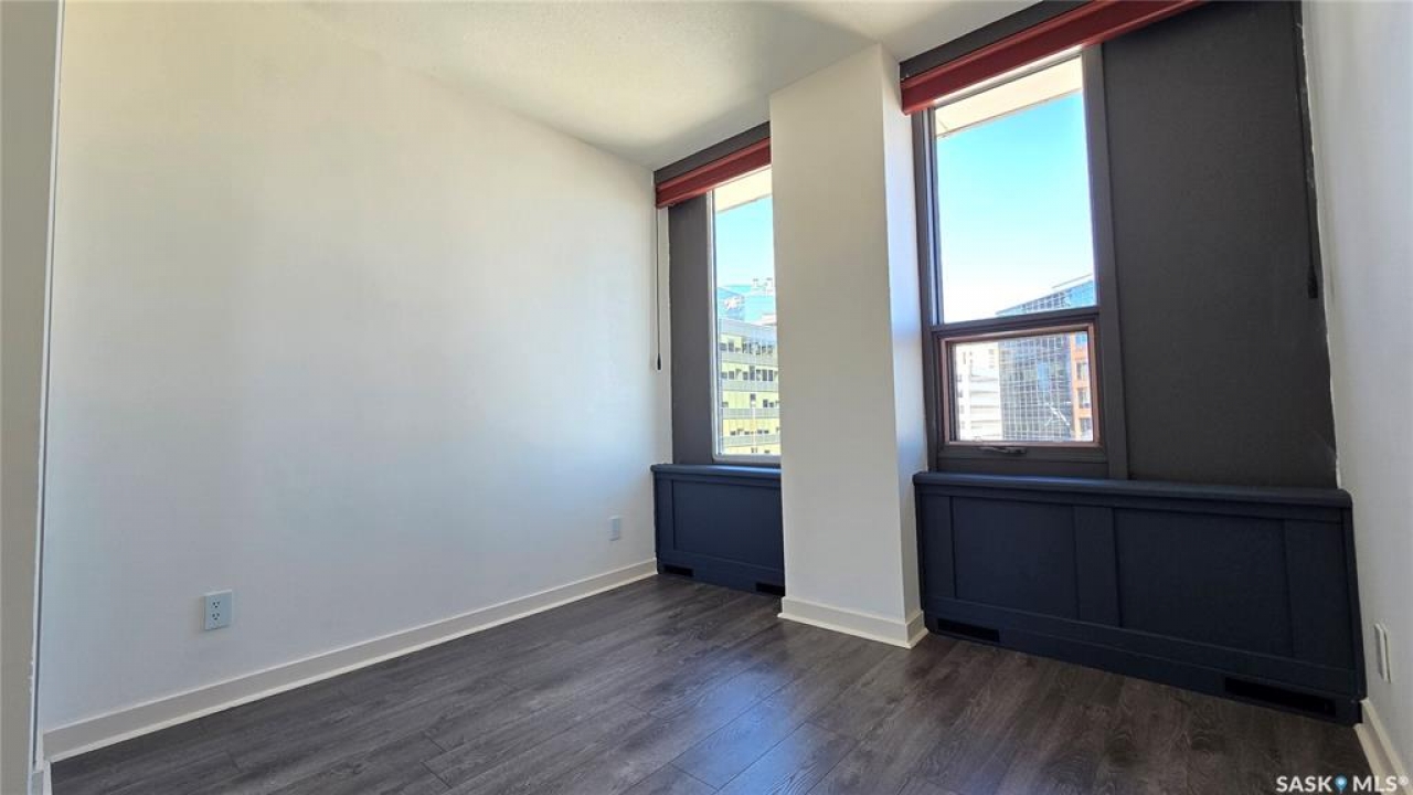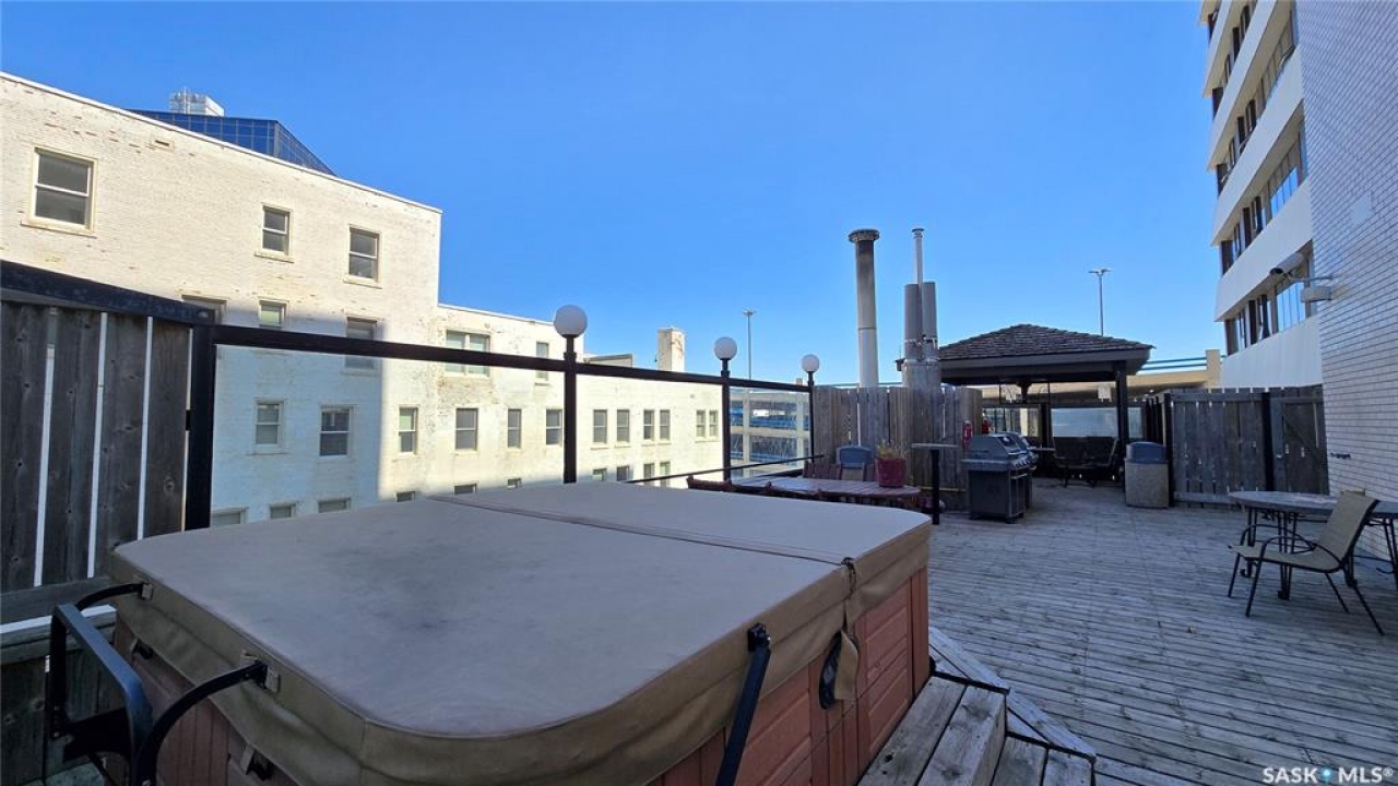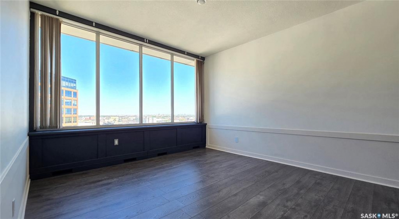 This high rise condo is securely nestled in downtown Regina, and offers an urban and convenient lifestyle. The Hamilton building is a well-known Regina staple, and by purchasing this bright and well updated 2 bedroom condo, you'll gain access to a plethora of amenities, not limited to; Gated and secure parking, fully outfitted gym, large amenities room for lounging and hosting, designated storage area, and of course the outdoor patio and garden area, complete with BBQ and hot tub. This unit is freshly painted with new laminate flooring throughout. The kitchen offers ample cupboard and counter space, stainless steel appliances, and a built in dishwasher. The main bath has been updated with new vanity, sink, fixtures, and backsplash. Both bedrooms face North and offer wonderful views of the city. The primary bedroom is tastefully wallpapered and boasts its own 4 piece ensuite, with updated vanity, sink, and fixtures. Other features of this condo include smart plugs and light switches, tasteful custom built coverings for the radiators, modern light fixtures, and custom blinds. Be right in the action of downtown, and enjoy the safety of being 8 floors up, with your vehicle in a completely gated lot, and even a concierge in the lobby to handle your deliveries.