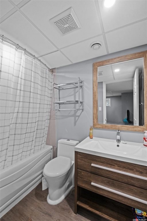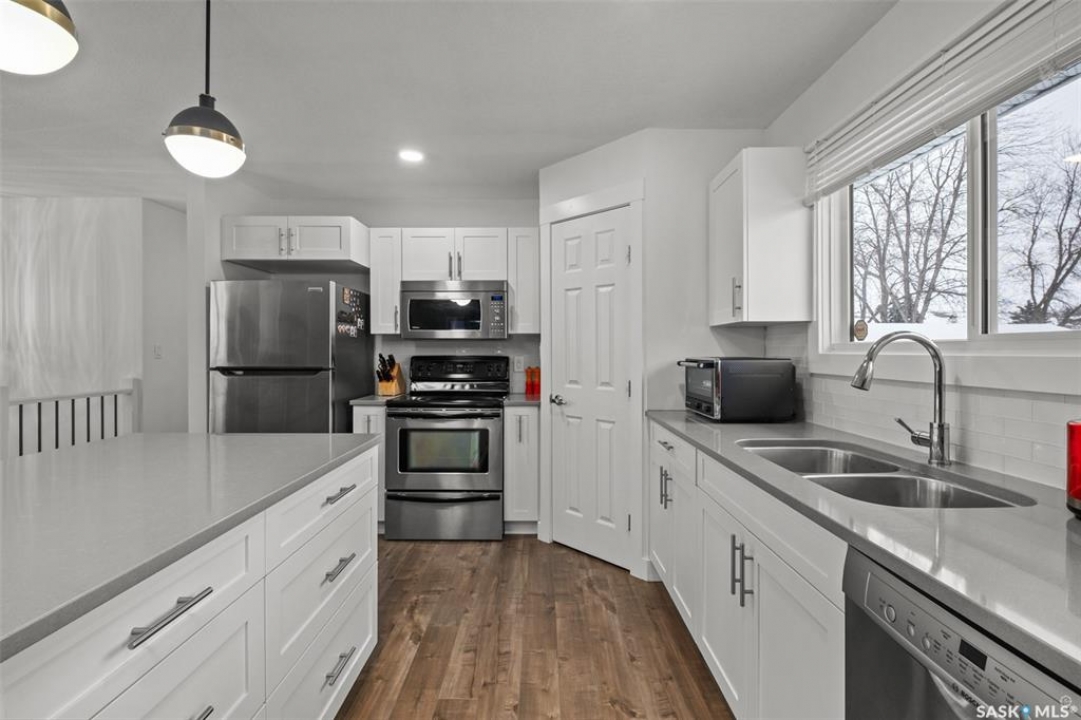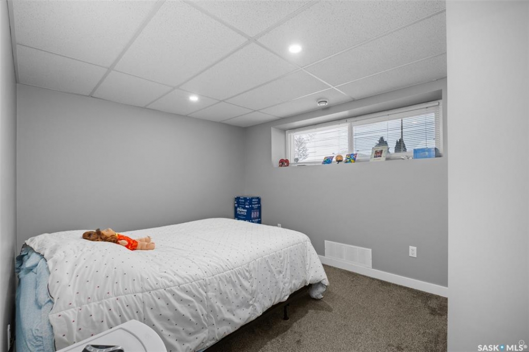 Stunning bi-level backing onto green space in the desirable Carlton Park neighborhood! The main floor welcomes you into a bright living room highlighted by a large picture window that fills the space with natural light. The kitchen is both stylish and functional, offering white soft close cabinetry, glass tile backsplash, quartz countertops, stainless steel appliances including a new fridge, a corner pantry and a large island that connects seamlessly to the dining area. There are patio doors that provide direct access to the South facing deck, recently refinished and complete with a natural gas bbq hookup, making it ideal for indoor and outdoor dining. The main level also includes 3 spacious bedrooms, including the primary bedroom with a 3 piece ensuite featuring a stand up shower. A modern 4 piece bathroom with a white vanity and tiled tub surround completes this floor. The fully developed basement features an expansive family room, perfect for movie nights or game nights, along with 2 additional bedrooms, a beautiful 4 piece bathroom and a laundry/utility room. Other notable features include new 25 year shingles, high efficiency furnace and hot water heater, central air conditioning, LED soffit lighting and a freshly stained shed. The partially fenced and thoughtfully landscaped yard includes a garden area for outdoor enjoyment and a convenient 24 ft x 28 ft double detached insulated garage that is equipped with 200 amp service, new shelving and a workbench. Don't miss out on this exceptional property. Schedule a viewing today!
