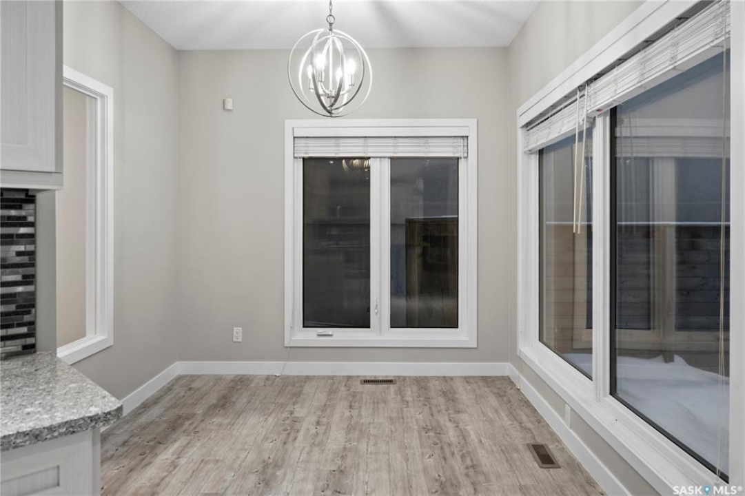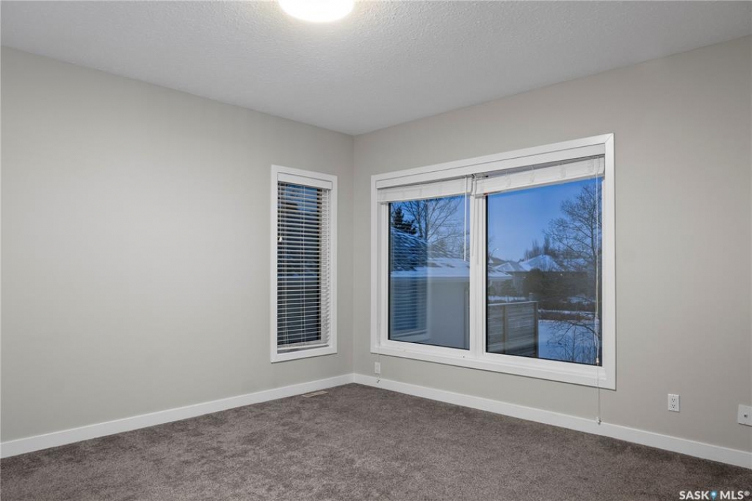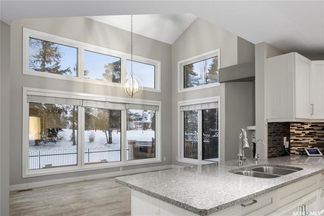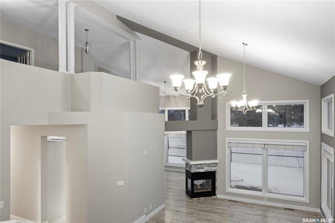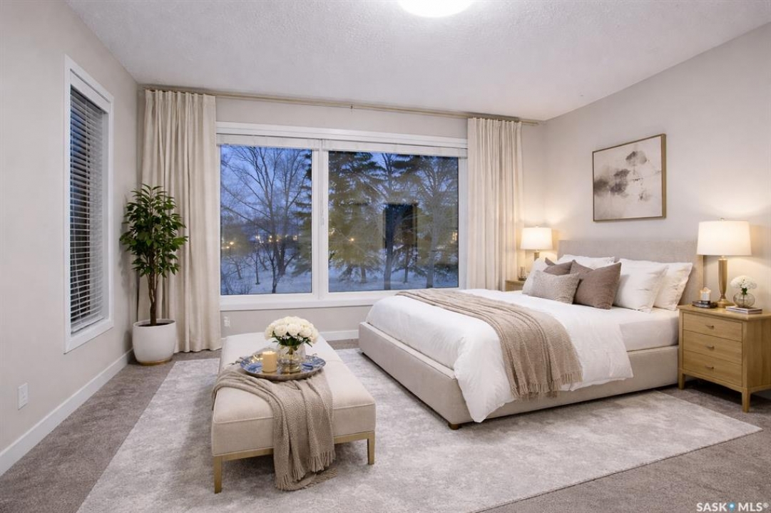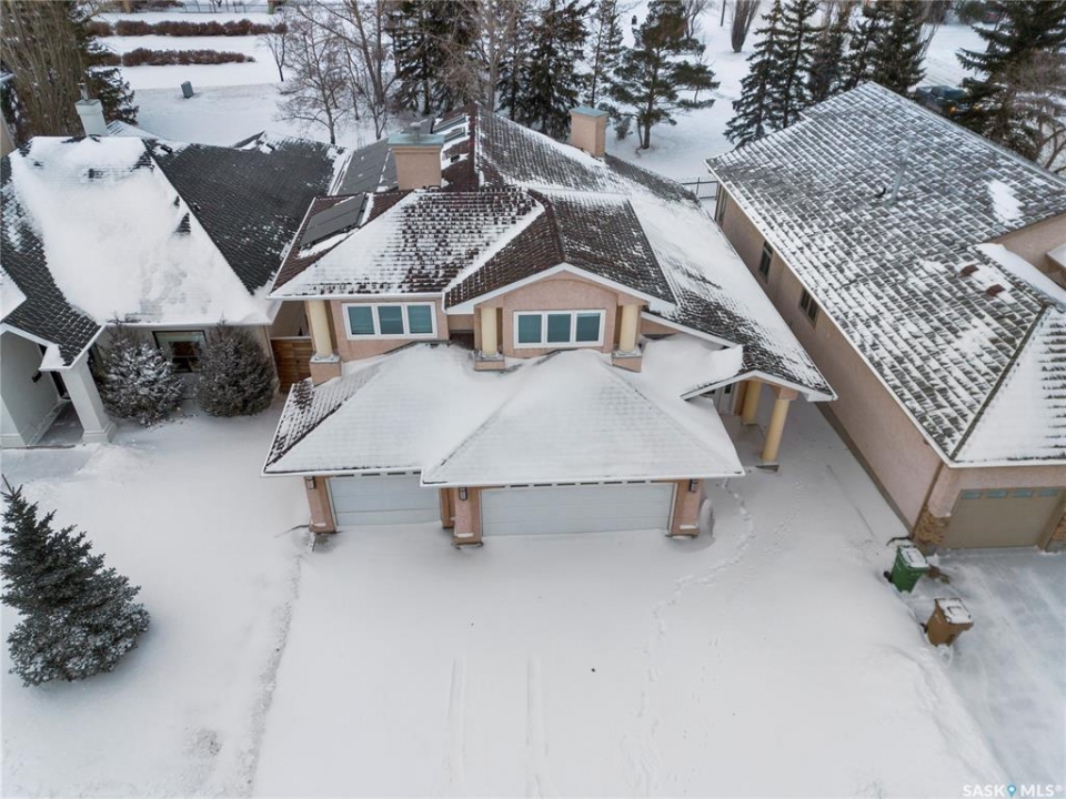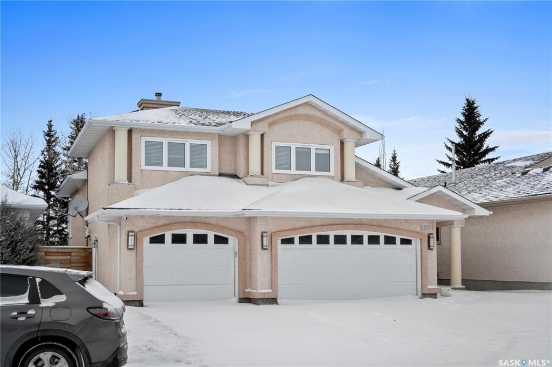 Welcome to 5006 Wascana Vista Court. This former show home is nestled in the sought-after Wascana View neighborhood. This quiet cul-de-sac location backs onto a walking path, offering convenient access to east-end amenities and schools. This two-story split home features 4bd, 3ba, and a spacious 32x24 triple attached insulated garage. The exterior and landscaping are very low maintenance, with a xeriscaped front yard, stucco siding, and a backyard with multiple patio areas and artificial turf. Upon entering, you are greeted by a foyer with 2 closets and tile flooring. A curved staircase descends into the expansive great room, featuring massive windows that provide views of the greenspace. The formal dining room is separated from the great room by a 3 sided gas fireplace. Overlooking the dining room is the updated kitchen, complete with ample cabinet space, quartz countertops, a tile backsplash, and included stainless steel appliances. Next, an additional versatile room can serve as a family room, or reading nook. Adjacent is a main floor bedroom, with natural light from a rear window. The main floor also includes a 2pc bathroom, a large laundry room, and a utility room housing 2 new furnaces and a air conditioner (installed June 2025), a rented water heater, and an r/o system. A storage area completes this level. Ascending a curved staircase, you arrive at a bonus room, located next to the master. The master suite has French doors, expansive windows, a custom-built walk-in closet, and a luxurious 5pc ensuite bathroom with 2 sinks, a jet tub, a custom tile shower, and heated floors. A few more stairs lead to the top floor that has an additional nook, 2 generous bedrooms, and a 5pc bathroom equipped with double sinks and a deep soaker bathtub. The entire home has been recently painted, and significant energy efficiency upgrades were made in 2023, including new shingles and solar panels. Certain photos have been digitally staged and are clearly marked.