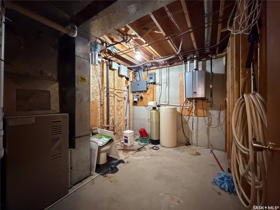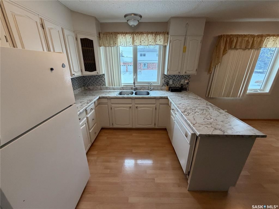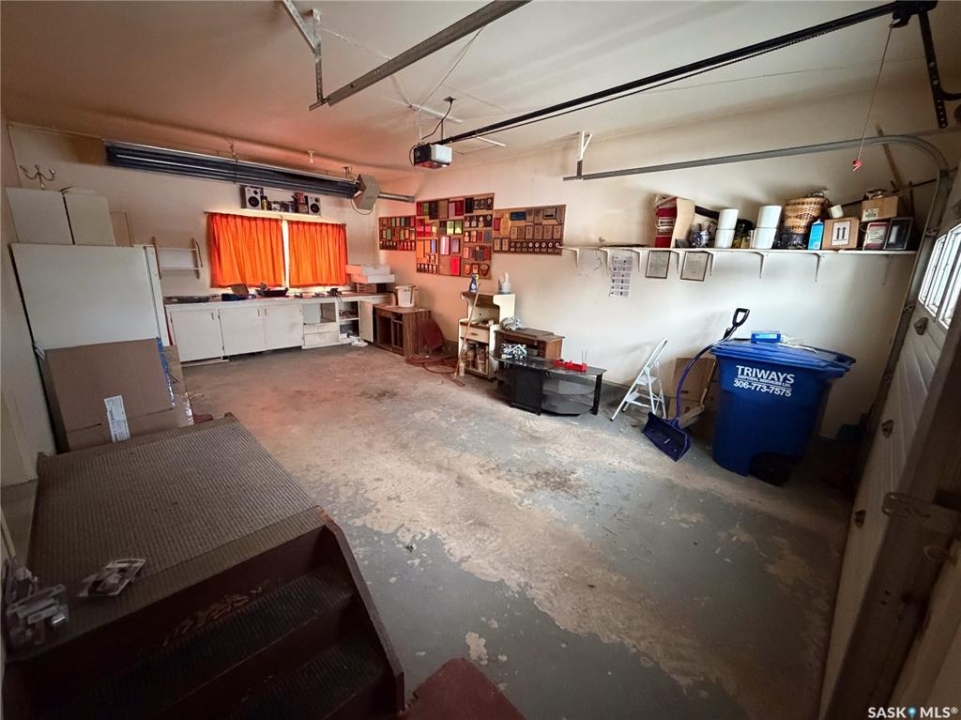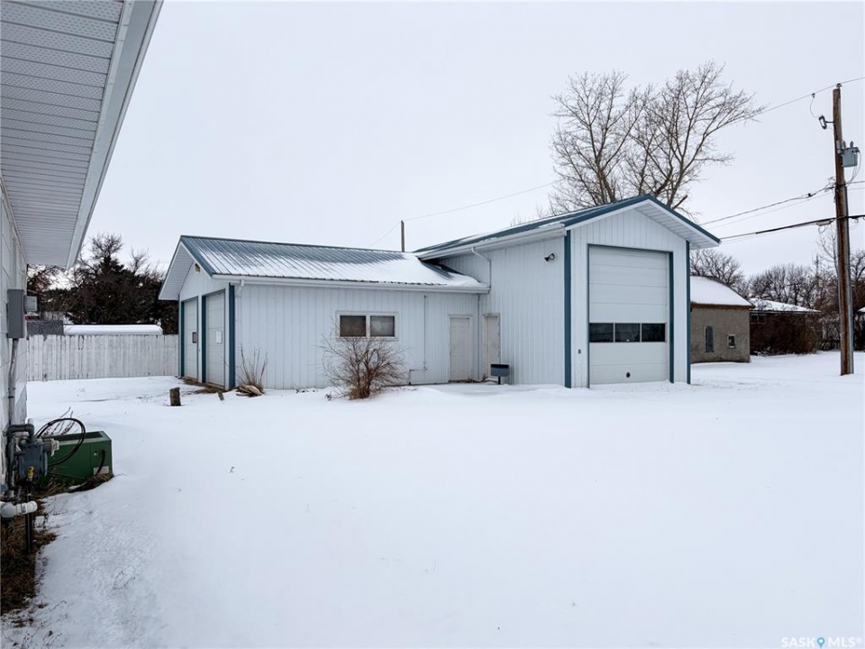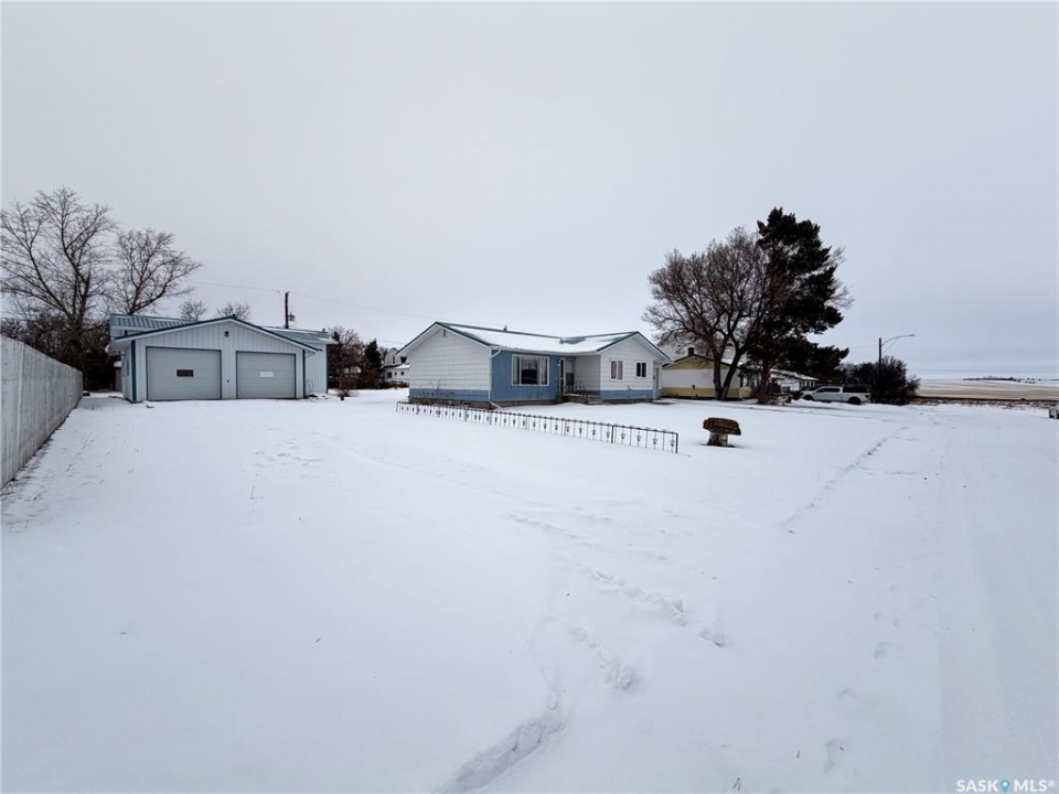 Welcome to 120 6th Street E in the welcoming community of Ponteix — a well-cared-for 1,628sqft bungalow with loads of practical features and room to grow. Sitting on a 9,600sqft lot with lane access, this home offers incredible garage and workshop space, plus multiple entries for added convenience. Step inside the front door and you're welcomed into a bright living room with triple-pane windows that flood the space with natural light. Just ahead is access to the two main floor bedrooms, each with comfortable layouts, 4-piece bathroom and a well-appointed main floor laundry room with a handy utility sink. To the right of the entry, the dining area features a built-in for display or storage, while the adjoining kitchen offers warm oak cabinetry and flows seamlessly to the back entry, which connects to the heated and insulated single attached garage(16x26). The basement is fully developed and ideal for extended family living, guests, or hobbyists. There's a family room with a cozy gas fireplace, a 4-piece bathroom, a dedicated cold storage room, and two additional rooms that can serve as a den, office, or extra bedrooms (buyer to confirm egress). There's also a utility room and loads of storage space. What truly sets this property apart is the garage setup: in addition to the attached garage, there's a heated and insulated double detached garage(26x26) with a long gravel drive from the street, and a massive unheated/uninsulated RV garage(16x40). The RV garage offers significant overhead storage, a manual door, 100 amp panel, and space for your largest toys or workshop plans. This home has been lovingly maintained and updated with key features such as a metal roof (approx. 2015), on-demand water heater (approx. 2020), HE furnace and water softener. A solid property with generous space inside and out — don't miss your chance to own a great home in the heart of Ponteix! Home sold is AS-IS condition, what you see is what you get.