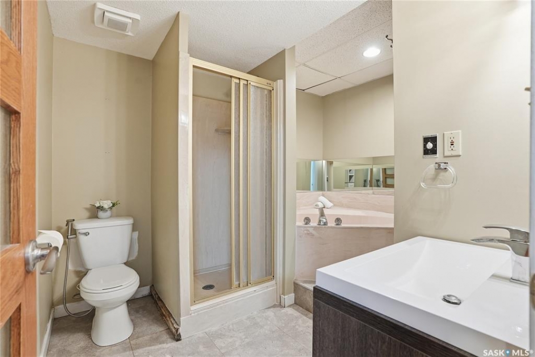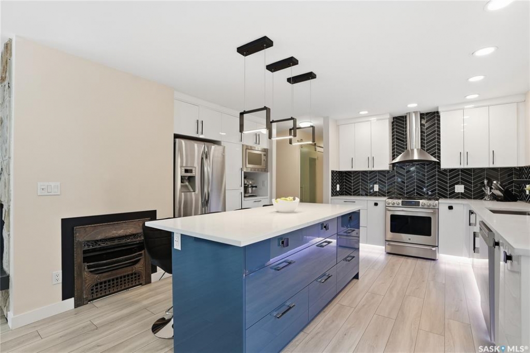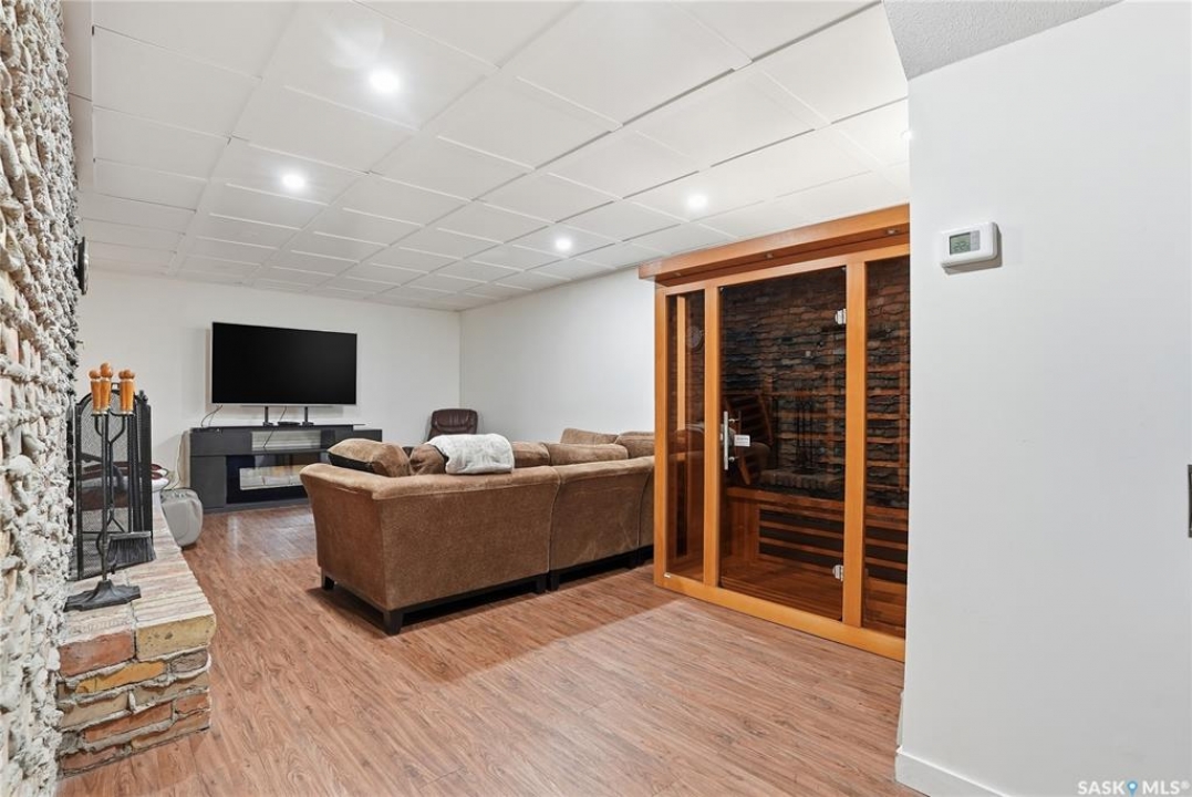 Welcome to this beautifully renovated 1,388 sq. ft. bungalow that perfectly blends modern comfort with timeless warmth. Featuring 2 bedrooms plus a den on the main floor and 2 full bathrooms, this home offers outstanding functionality for families and professionals alike. Step inside to discover a bright, open-concept design showcasing an updated kitchen with gleaming quartz countertops, a large island with extra storage, stainless steel appliances, and laminate flooring throughout. Cozy up by one of the two wood-burning fireplaces — one upstairs and one in the spacious basement family room. The lower level offers exceptional extra living space, including 2 additional bedrooms, a 5-piece bathroom with a jet tub, and abundant storage areas, including a large utility room and cold storage. Enjoy year-round comfort with boiler heat, central vac, and even an infrared sauna. The attached 4-car heated garage (in-floor and natural gas heat) provides ample space for vehicles and hobbies alike. Outdoor living is effortless — relax on the covered patio with a wood-burning fireplace, or unwind in your year-round hot tub accessible from the laundry/den area. With RV parking and a massive 12,000 sq. ft. lot, space is never an issue. Adding exceptional value, the property features a newly completed (2024) 664 sq. ft. legal suite bungalow with 1 bedroom plus a den, 1 bathroom, full kitchen, and comfortable living area. The suite boasts 10 ft ceilings, in-floor and exterior concrete heat, and on-demand hot water, providing a perfect option for extended family or rental income. Located close to schools, parks, and all major amenities, this is the complete package — luxury, space, and versatility all in one! ?