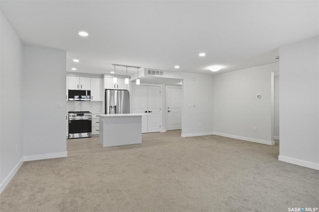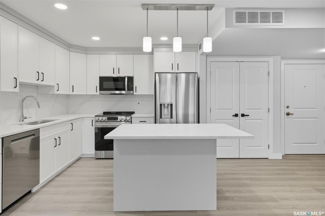 Welcome to #208 – 318 108th St W in Saskatoon — a brand-new, 2 bed + 2 bath condo rebuilt from the ground up and loaded with thoughtful upgrades. Located on the quiet side of the building, this 1,030 sq ft unit is a peaceful retreat just minutes from the University of Saskatchewan. Enjoy quartz countertops in the kitchen and both bathrooms, a solid-slab backsplash, and a large island with extended overhang for casual dining. The stainless steel appliance package includes fridge (with ice and water), stove, dishwasher, washer and dryer — all upgraded and backed by warranty. A smart layout includes an oversized laundry room with the option to move appliances for added functionality. Premium finishes include thick, high-grade vinyl in wet areas for leak mitigation and plush, upgraded carpet for comfort and warmth — far superior to standard laminate or LVP found elsewhere. This turnkey unit also features underground heated parking, a covered balcony, and easy access to parks, schools, and local amenities. Whether you're an investor, university staff/student, or a farmer seeking a winter city condo, this modern unit offers unbeatable value and versatility in a prime Saskatoon location.