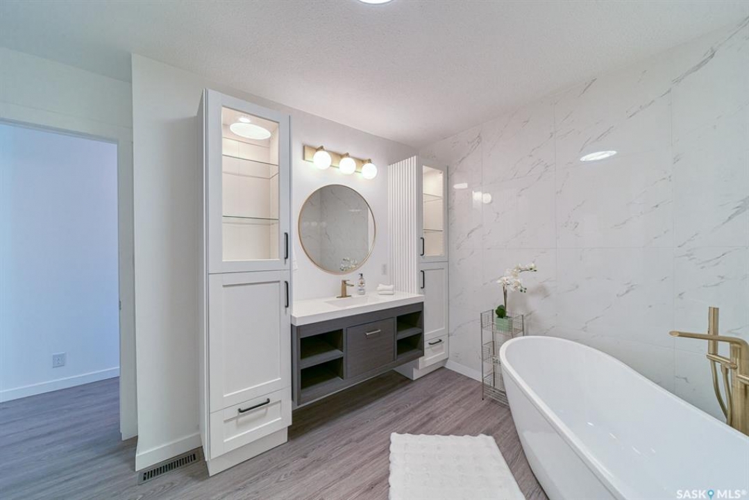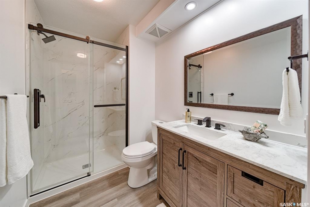 Your wait is over to own an amazing acreage property just 6 km east of Moose Jaw! River's Edge Acreage is a must-see opportunity you do not want to miss!! Combining an amazing location on the river's edge with just completed beautiful on-trend finishes to over 2400 sq/ft of this home, you will be amazed as you enter the great room with vaulted ceiling & gas fireplace! A games room or home office (330 sq/ft) has so much potential for families of any size & is adjacent to the great room! Stepping upstairs, you will absolutely love the fabulous open concept living area with a kitchen designed for all the chefs in the family! Quartz countertops, central island, lovely dining area, along with a spacious living room that steps onto the deck overlooking the beautiful river valley views with a staircase to take you out to the firepit area! Down the hall, a stunning bath with a gorgeous soaker tub walled in striking stone tiles is magazine-worthy! Three bedrooms, a laundry area, as well as another bath lead to the primary suite that has yet another beautiful bath plus a very special walk-in dressing room where you will love to spend time getting ready for your day! The walkout lower level has amazing potential to be another living space for family, income, or Airbnb, as 2 exits from the level go to lovely patio spaces (one is covered), or used for your personal needs! The 2.62-acre property has so much beauty that you will vacation at home! Just imagine taking out your kayak to the river's edge of your own private property! River's Edge Acreage must be seen to appreciate how amazing it is! Just a few features: 4 bedrooms, 3 baths, 2400 sq/ft newly finished interiors, 1600 sq/ft walkout lower level, new well, beautiful landscaping, minutes to Moose Jaw, no gravel roads to drive!, a virtual new home with gorgeous views,....I know!!! Be sure to view the 3D scan of the amazing floor plan & 360s & drone shots of the outdoors!! Directions: 50.3979722 -105.4138056
