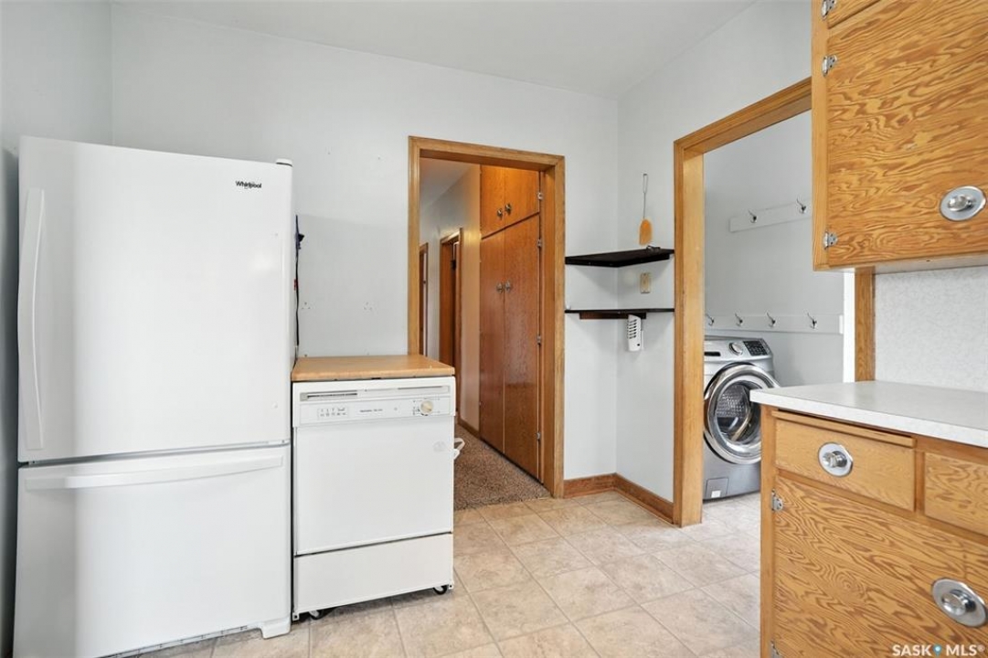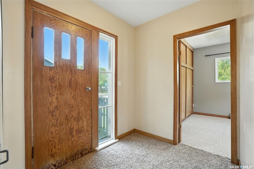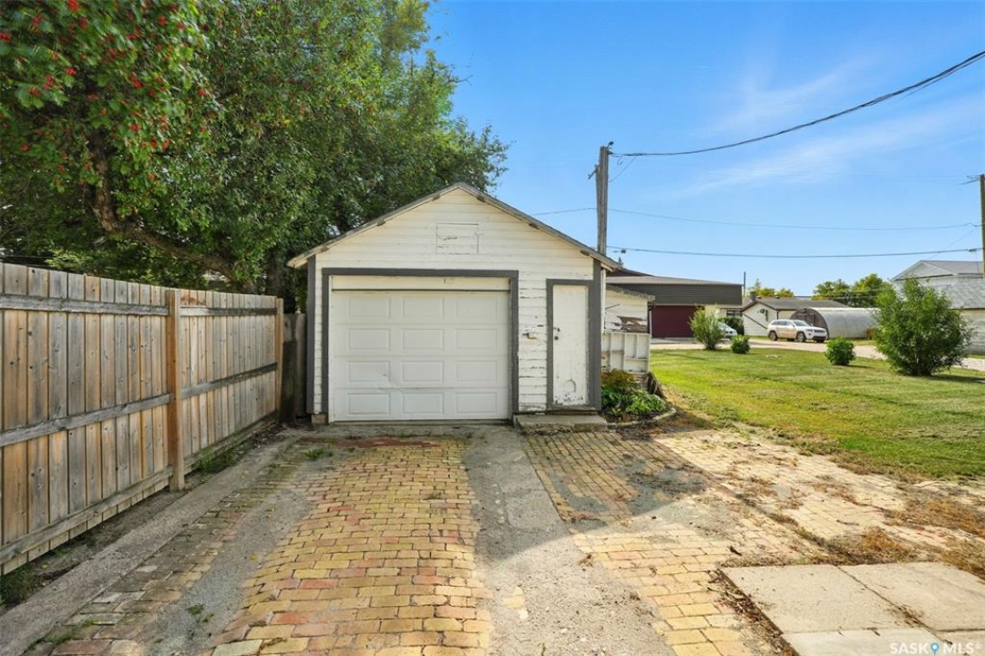 This well kept bungalow in the quiet town of Nokomis is move in ready and priced to sell! Step in the front door to a foyer accessing hall to kitchen, living room, bathroom and 2 bedrooms. A spacious living room is L shaped to include dining area with built in mid century storage. Kitchen is compact with plenty of cupboards plus fridge, stove and portable dishwasher. Laundry is in mudroom off back porch. There's a side entrance accessing the basement or mudroom. Updated back deck accesses unheated back porch to mudroom. Basement is partially finished with workout area, bedroom and cold storage room Furnace is HE with central air, and water heater is HE on demand. Mature yard has perennial beds, and detached garage has additional workspace/storage area. Nokomis has a medical clinic, bar, drugstore, grocery and hardware stores, Co-op Agro, restaurants, K-8 school, rec center and more!! Call today for your viewing appointment!