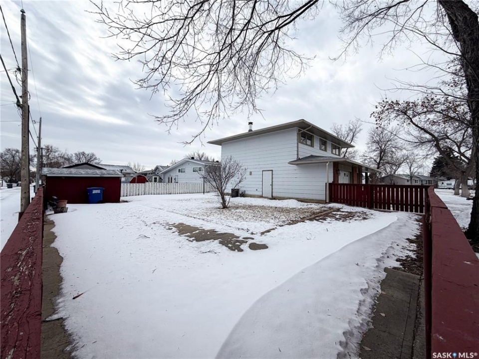 Welcome to 594 5th Street W, a spacious and well-maintained 2-storey split home nestled on a 7,200 sqft corner lot in the friendly community of Shaunavon. With 1,795 sqft of above-grade living space and a fully finished basement, this home offers functionality and comfort for a growing family or those who love to entertain. Step inside through the large, welcoming front foyer, where you'll find access straight ahead to the main floor family room—complete with a cozy wood-burning fireplace and direct entry to the mudroom, backyard, and a convenient 2-piece bathroom. Head up a couple steps from the foyer into the bright and expansive living room, where large windows flood the space with natural light. From here, you can access the formal dining area—featuring patio doors leading to the back deck and fully fenced yard—and the well-appointed kitchen with classic oak cabinetry. The upper level hosts four bedrooms, including a generous primary suite with a private 2-piece ensuite. The full 4-piece bathroom serves the remaining bedrooms, one of which has been converted into a convenient upper-level laundry room for added functionality. Downstairs, the fully developed basement offers a large family/rec room, two dens ideal for home offices or hobbies, and another 4-piece bathroom. This lower level also has a spacious utility/storage room which houses a brand-new high-efficiency furnace (2025) and a new water heater (2024), ensuring peace of mind and energy efficiency for years to come. The exterior of the home includes a single attached garage, mature landscaping, a 10x18 deck and a private backyard perfect for pets, children, or weekend relaxation. Situated in a quiet, well-established neighborhood, this property is close to schools, parks, and amenities. If you're looking for space, functionality, and the charm of small-town living, 594 5th Street W checks all the boxes.