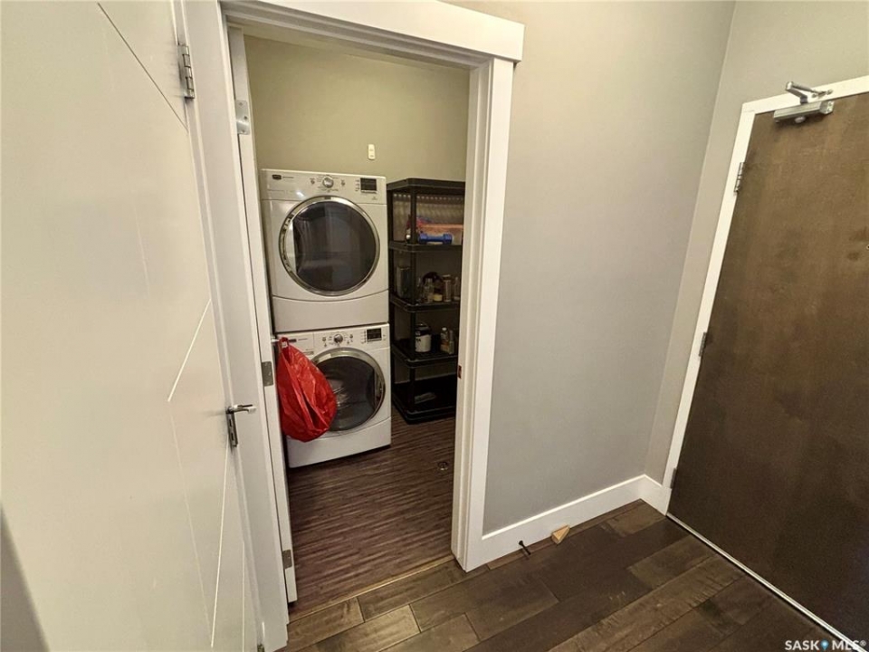 TriBeCa in one of Saskatoon's most desirable and vibrant areas. This amazing building really draws attention when you see it. Great proximity to U of S, Broadway and Downtown. Featuring engineered hardwood floors in living and dining area, heated tile floors in bathrooms, individual furnace, central air, stainless steel appliances, quartz counter tops, large balcony with glass railings, N/G bbq hook up and heated underground parking. 2 bedroom with access to balcony from primary bedroom, large en suite with two closets.