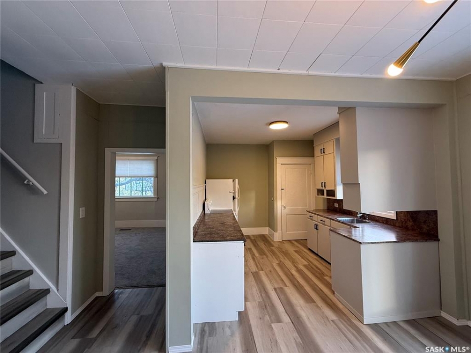 111 5th Ave East, Kindersley. Prime location on this cute, affordable home! Situated just off Main Street, you are a short walk to the middle school, high school, and the West Central Events Centre. The 1928 character home has had several improvements. Entering the home through the front veranda, you will see the spacious living room with a cozy wood fireplace and fresh updated carpet. One bedroom is just off the living room at the front of the home. The dining space and kitchen are a bright space with large windows overlooking the back yard. A 4-piece bath with laundry has been fully updated. The 2nd level up, you will find two bedrooms and a sitting room/den space. The basement houses the utilities and provides storage space. Other features of this home include updated flooring throughout the main, new light fixtures, fresh paint, updated deck and fence, and a newer water heater. Call today for more information and to schedule a walk-through of this property!