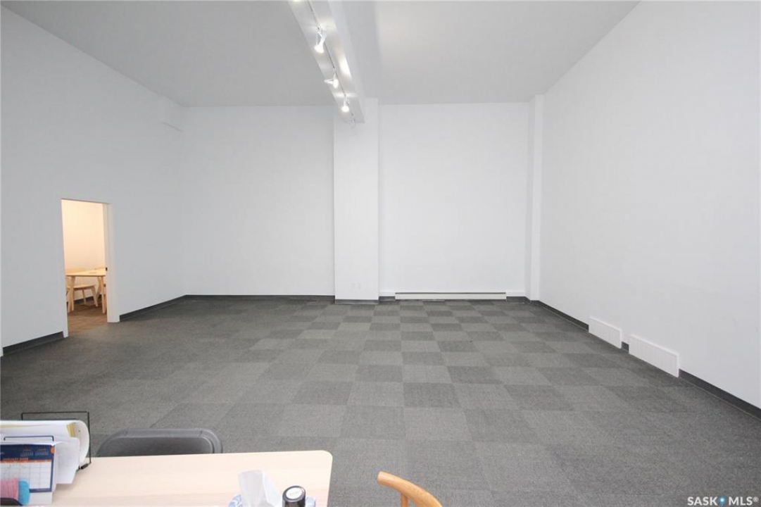 This is one of the nicest commercial spaces in the city with 14' ceilings highlighted by beautiful architectural metal panels offering a unique and upscale vibe. It offers large scale windows facing Broadway St for soothing natural light and high visibility for signage. The space lends itself to a variety of uses from store front space, office space, event space, coffee house, boutique, clinic space, etc. with your exclusive use of the front 1628 sq ft plus the back office, lunchroom and washroom space shared with Moda staff. There is ample on street parking and public parking lot access across the street. The Landlord has installed new high efficient natural gas forced air heat and central air conditioning for maximum comfort. Note: If you need the full 2500 sq ft space exclusively there is the option to rent the entire space - see MLS SK025949 for details.