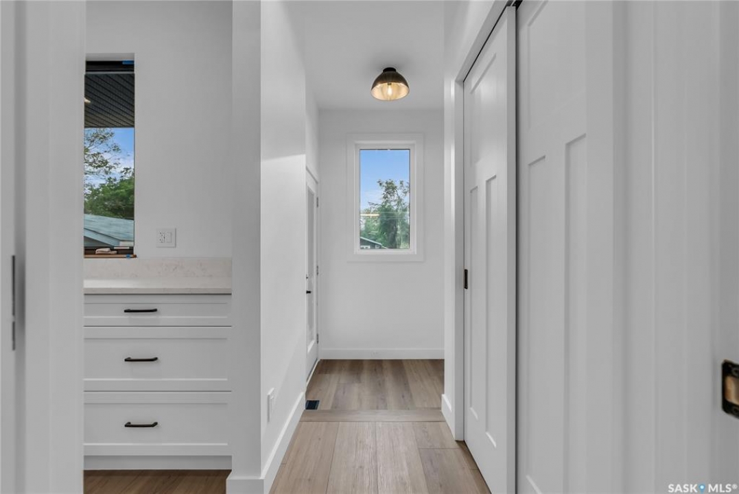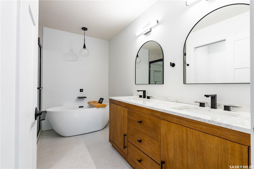 Welcome home to 1313 Edward Avenue in the desirable neighbourhood of North Park. Here you are only a short walk to river walking, schools, parks, and north end amenities! Step inside to be greeted to an open concept layout with a truly thoughtful design. The main floor opens up into a beautiful living room with east facing windows. A gas fireplace is a highlight of this space with a beautiful hearth piece over top. Dining is set ideally for entertaining with ample room for a large table and buffet space. Overlooking your yard with large oversized windows is your chef's kitchen! This space is set to make life more simple with ample counter space, plenty of custom cabinets, and a large island. The adjacent mudroom is perfect for hiding coats and shoes while leading out to the spacious backyard from a covered deck! A 2pc bathroom is also located from the mudroom tucked away. Leading upstairs you will land in a very spacious open hallway accommodating your living quarters. The main event is your master bedroom retreat! This room is overlooking the stunning mature trees and features a large walk-in closet, and a spa-like ensuite! Your personal bathroom is set with stunning tile throughout and features dual vanities, glass shower, and a large freestanding soaking tub. The second story also includes a dedicated laundry room, with storage for linens. There are 2 additional bedrooms on this floor with plenty of light and a full 4pc bathroom. The basement is undeveloped and ready for your design - Future family space, bathroom, and bedroom could be finished here to your liking. Rear alley access and room for a future double detached garage. Front concrete sidewalk is included with additional landscaping available. Fully backed by Sask New Home Warranty included with PST And GST included in the price. Call today to discuss the opportunity of this stunning home!