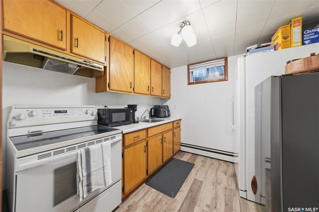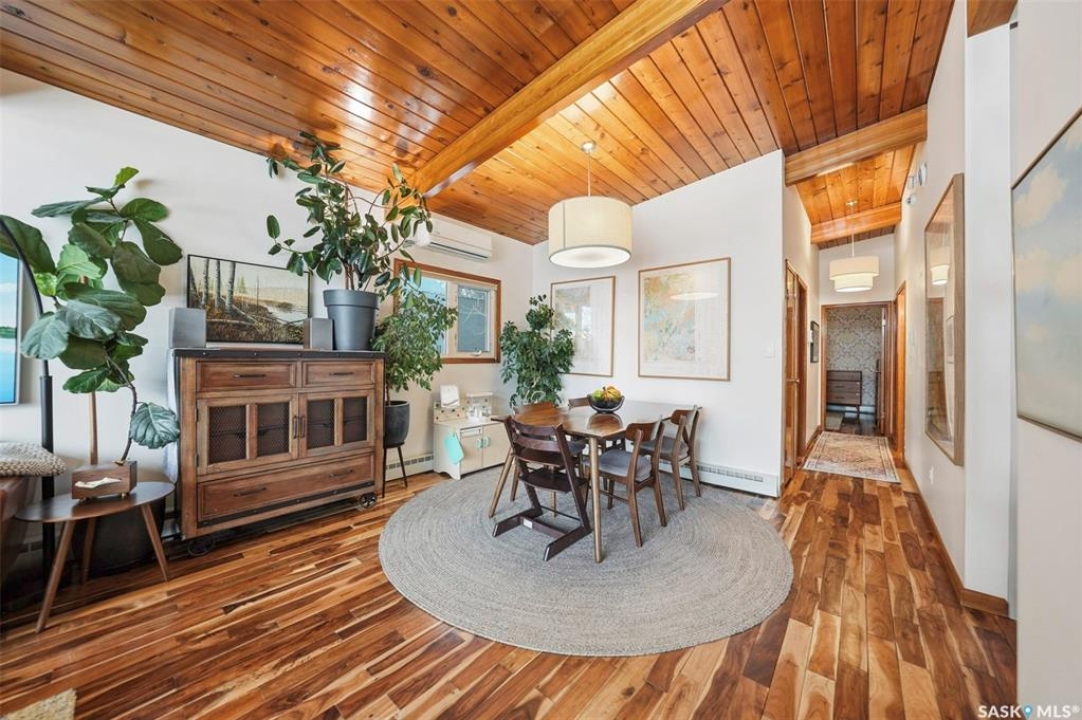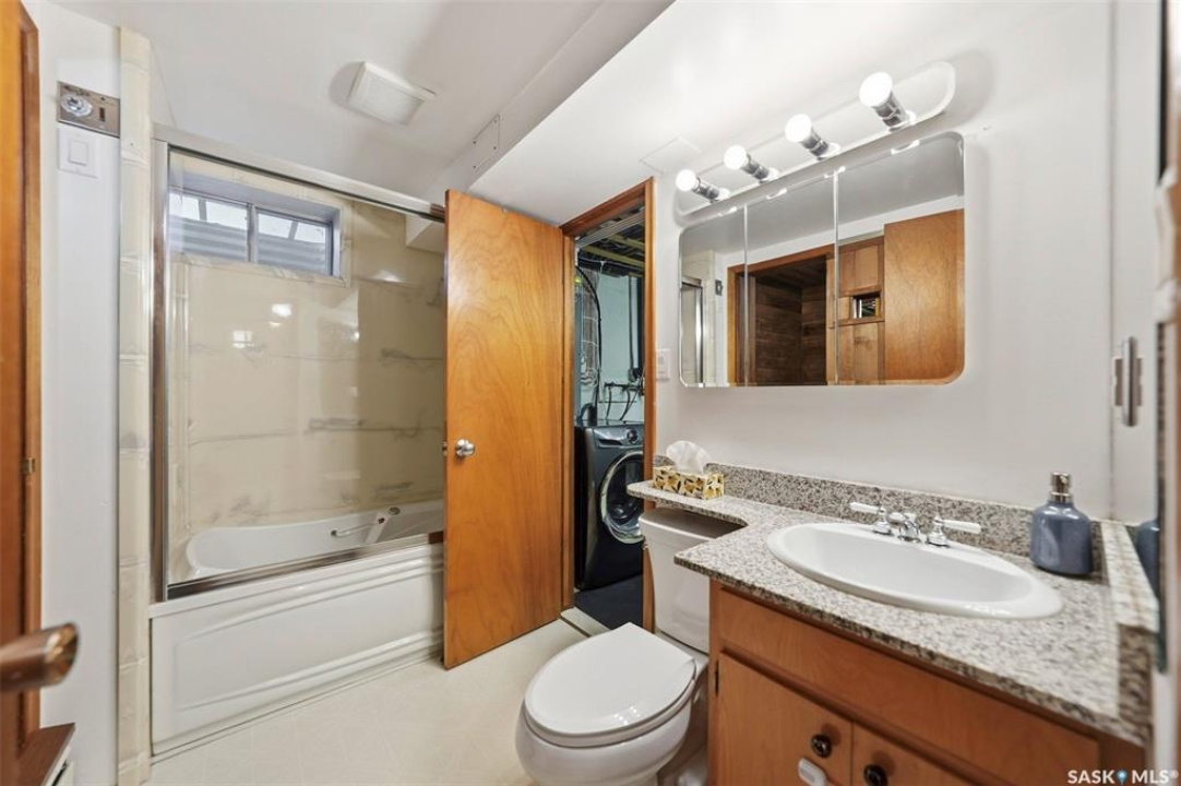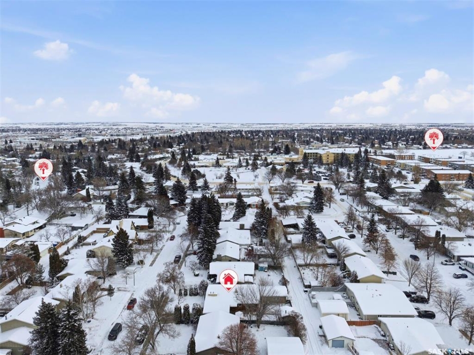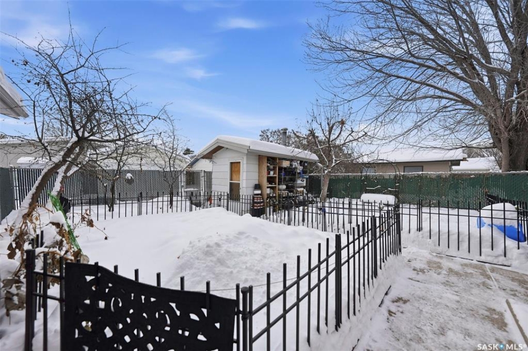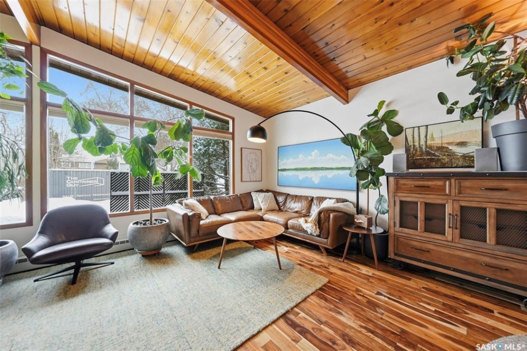 14 Yale Crescent - a thoughtfully updated home that highlights quality finishes and careful attention to detail. The fully renovated kitchen is the heart of the home, featuring top of the line stainless steel appliances including a Wolf dual fuel stove with charbroiler, built in Wolf range hood with remote blower, Subzero fridge, Cove dishwasher, built in Jenn Air coffee machine, and Sharp microwave. Custom cabinetry, quartz countertops and backsplash, a large island with a secondary sink, and smart lighting complete the space. Solid hardwood floors run throughout the main floor and staircase, and vaulted cedar ceilings add warmth and character. The primary bedroom includes a convenient two piece ensuite, and a split air conditioner unit keeps the main level comfortable. Designed for both relaxation and flexibility, the home offers two natural gas fireplaces, a private sauna, and a second kitchen in the basement, ideal for guests or extended family. The updated 200 amp electrical panel adds peace of mind. Outside, enjoy a low maintenance brick exterior with new metal roofing on the house, garages, and shed. There are two garages, one attached and heated and one detached, plus a shed with a built in natural gas smoker. The front yard features a new composite deck and underground sprinklers, while the mature yards are filled with apple and sour cherry trees, Saskatoon berry and raspberry bushes, asparagus, and perennial flowerbeds. This is a rare opportunity to own a well cared for home with exceptional indoor and outdoor features.