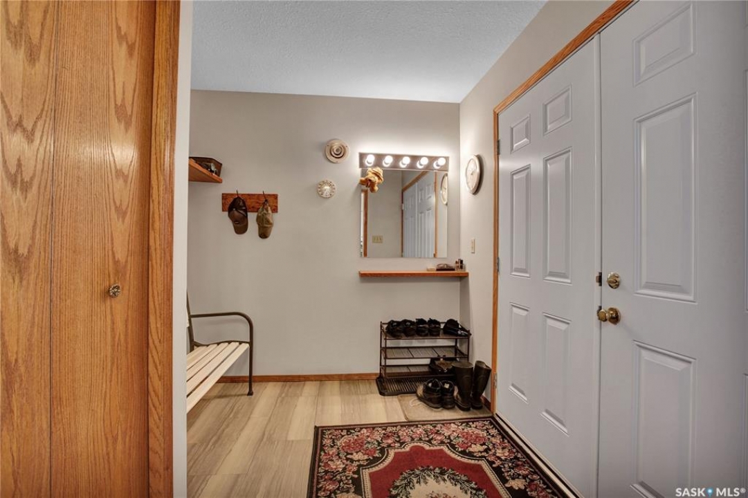 This is truly a one-of-a-kind home in Hague! With over 1,900 sq. ft. of thoughtfully designed living space, this immaculately kept bungalow is anything but average. From the moment you step inside, you'll notice the attention to detail, with the oversized entrance and a functional mudroom to the natural light streaming through the many windows. The main floor features a beautiful kitchen surrounded views of the mature trees and large deck, there is an inviting dining space, and an expansive formal dining room & front sitting room perfect for hosting family and friends. There is also a cozy living room with gas fireplace. The floor plan has been carefully modified for wheelchair accessibility, including oversized doorways, a lift in the double attached garage and a stair assist into the fully developed basement. Convenience continues with main-floor laundry and three spacious bedrooms, making daily living effortless. Downstairs, the fully developed basement offers incredible flexibility with a second kitchen—ideal for use as a nanny suite, multigenerational living, or even creating a private rental opportunity a cozy wood burning fireplace, a large bedroom, den and bathroom. In addition to the thorough maintenance there are many upgrades including new shingles, flooring, a no-maintenance vinyl fence, and a newer furnace and water heater, offering peace of mind for years to come. For parking you'll find a double attached garage, plus a second (small) detached single garage—perfect for extra storage or a workshop. With its thoughtful accessibility features, versatile spaces, and impeccable upkeep, this home is truly one of a kind and must be seen to be appreciated. Contact your favourite REALTOR � today to book your private showing!