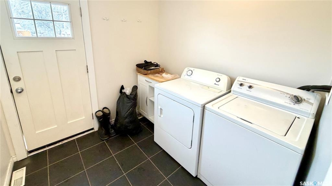 227 Douglass Street, Outlook, SK Well-maintained and MOVE-IN READY, this 2-bedroom, 2-bathroom home offers an AFFORDABLE opportunity in Outlook, Saskatchewan. Built in 1912, this updated 1 �-storey detached home features HARDWOOD FLOORING throughout the living room, kitchen, and bedrooms, with ceramic tile in the bathrooms and laundry/mudroom. The main floor includes a bright living room, functional kitchen, MAIN-FLOOR LAUNDRY, and a 4-piece bathroom, while the second level offers two bedrooms and a convenient 2-piece bath. The property sits on a 50 x 120 FT LOT with a FULLY FENCED BACKYARD, mature trees, and front and back lawns. A 16' x 24' fully INSULATED AND HEATED DETACHED GARAGE provides excellent year-round parking and storage, along with a gravel driveway offering additional parking space. The full basement is unfinished and ideal for storage or future development. Located close to schools, shopping, and downtown amenities, this home is well suited for FIRST-TIME HOME BUYERS, downsizers, or investors seeking value in Outlook SK real estate. Currently tenant occupied.