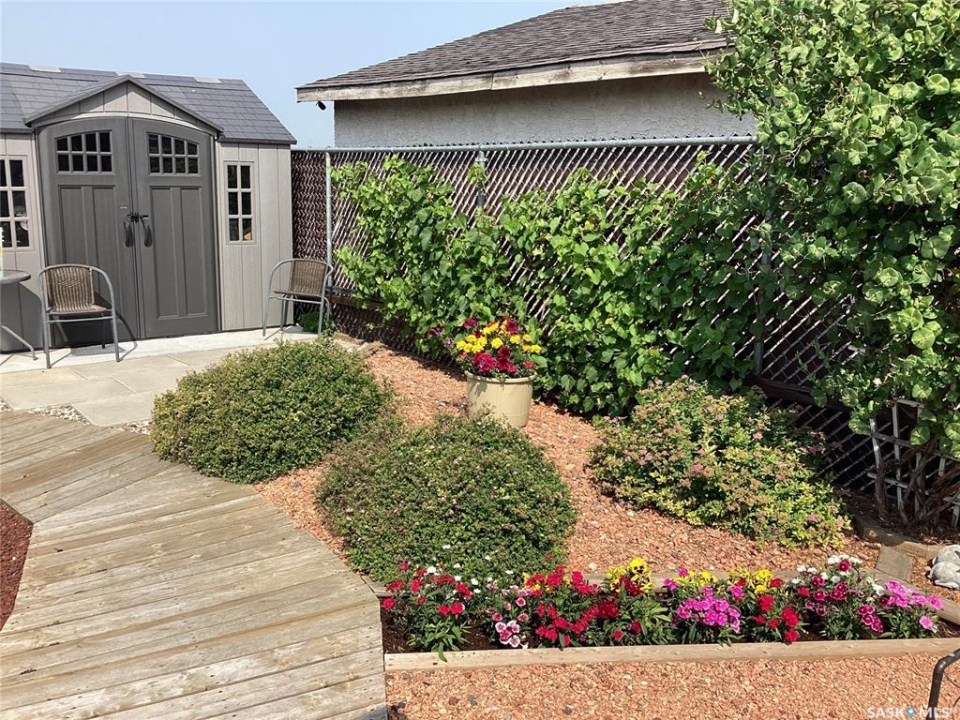 Outdoor: Deck, Fenced, Garden Area, Patio, Trees/shrubs, Xeriscape