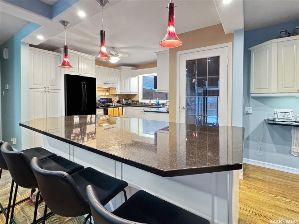 Welcome to this beautifully cared-for bungalow in the heart of Battleford, offering a bright and open layout that seamlessly connects the living room, dining area, and kitchen. The kitchen is both stylish and functional, featuring quartz countertops and a generous island perfect for everyday living or entertaining. With three bedrooms and three bathrooms, the home includes a spacious primary suite complete with a walk-in closet and a four-piece ensuite. The fully developed basement provides additional living space with a large family and games area, extra bedrooms, and a three-piece bathroom—ideal for growing families or guests. Spend quality time relaxing in the attached three-season sunroom or enjoy the backyard patios while taking in scenic river valley views. The back yard has an updated fence and covered gazebo, great for entertaining. Numerous updates have been completed over the years, including shingles, water heater, and central air conditioning in 2016, along with refreshed front-yard landscaping and underground sprinklers added in 2020. The fence was built in 2022 and gazebo 2023. The property also features a single attached garage, a fully fenced yard, and an excellent location. This home truly checks all the boxes—schedule your private showing today.