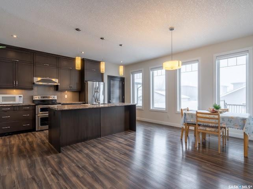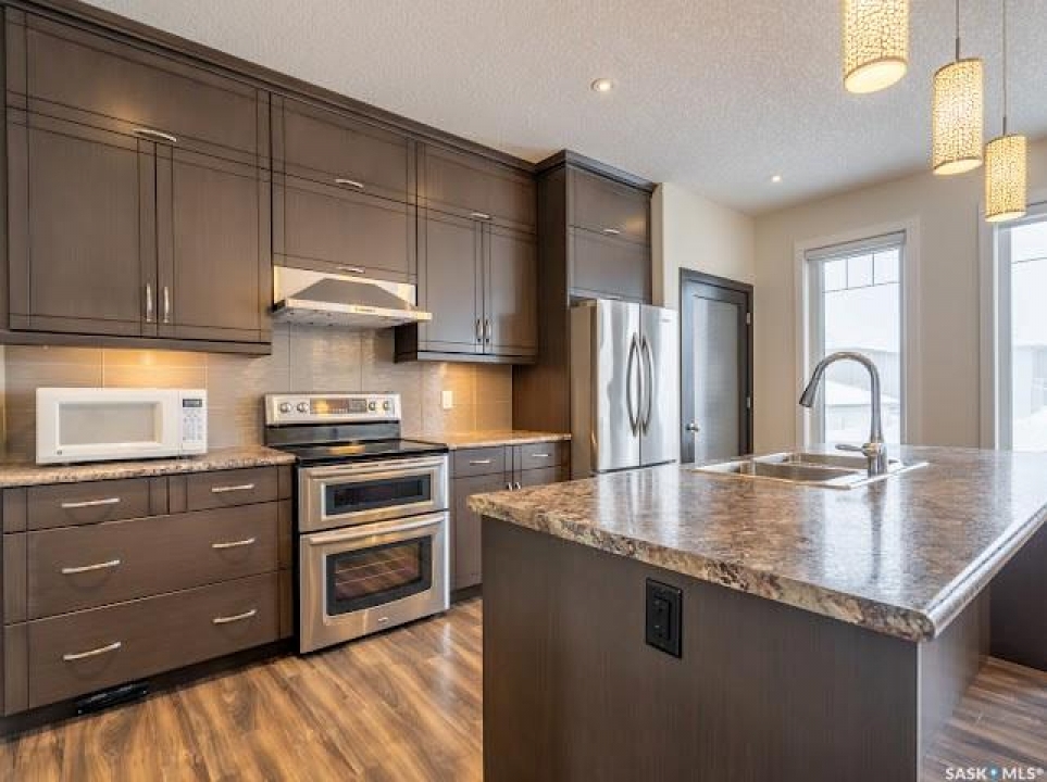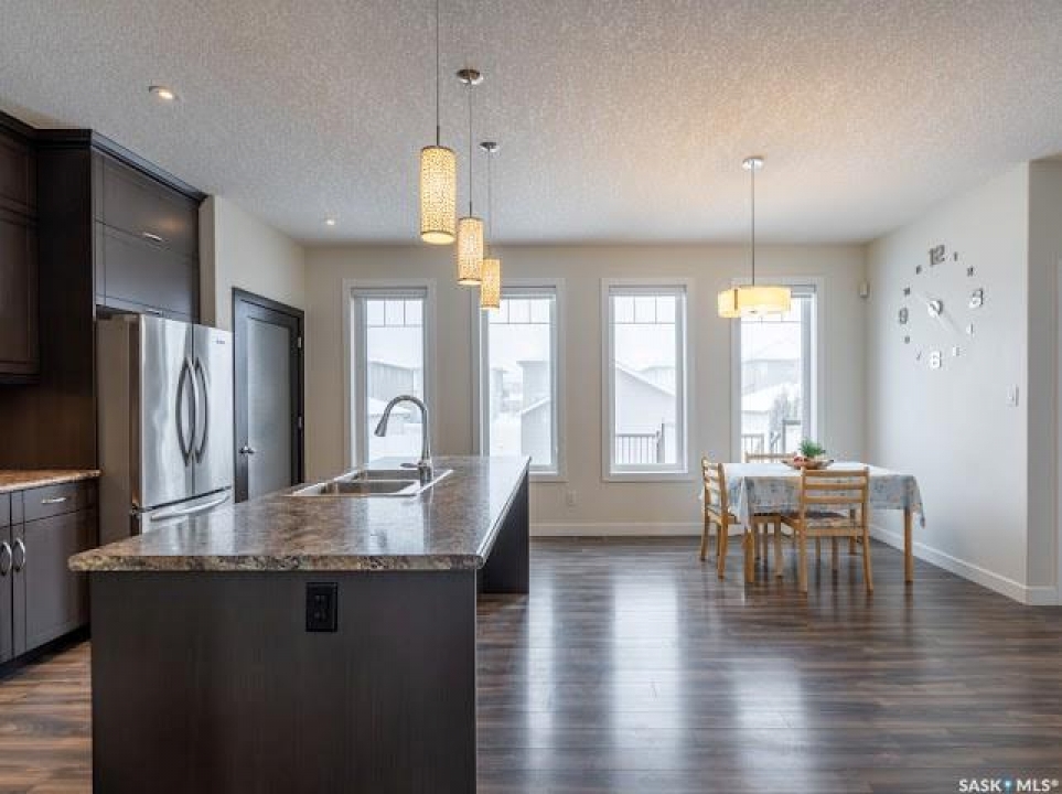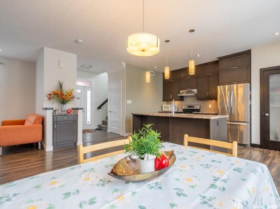 Welcome to 4337 Green Apple Drive E, where exceptional quality meets modern family living in this immaculate two-story home featuring 3 bedrooms and 3 bathrooms. The inviting open-concept main floor is highlighted by 9-foot ceilings and a seamless flow between the living, dining, and kitchen areas, anchored by a cozy gas fireplace—perfect for daily life and entertaining. The stunning kitchen boasts stainless steel appliances, a double temperature oven, floor-to-ceiling cabinetry, a pantry, and a spacious island. A practical mudroom provides access to the backyard, while a convenient half bath complete the functional layout of this level. Step outside from the dining area to your private outdoor oasis, where a large two-tier composite deck features an elegant glass railing for unobstructed views. The home itself is built with superior open-web floor truss engineering, ensuring lasting structural integrity and stability. The spacious, fully-fenced backyard offers ample room to relax and includes back lane parking suitable for an RV or boat, complemented by oversized double car garage. Upstairs, the serene primary suite includes his and hers closet and an ensuite bathroom with a shower and double sinks. Two additional bedrooms, another full bathroom, and a convenient upstairs laundry room complete this level. The undeveloped basement presents a perfect opportunity for future expansion. Nestled on a tranquil green space in Greens on Gardiner, this meticulously cared-for home combines premium finishes, advanced construction, and an exceptional outdoor lifestyle, all while being conveniently close to schools, parks, shopping, and bus routes. Don't miss this opportunity—book your showing today!