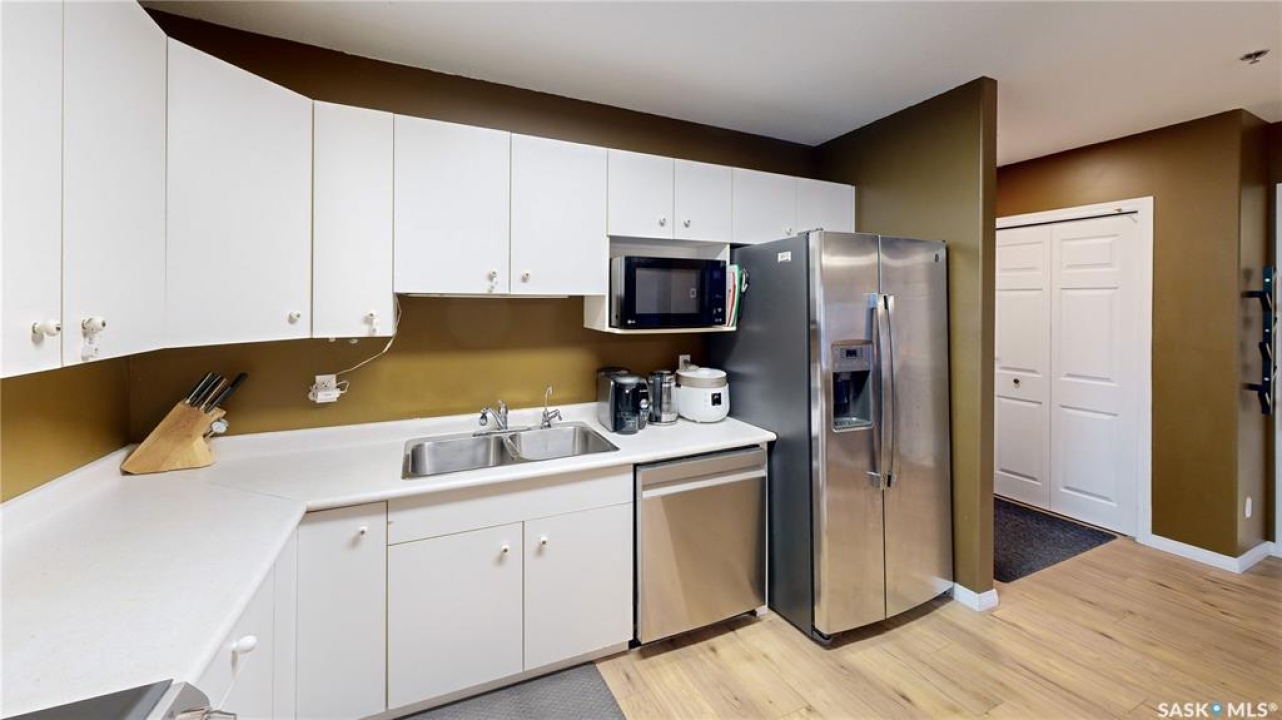 Welcome to this well-kept corner unit in the heart of Regina's sought-after Cathedral neighbourhood. Ideally located just steps from the vibrant downtown core and only a short walk to Wascana Lake, you'll enjoy easy access to restaurants, bike and walking paths, the museum, Wascana Pool and all the outdoor amenities of Wascana Centre. The entryway opens to a spacious kitchen with plenty of cupboard storage, generous counter space, and some newer appliances. Just off the kitchen, a large laundry room provides excellent additional storage or potential pantry space. The layout offers great separation between the two bedrooms, each located at opposite ends of the unit. Between them sits a bright living and dining area with a comfortable, open feel. A full four-piece bathroom completes the interior. As a corner unit, you'll appreciate both west- and north-facing windows, filling the space with natural light throughout the day. The west-facing balcony is perfect for catching evening sunsets, and has access to the utility room for the unit which houses the furnace and provides a bit more heated storage space. The building features a shared second-floor courtyard, ideal for relaxing or visiting with neighbours, and secure underground parking adds comfort through all seasons. If you're looking for a well-situated home close to downtown conveniences and scenic Wascana Park, this Cathedral-area condo should be on your list to view!