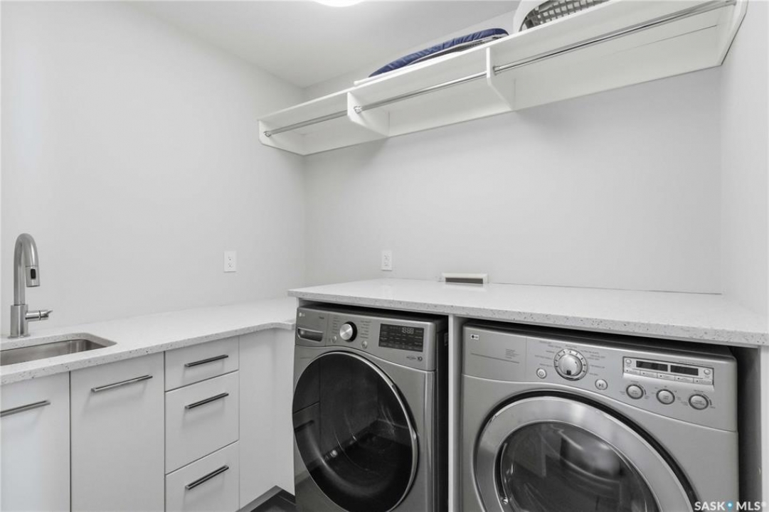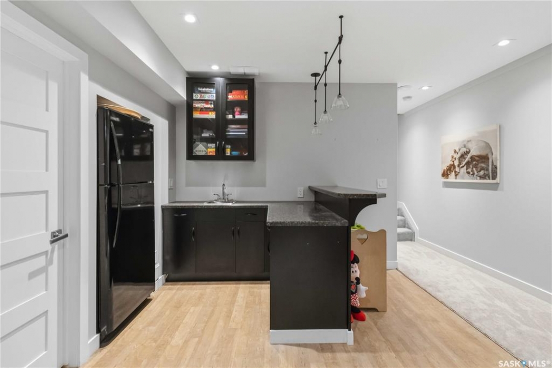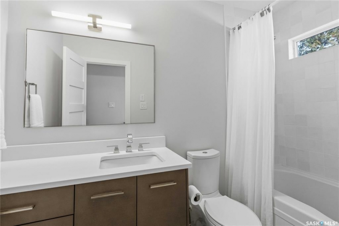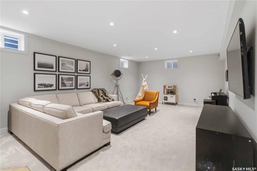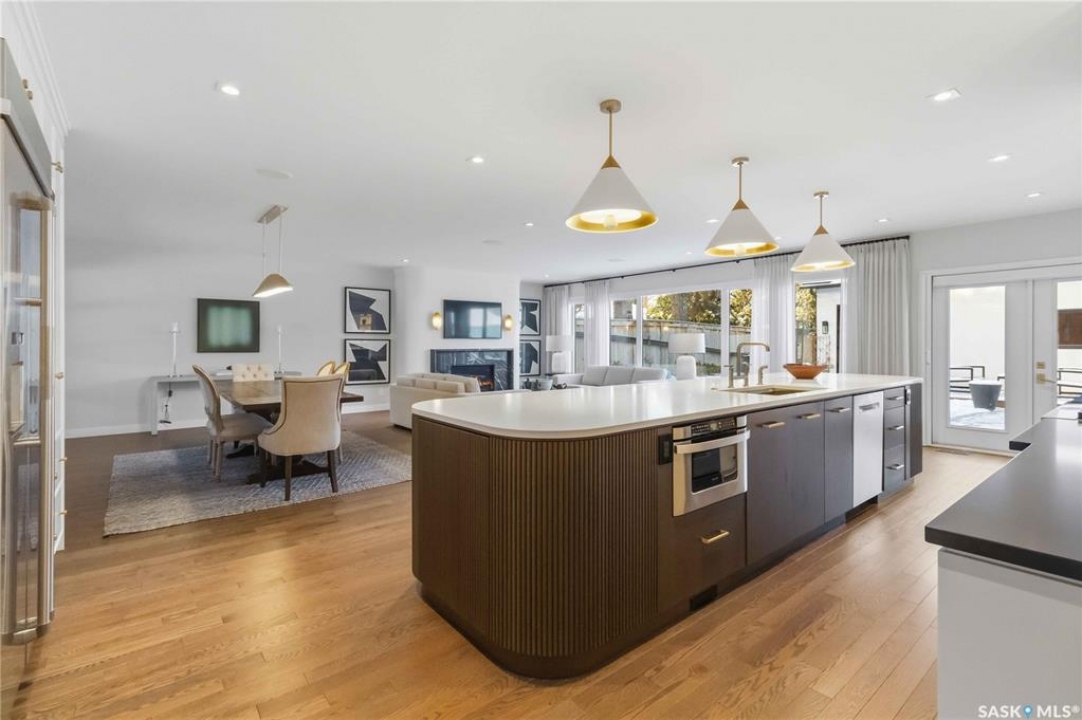Welcome to 1134 Spadina Crescent E, an impeccably reimagined luxury residence where refined design meets exceptional craftsmanship. This two storey home offers 4 bedrooms and 4 bathrooms and was transformed through a professional, year long renovation by Atmosphere Interior Design from 2021 to 2022, showcasing uncompromising attention to detail throughout. The main floor features engineered oak flooring, custom ceiling and wall moulding, and a front executive office framed by steel doors and scenic river views. The showpiece kitchen is anchored by custom cabinetry with Restoration Hardware handles, a full slab marble backsplash, custom brass hood, sculptural brass lighting, and premium JennAir appliances. A statement oak island with fluted detailing, two garburators, artisan tile pantry backsplash, and refined finishes complete the space. The living area is warmed by a marble clad Town and Country gas fireplace and enhanced with motorized blinds, smart lighting, and built in speakers. Designer lighting by Kelly Wearstler, Restoration Hardware, and Arteriors creates a timeless, layered aesthetic throughout. New interior doors with Emtek hardware elevate both function and form. The primary suite is a spa inspired retreat featuring two walk in closets, heated tile floors, steam shower, Restoration Hardware mirrors, and Kelly Wearstler lighting. Secondary bedrooms are thoughtfully curated with designer wallpapers along with custom drapery. Additional highlights include a spacious mudroom, updated staircase with new spindles, and a timeless exterior finished in metal siding and stucco. Outdoor living is enhanced by a new composite deck completed last summer. The heated triple garage offers a drive through bay, slat wall storage, sub panel, and 240 volt plug. Other upgrades include new weeping tile with a sump pit. A rare and refined offering, blending elevated design, modern technology, and timeless elegance for an exceptional lifestyle opportunity.