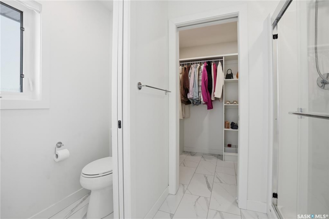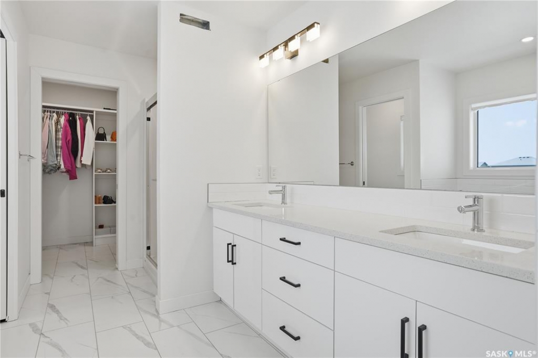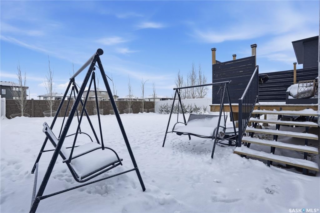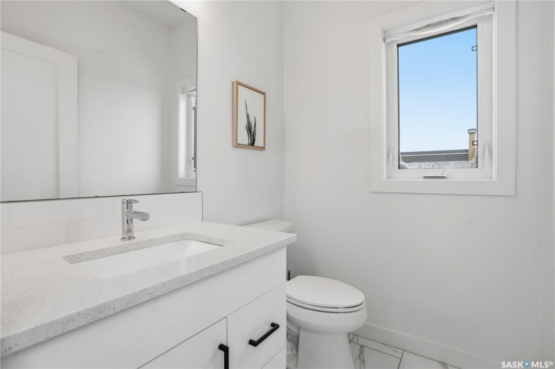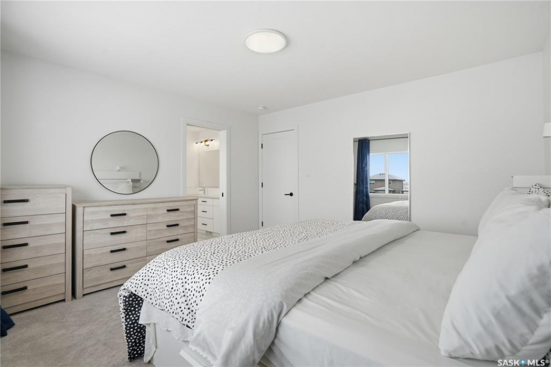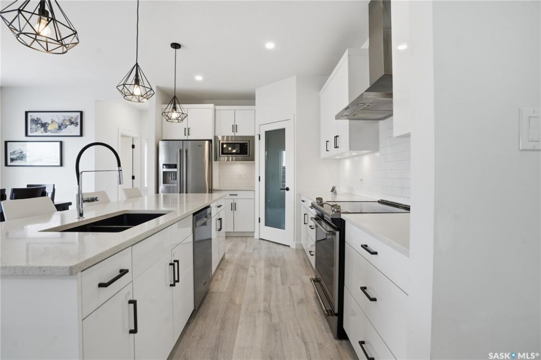 Feeling the pull to escape the city—without giving up convenience? Welcome to Pilot Butte, just under a 10-minute drive from Regina, where you'll enjoy lower property taxes, a relaxed pace of life, and a true sense of community. This thoughtfully designed two-storey home is ideal for a growing family, offering generous space for both everyday living and life's extras. The main floor features 9-foot ceilings and crisp, modern finishes throughout. The kitchen shines with glossy white soft-close cabinetry, quartz countertops, and a stylish tile backsplash. A large island invites gathering—whether it's after-school snacks or weekend cookie baking. The dining area sits just off the kitchen with easy access to the rear deck, while the living room is warmed by a sleek electric fireplace. A convenient two-piece powder room completes this level. Upstairs, you'll find three bedrooms and two full bathrooms. The primary suite is a relaxing retreat with a five-piece ensuite and walk-in closet. A bonus room separates the second and third bedrooms and is perfectly suited for movie nights, a games room, or a play space. Laundry is also conveniently located on this floor. The basement is open for future development, with roughed-in plumbing for a bathroom and two large windows ready to bring in natural light. The triple attached garage is a standout feature, complete with a floor drain and an overhead door providing direct access to the backyard. Outside, the fully fenced and landscaped yard includes irrigation and a deck with privacy screens—perfect for peaceful summer grilling. Located close to parks, walking paths, and ATV trails, this home offers an active, family-friendly lifestyle. A perfect blend of comfort, space, and small-town charm—just minutes from the city.
