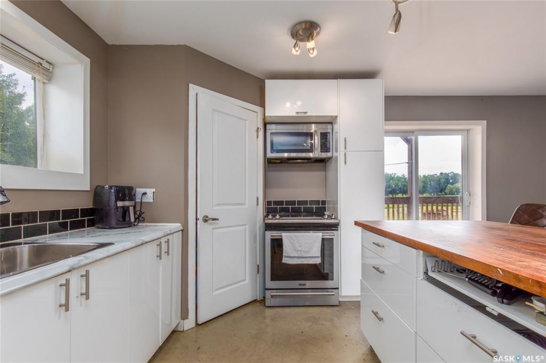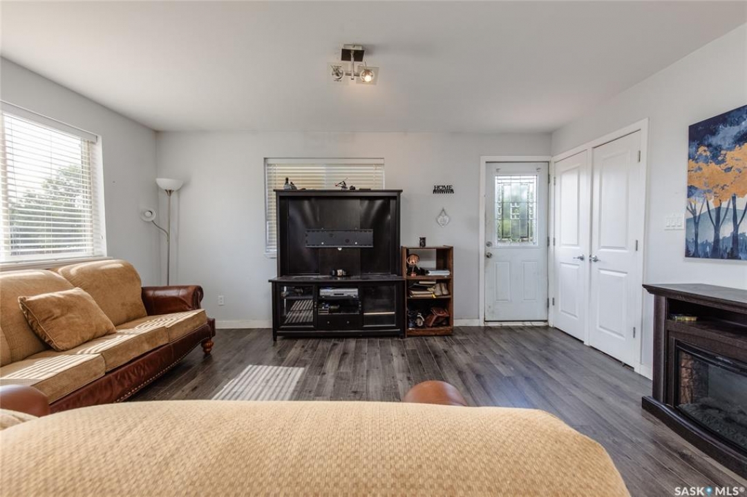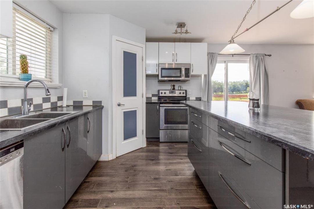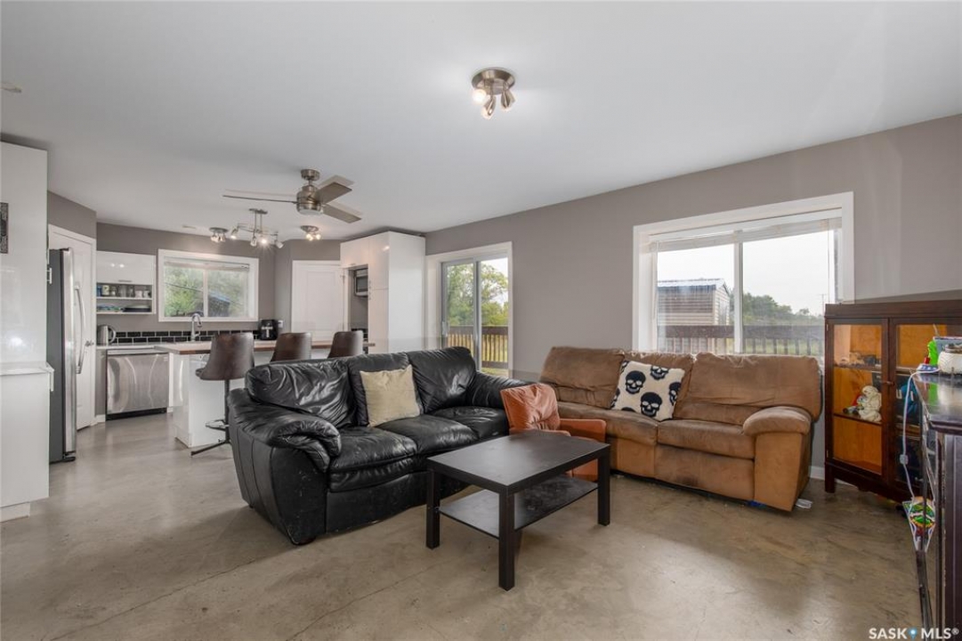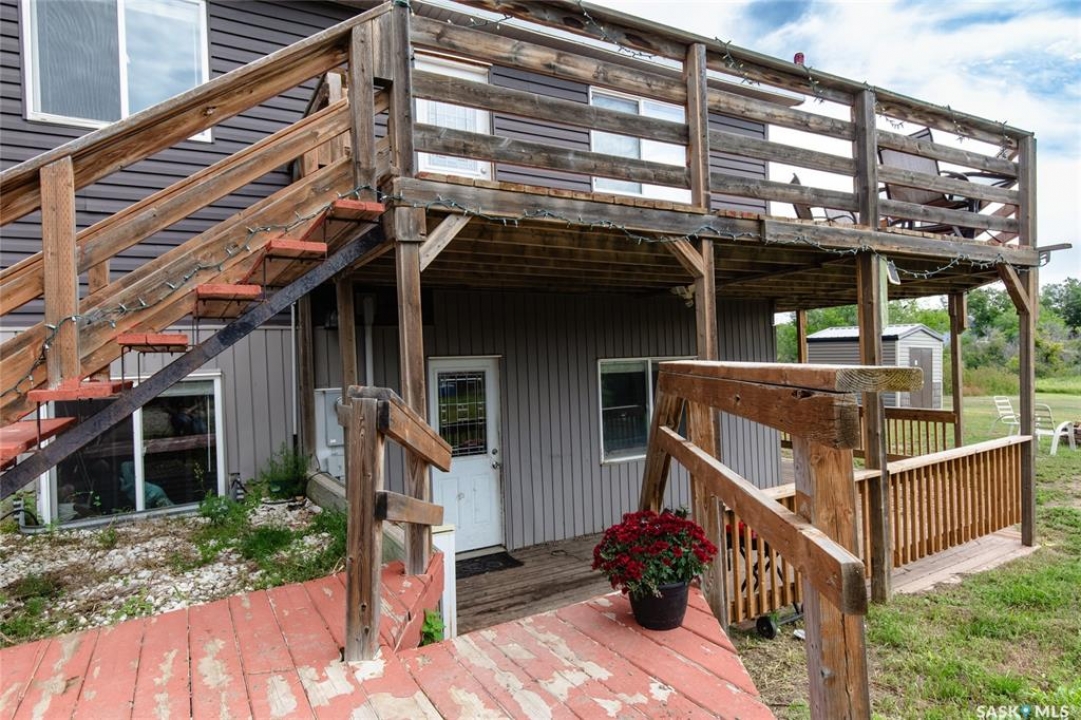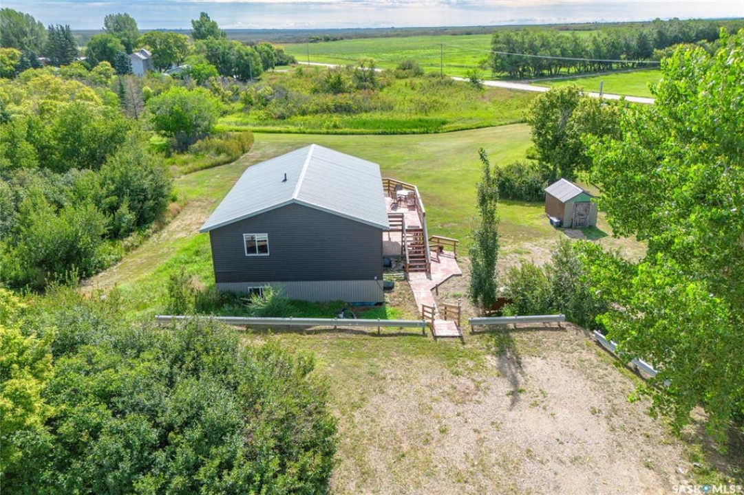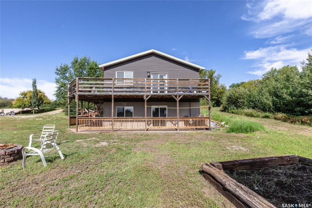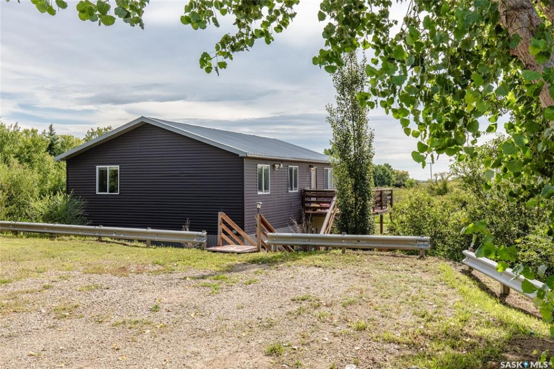 Built in 2014, this bungalow offers two fully developed levels, each 1,130 sq ft, with separate and self-contained living spaces. Both the main and lower levels include three bedrooms, two bathrooms (including an en suite), an open concept full kitchen, a living room, and dining area, a dedicated laundry, and private entrances. The main level features a large wraparound deck on the south and west sides, while the lower level includes stamped concrete flooring with in-floor heating and a walkout basement. Situated on two lots and backing onto open green space, this property offers a rural feel with the convenience of nearby amenities (5 km to Caronport, 29 km to Moose Jaw). The versatile layout makes it well-suited for multi-generational living or rental potential. Book your viewing today!
