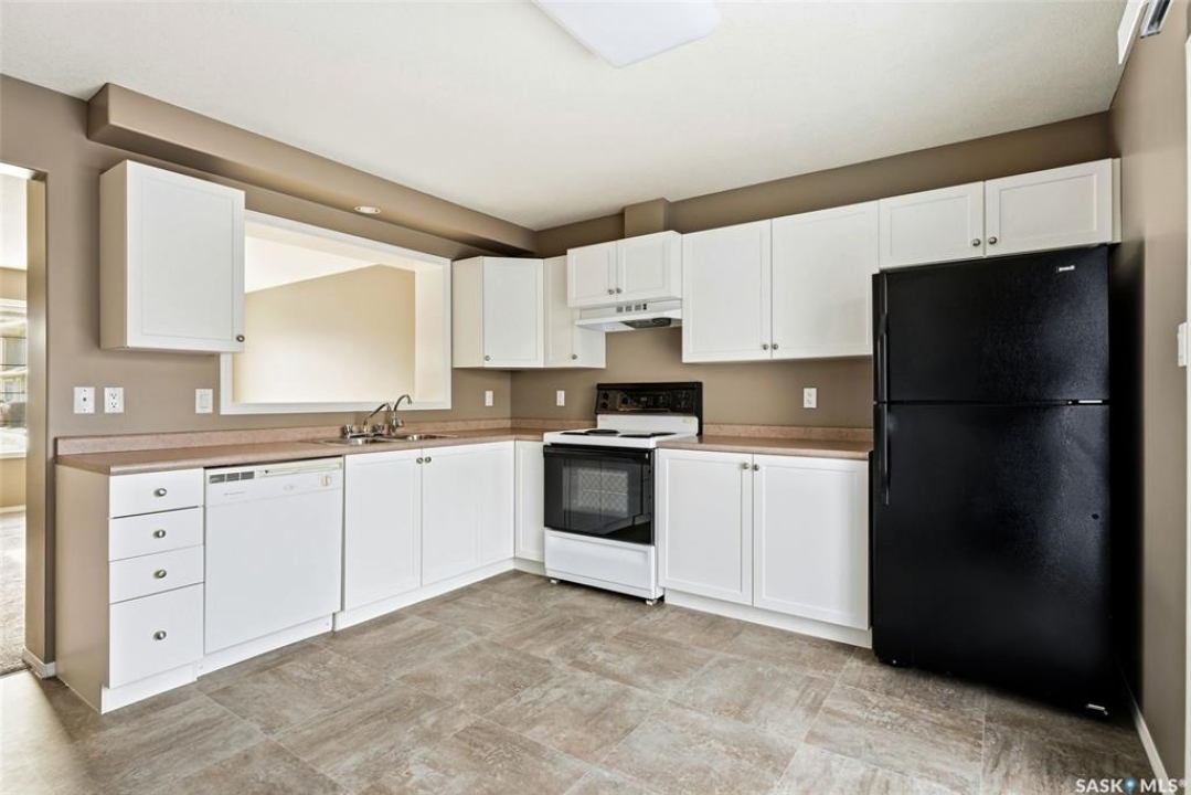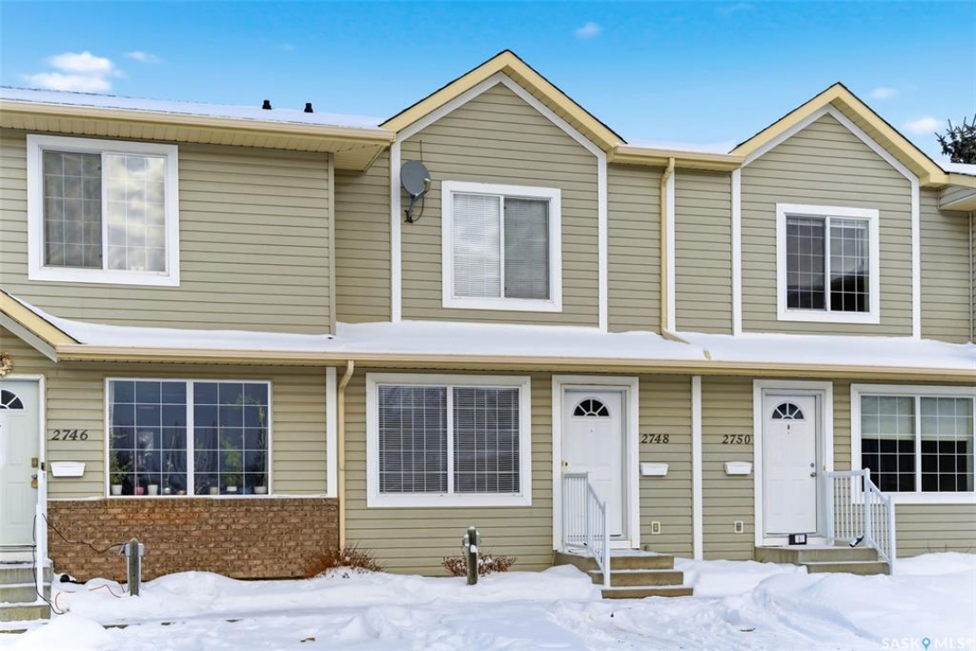 Welcome to 2748 Cranbourn Crescent, a well-kept townhouse located in the desirable neighbourhood of Windsor Park. This multi-level condo offers 944 sq. ft. above grade with a functional layout that blends comfort and convenience. The bright main floor features a spacious living room with a large picture window, perfect for natural light and everyday living. The kitchen and dining area provide ample cabinetry, a built-in dishwasher, pantry and space for family meals, with direct access to the back patio for outdoor entertaining and summer barbecues. Upstairs, you'll find two comfortable bedrooms and a 4-pc bathroom. The basement is unfinished, offering great potential for future development as a rec room, home office, or storage area. Laundry is conveniently located in-unit. This home comes equipped with a fridge, stove, washer, dryer, and dishwasher, along with window treatments. Enjoy the benefits of condo living with lawn care, snow removal, common insurance, reserve fund contributions, and exterior building maintenance included in the monthly condo fees. Outside, you'll find a private patio, partially fenced yard, and one exclusive parking stall. Located close to parks, schools, paths, shopping, and all east-end amenities, Cranbourn Crescent carries a friendly, family vibe—one of those streets that instantly feels like home. Affordable, well-kept, and tucked into a quiet corner of east Regina, don't miss your chance to make 2748 Cranbourn Crescent your own!