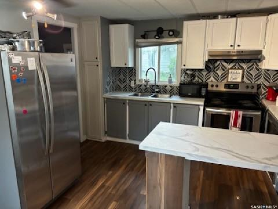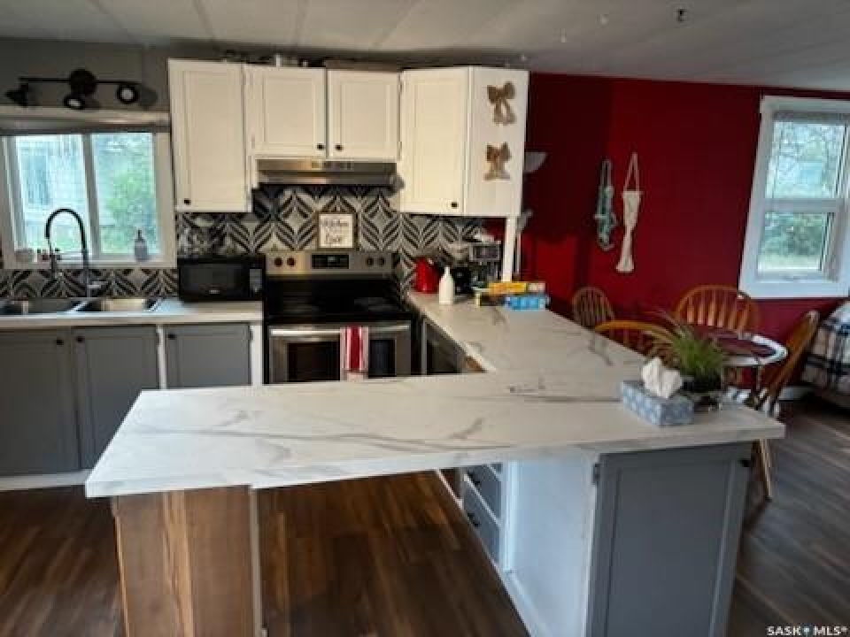 If you are looking for one of the largest AND fenced lots in the Caronport Mobile Home Park, then you will want to take a look at this one!. As you step into the Mobile Home, you will be happy to be greeted by a good sized boot and coat room. Then on up to 'the main trailer and you walk into an attractive kitchen equipped with Stainless Steel appliances and a Breakfast Bar. The laundry room is right off the kitchen area. The Living Room area is a bright welcoming area with lots of natural light flooding in. There are 2 Bedrooms and 1 upgraded bathroom. There is access to this bathroom from the Primary Bedroom as well as the hallway. This mobile provides access to your yard through a set of patio doors in the hallway near the bedroom end of the mobile. This is one of the mobiles at Caronport that DOES offer a single garage for your enjoyment. And as mentioned, you will be pleased as you explore this spacious yard. The Village of Caronport also has a lot to offer with its Elementary and High School, plus Bible College and Seminary. And, the location is just 15 minutes down the Trans Canada to the Friendly City of Moose Jaw! Call for more details and to book your viewing appointment!