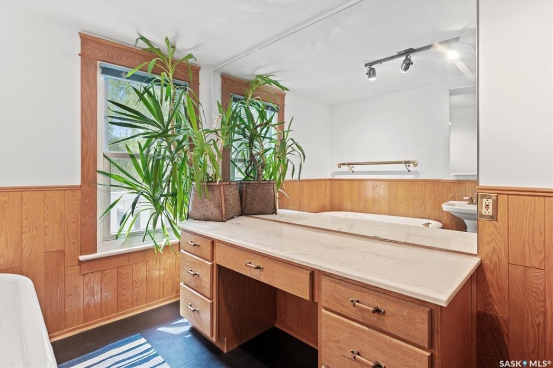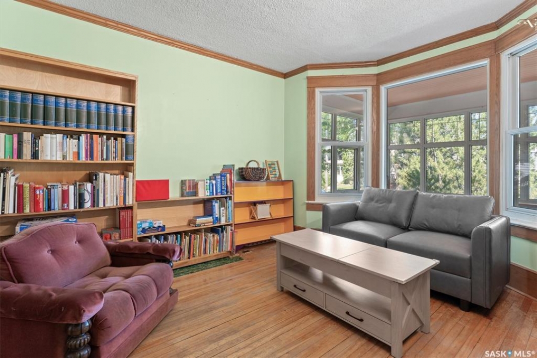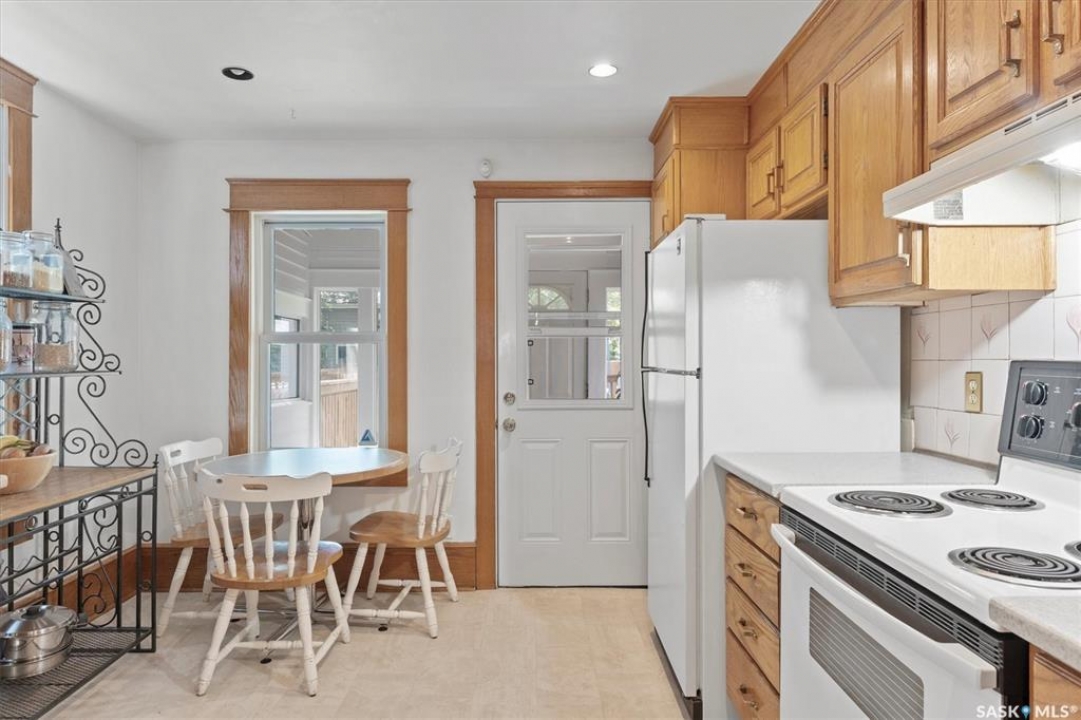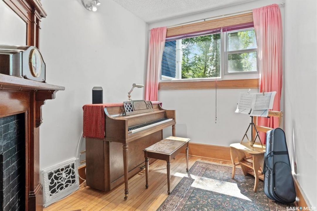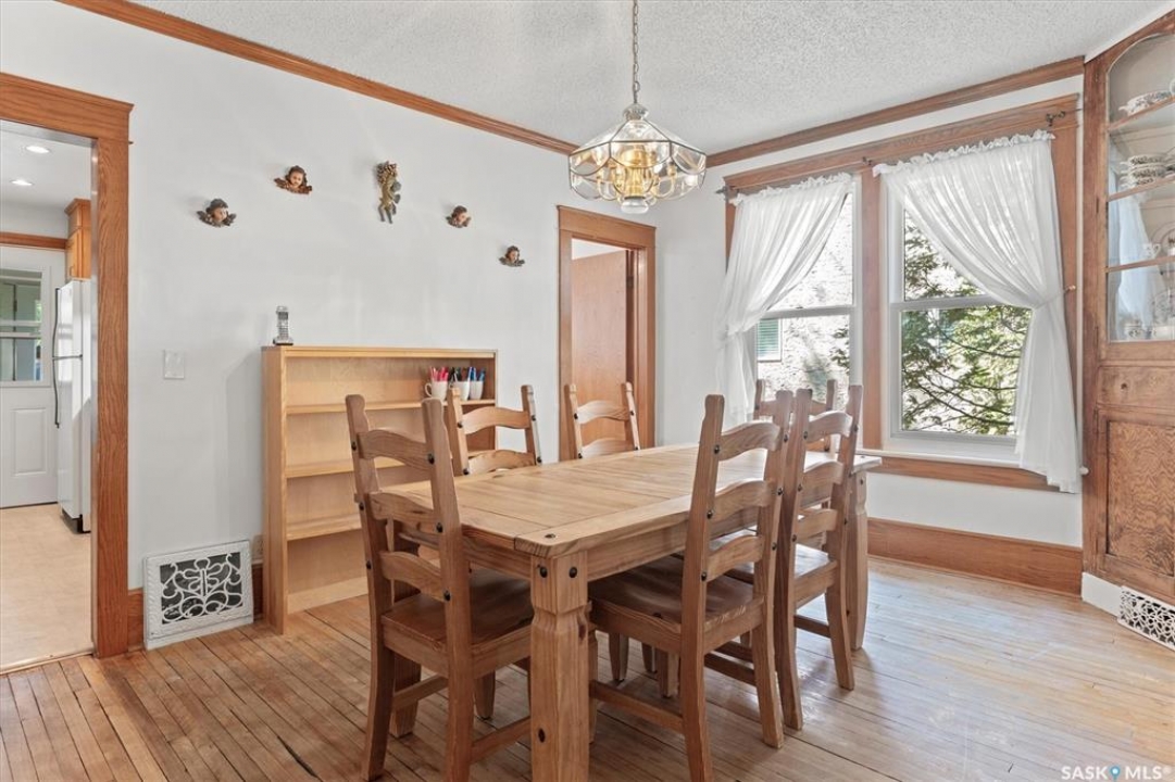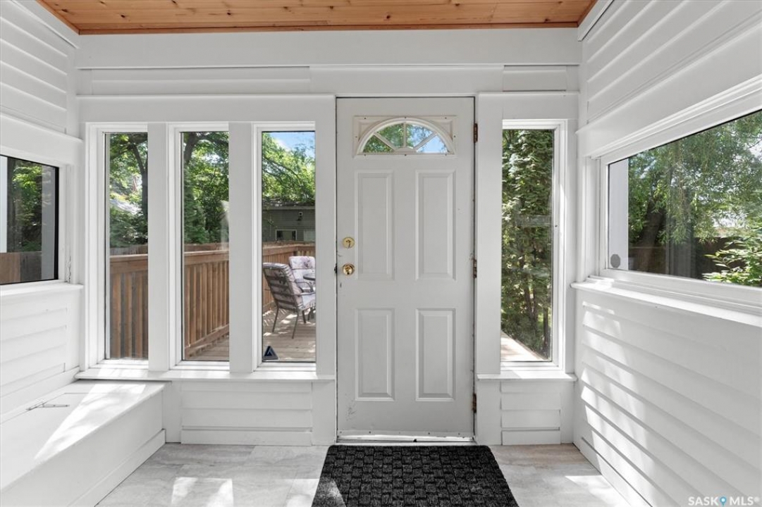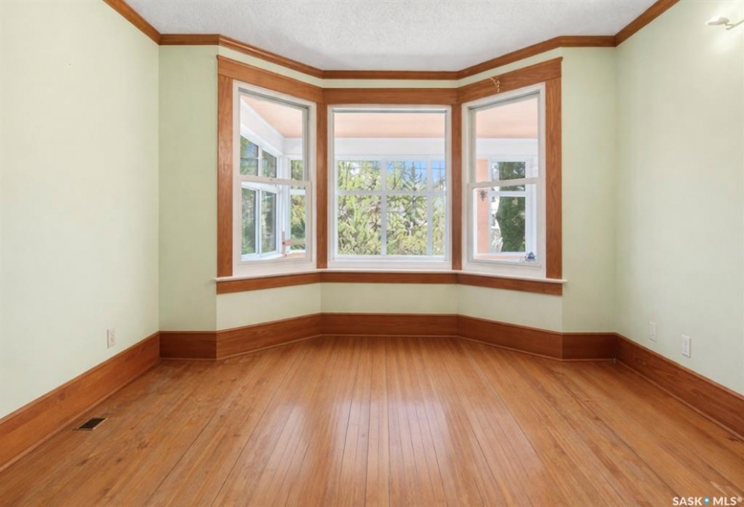 1018 Aird Street – 1912 Character Three-Story in a Storybook Setting! A character located in one of Saskatoon's coveted and walkable neighborhoods. Offering 1,850 sq ft over 3 levels, 4 bedrooms, 3 full baths, a large 37' lot, and a newer tandem detached garage. A picture-perfect front porch leads into a main floor rich in original details: hardwoods, French glass doors, woodwork, two elegant bay windows and a large dining room with a built-in glass china cabinet, plus an office / music room with an original cast fireplace. Main floor also features an oak kitchen, a full 3-piece bath, and a renovated rear porch/mudroom connecting to the backyard. Outdoor living is a highlight: unusually large, fully enclosed fenced yard (bigger than typical for the area), ideal for pets, kids, and leisure, and a sprawling double-tiered deck is perfectly suited for sunny entertaining. The front driveway adds rare, convenient parking to this property. The second level of this home offers three generously sized bedrooms, and a full bath with claw foot tub, with bay window views and a large private treetop balcony off one of the bedrooms! The entire third floor is a master retreat with a sitting area, large bedroom area, and a four-piece ensuite (shower door adjustment required). The basement is undeveloped. Notable updates include: windows, furnace, hot water heater, shingles, plumbing, asbestos removal, newer fencing, updated rear porch, piles under the front porch, shingles, and siding/shingles on the drywalled and insulated garage. This is a special home for people who love character, community, and an inner city neighbourhood - offering the historic charm you dream of, with practical upgrades.