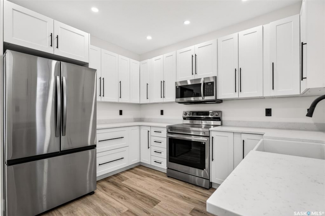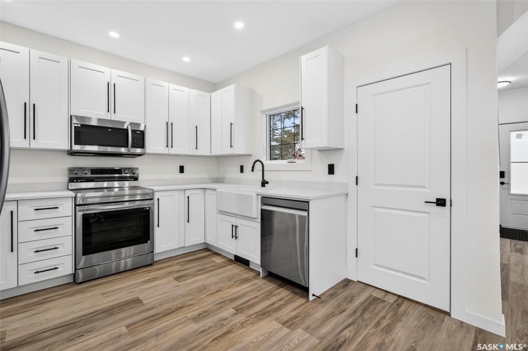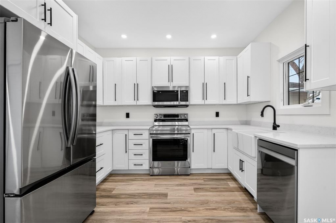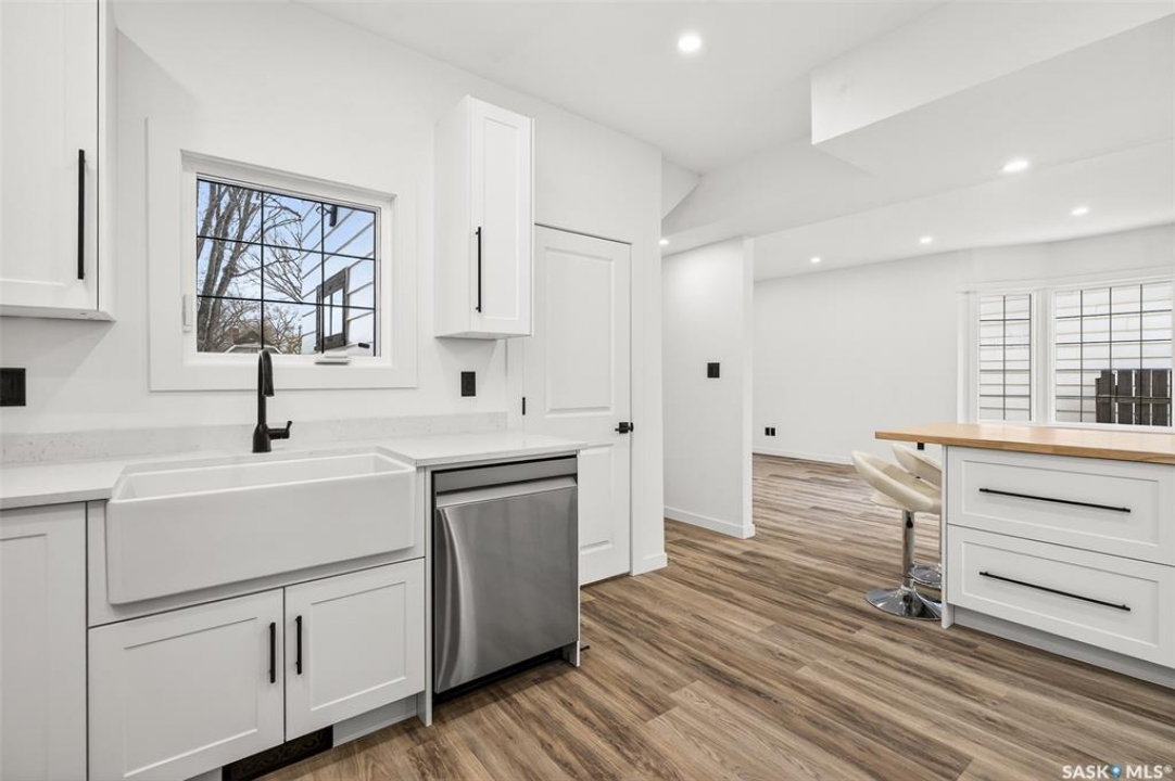 This beautifully renovated one and half storey has been completely transformed, offering the comfort and reliability of a nearly new home with the charm of an established neighborhood. The interior has been stripped to the studs and rebuilt with new insulation (except attic), poly, drywall, interior doors, hardware, flooring, and trim. Main floor is bright with large new windows throughout allowing for plenty of natural sunlight. The stunning kitchen is incredibly functional showcasing white cabinetry with 39-inch uppers, quartz countertops, a farmhouse sink, excellent pantry storage. A full electrical upgrade, including new service and wiring throughout the home and garage. The mechanical systems are entirely new as well, featuring a high-efficiency furnace, Navien tankless hot water heater, central air, all new ductwork, new waterlines, and updated ABS plumbing. The spacious bathroom has been completely redone. Basement is roughed in for a future bathroom and includes a backflow check valve. Exterior improvements include new windows and doors, newer shingles on both the house and garage, and new soffit, fascia, and eavestroughs with leaf guards. The single garage features a new overhead door, opener, and generous attic storage. Both the front and back decks are newly built and the yard is well-designed with garden space and additional parking finished with reclaimed asphalt. This home offers exceptional value with extensive upgrades inside and out! Quick possession available.