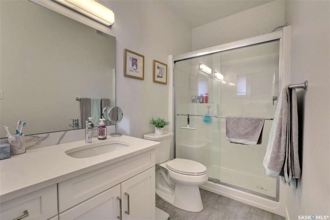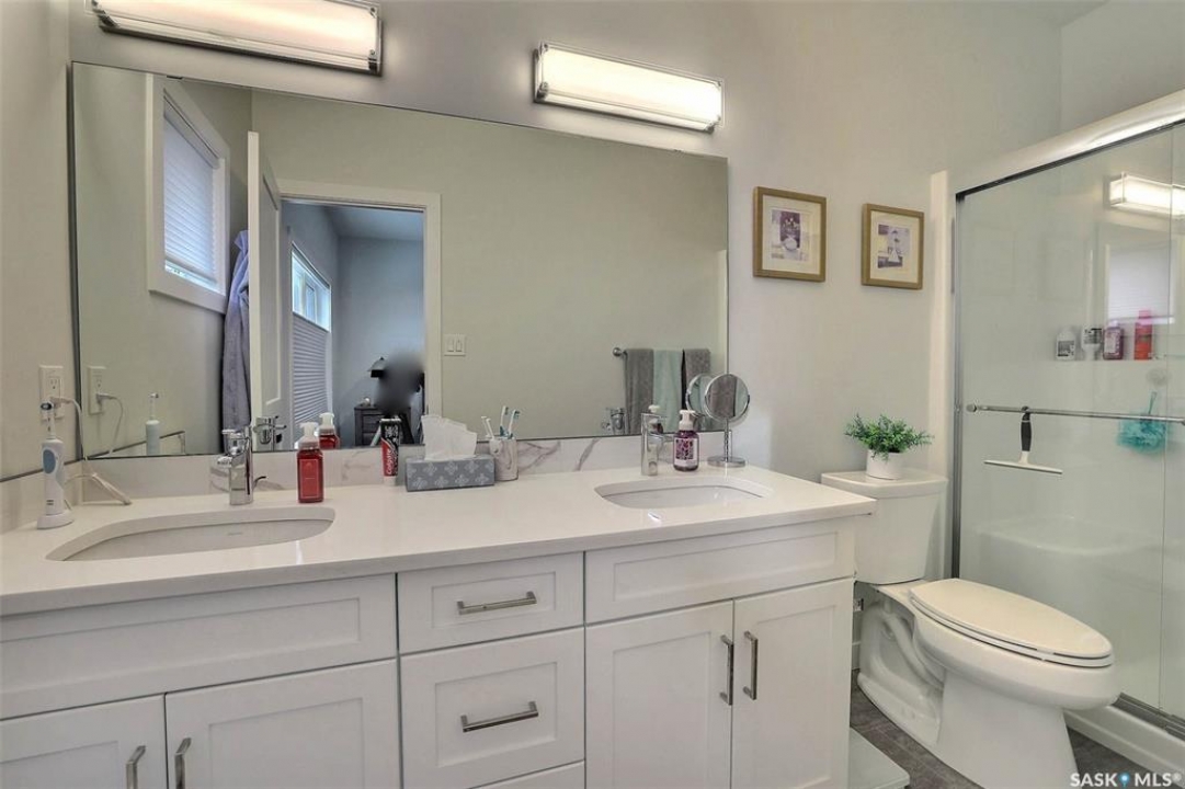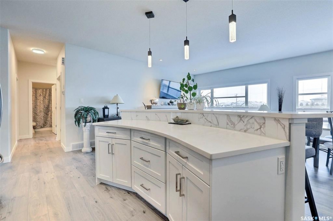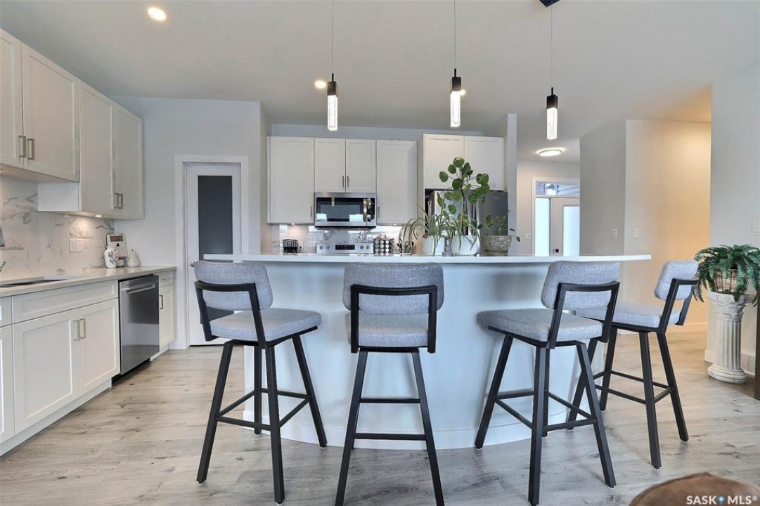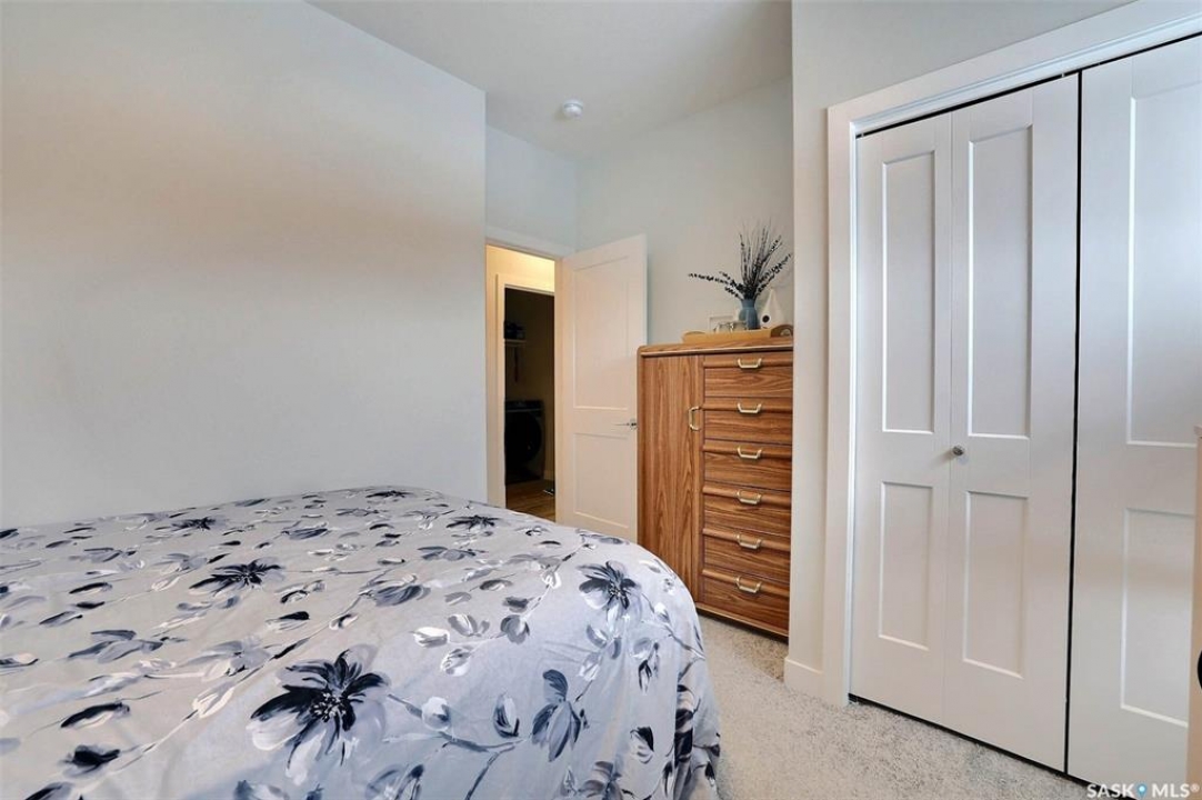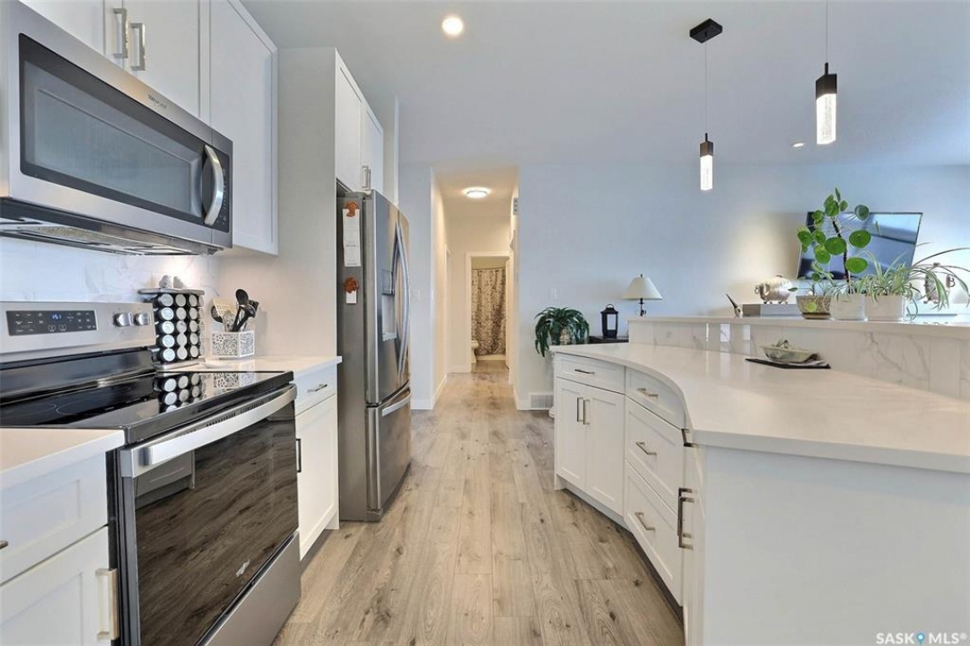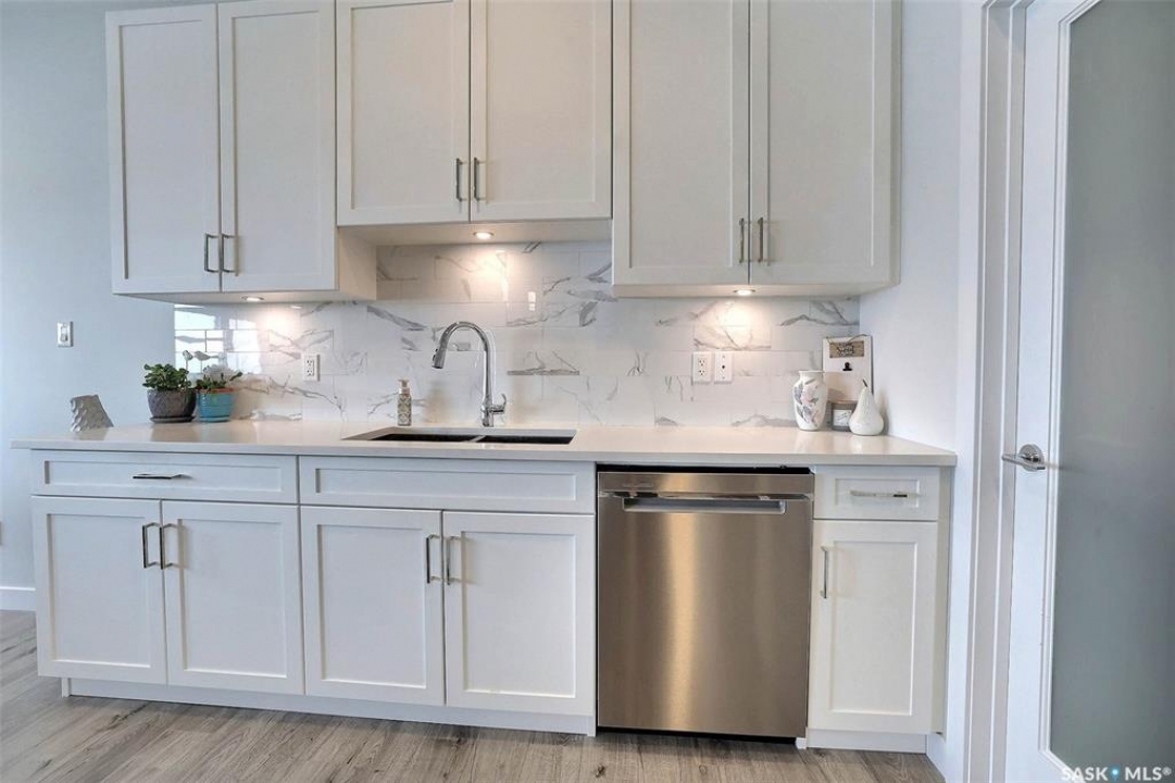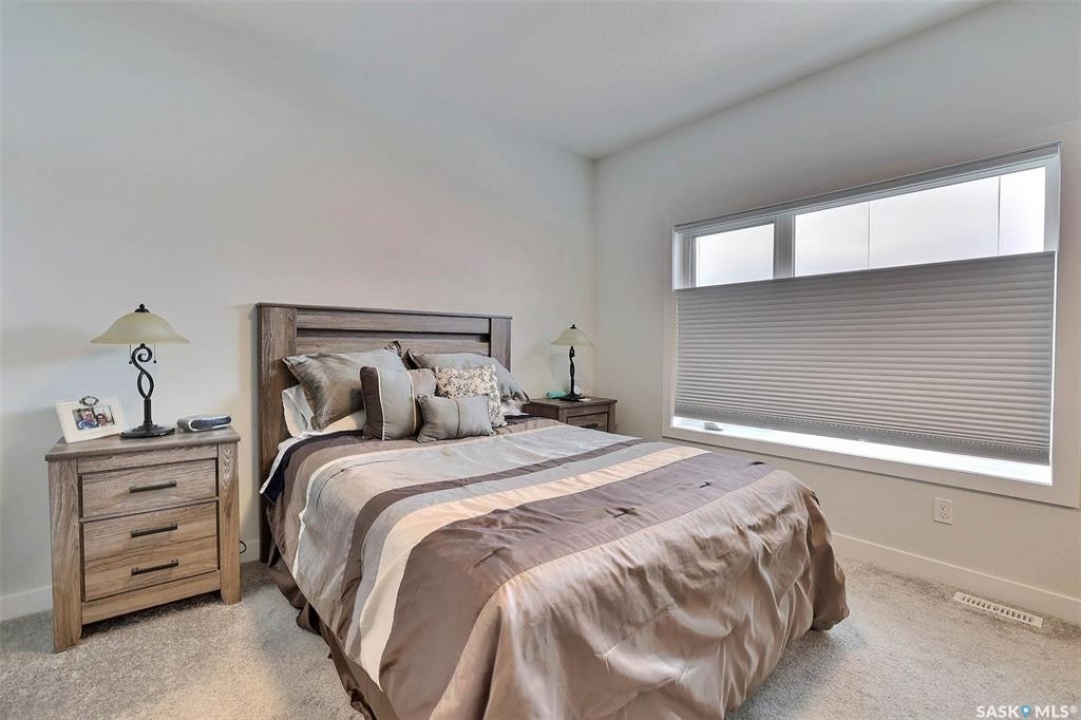 Beautiful, meticulously maintained bungalow condo with double attached garage. Spacious entry leads to wide open floorplan flooded with natural light from the wall of south facing windows. Large kitchen with gorgeous white cabinets, large sit up eating island, plenty of stone counterspace and huge pantry. Large sunny living and dining room with garden doors to rear yard. Primary suite with walk in closet and 3pc ensuite featuring double sink vanity and oversized shower. 2nd bedroom generous in size plus main floor laundry room and main 4pc bath. Basement features insulation and partial wiring and is wide open for your future development plans with roughed in plumbing. Direct entry to the double attached, insulated and heated (electric) garage. Sunny rear yard offers open space behind and is xeroscaped with patio, maintenance free greens and rock garden area. All top end appliances plus central air, island stools and living room wall mounted TV included. Complex very well managed and ideally located close to all east end amenities. Grocery, shops, restaurants and more all in walking distance. Move in ready. Call today!
