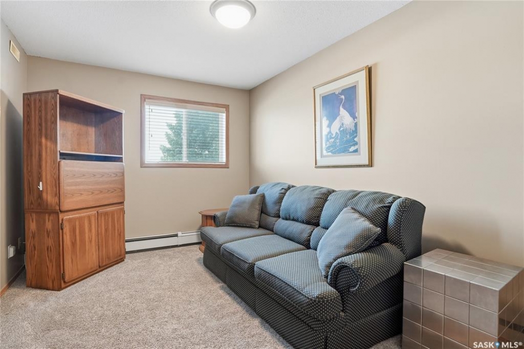 Welcome to Spruce Grove Manor, a well-established and highly regarded 55+ building located in the desirable University Heights neighborhood on Saskatoon's east side. This spacious unit offers approximately 1,300 sq. ft. of comfortable living space, featuring two bedrooms and 1.5 bathrooms. The layout includes a large primary bedroom with private 2-piece ensuite, a second bedroom, a full 4-piece main bathroom, and a generous combined laundry and storage room with additional built-in cabinetry. The kitchen is well-appointed with oak cabinetry, upgraded countertops, tile backsplash, stainless steel range, built-in dishwasher, refrigerator, and white range hood with shelf microwave. A spacious dining area sits directly off the kitchen, flowing into a large living room that easily accommodates multiple furniture arrangements. An enclosed sunroom with expansive windows provides abundant natural light and enjoyable outdoor views year-round. Additional upgrades include laminate flooring throughout the main hallway, dining room, living room, and sunroom, wall-mounted air conditioners, custom blinds, and extra storage. The unit includes one underground parking stall and a separate basement storage locker. Residents also enjoy access to a large amenities room for gatherings and meetings, as well as a shared workshop area. Conveniently located close to shopping, parks, and major roadways, this is an ideal opportunity for those looking to downsize without sacrificing space or comfort.