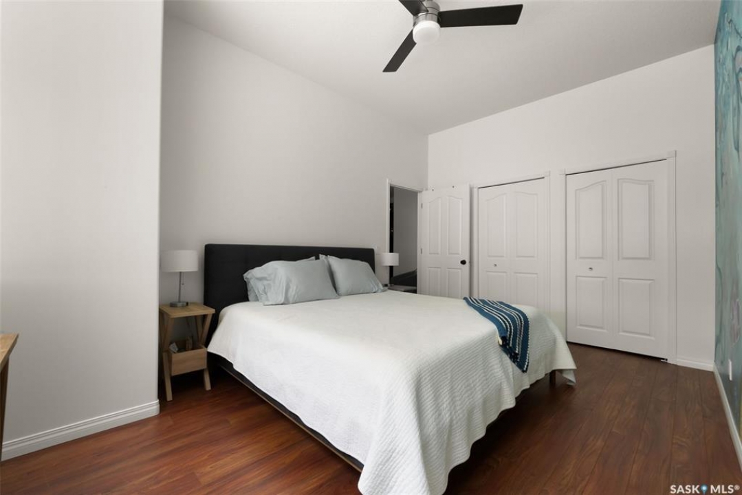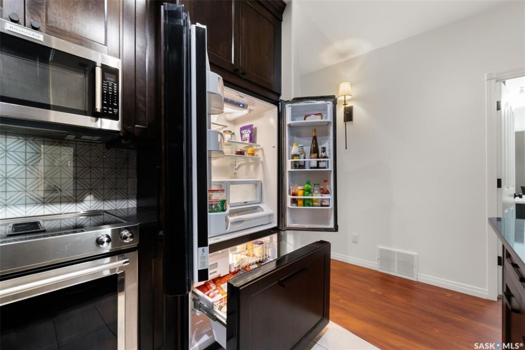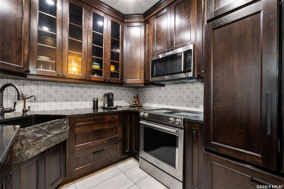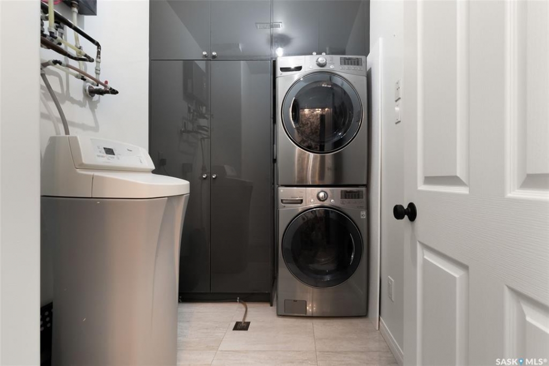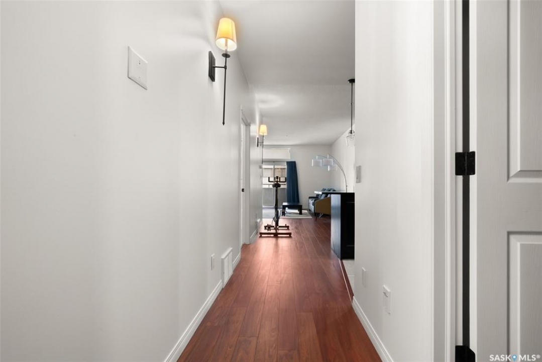 Welcome to the 7th floor of Victoria Place; where refined luxury meets the convenience of downtown Regina. This impeccably designed residence offers the ultimate urban lifestyle, just steps from some of the city's finest dining, shopping, and entertainment options. From the moment you enter, you'll be captivated by the high-end finishes and thoughtfully curated details throughout. Soaring 10-foot ceilings and a fresh, modern palette set the tone, complemented by elegant tile and laminate flooring that seamlessly unify the space. The show stopping kitchen, featuring quartz countertops, full-height custom cabinetry, integrated appliances, under cabinet lighting and a distinctive raw-edge sink combines form and function with striking visual appeal. The spacious open-concept living and dining area is bathed in natural light from the east-facing balcony doors, creating a warm and inviting ambiance. Step outside to enjoy your private balcony, the perfect spot for a morning espresso or an evening escape. Retreat to the beautifully appointed bedroom, featuring an artistic accent wall that adds personality and charm to the serene space. The den provides office space, or whatever your needs require, for flexible versatility. The stylish 4-piece bathroom offers bright, modern tiling and ample storage, while in-suite laundry and a private balcony storage room enhance daily convenience. Constructed with solid concrete, the building ensures exceptional soundproofing and long-lasting quality; providing peace, privacy, and a true sense of sanctuary in the heart of the city. Don't miss this rare opportunity to own a piece of luxury in one of Regina's most iconic downtown addresses. Urban sophistication awaits.