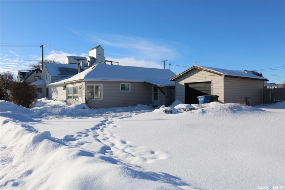 Cute and affordable! An ideal rental property or place to call your own. Own it for less than you'd pay for rent! Located in the great community of Rocanville with just a short commute to the Nutrien mine or Moosomin. Updates include shingles on the house (2024) and garage (2025), fence, and landscaping to build up the yard. The detached garage is 16 x 22. A good sized porch gives room for a freezer, your coats, and has a door to access the backyard. Functional bathroom is right next to the bedroom. Bright kitchen with unique corner sink and nice cabinetry is open to the living room. The sunroom is at the front entrance and is bright and cheery with lots of windows. Laundry and utility is in the basement. Contact your agent to view this great property!