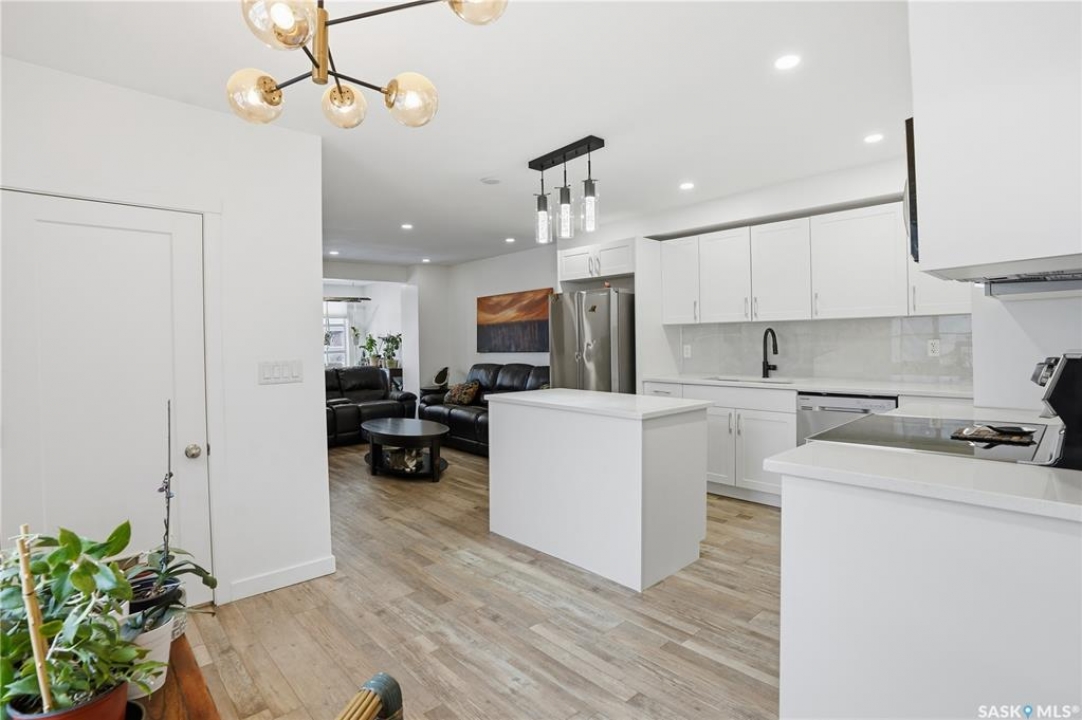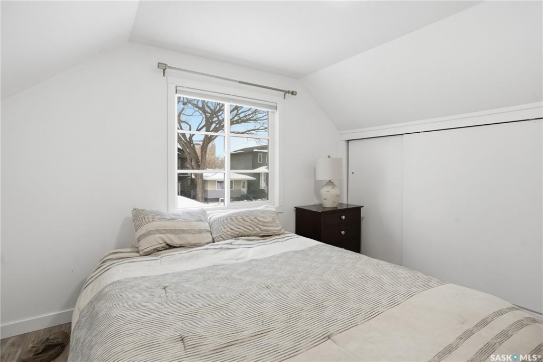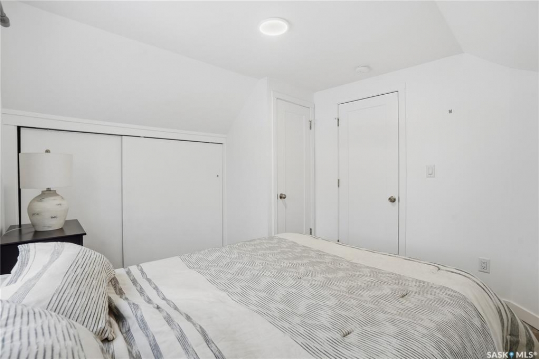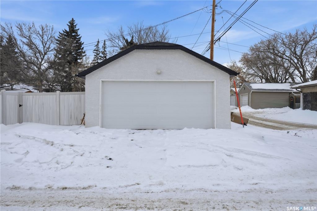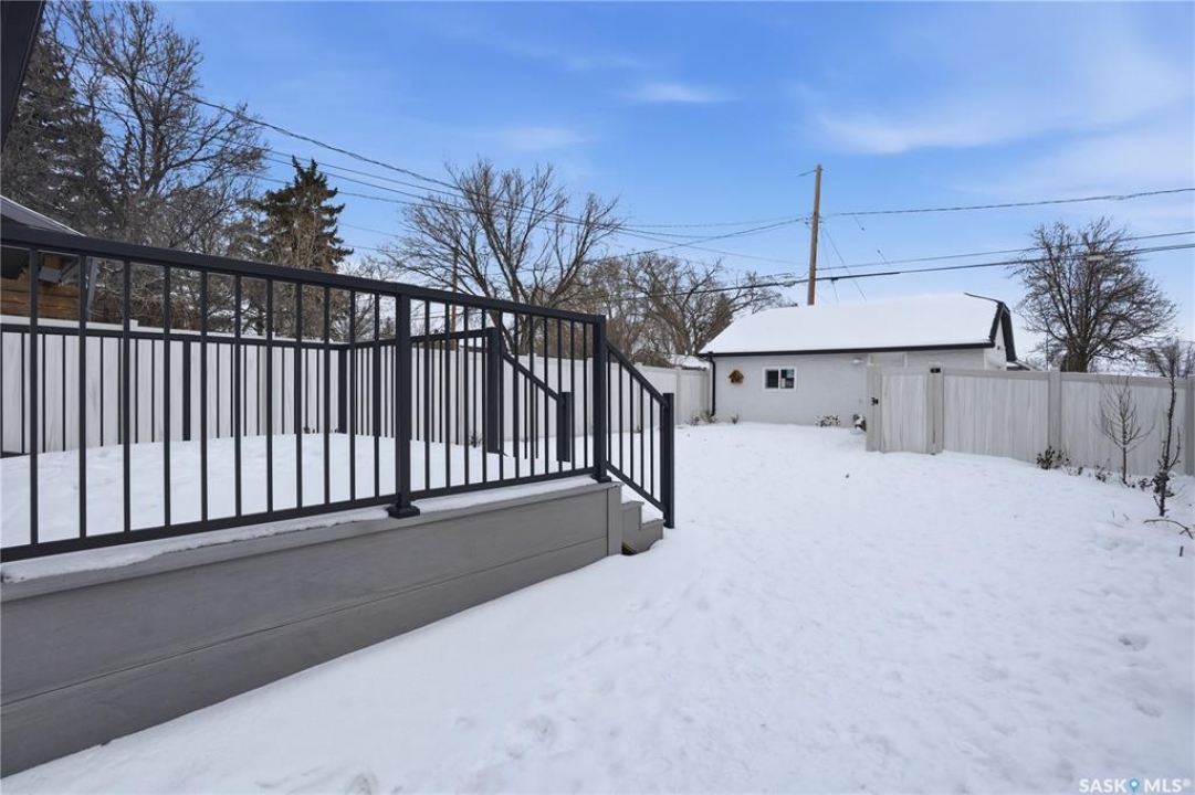 If you're looking for a home that feels brand new without the brand-new price tag, this one is a must-see. While officially 102 years young, extensive renovations have transformed this home into a space that looks and feels like it was built just a few years ago. The exterior makes a strong first impression with a sleek mix of stucco and metal siding, along with a fully fenced, landscaped backyard that was completed in the summer of 2025.. A composite rear deck creates the perfect space for entertaining or relaxing outdoors. Inside, the open-concept main floor is bright and modern, featuring durable vinyl plank flooring and light, neutral paint tones that make the space feel airy and easy to personalize. The kitchen is a standout with white cabinetry, quartz countertops, a central island, and stainless steel appliances. A sunny breakfast nook with a large picture window sits just off the kitchen. The living room offers plenty of flexibility, with space for both lounging and dining, or even a curated plant-filled retreat. A main-floor bedroom with a walk-in closet is a rare and valuable bonus, paired with a stylish four-piece bathroom that also includes laundry. Upstairs, you'll find two additional bedrooms and a convenient two-piece bathroom. The undeveloped basement provides ample storage. Outside, the low-maintenance front yard features a large mature tree offering summer shade. A double detached garage completes this beautifully updated home.