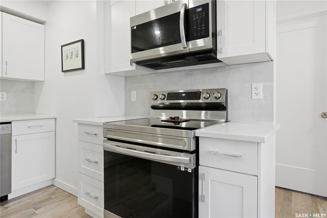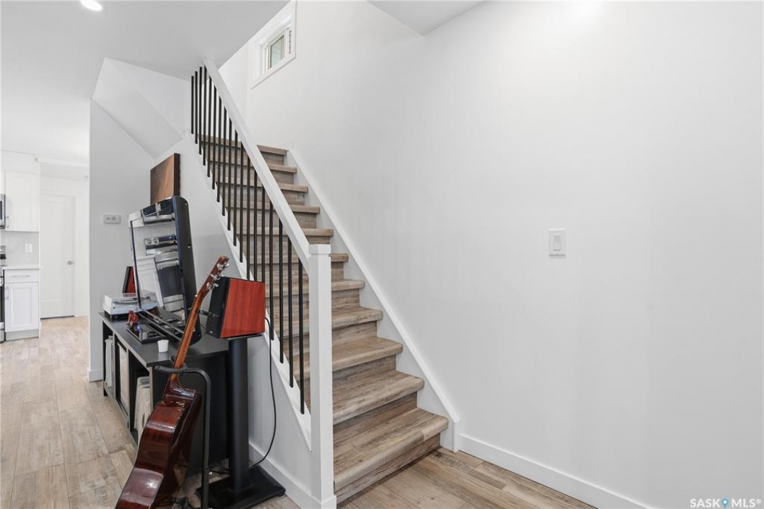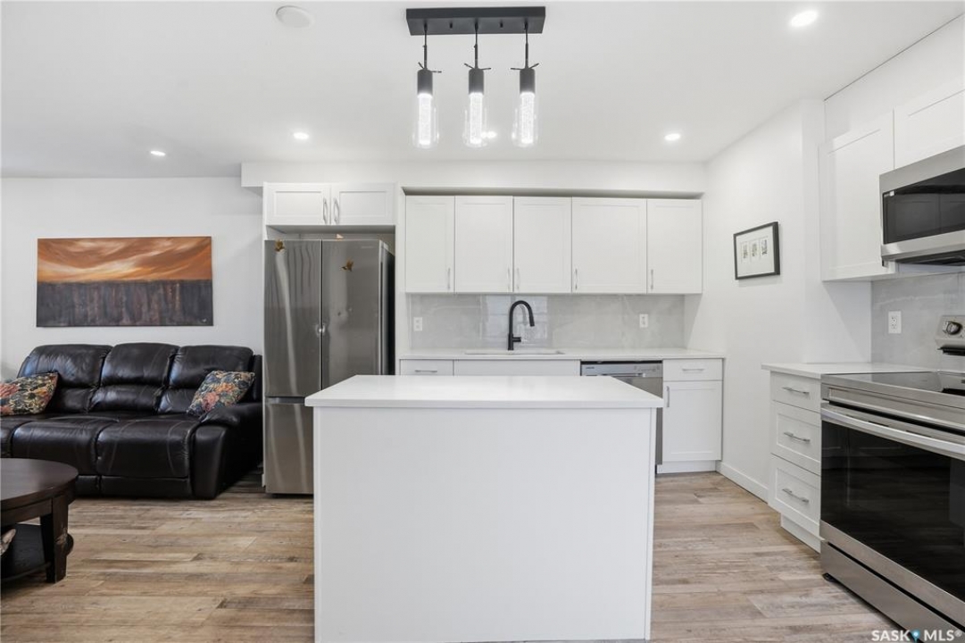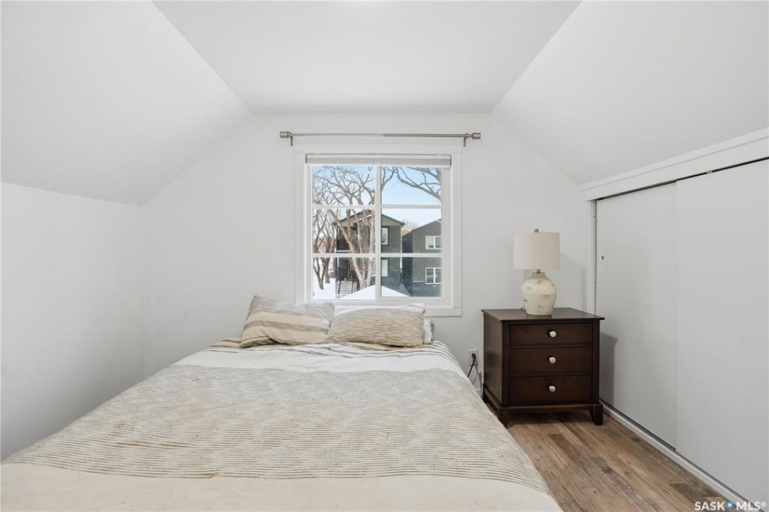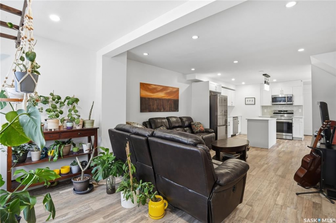 If you're looking for a home that feels brand new without the brand-new price tag, this one is a must-see. While officially 102 years young, extensive renovations have transformed this home into a space that looks and feels like it was built just a few years ago. The exterior makes a strong first impression with a sleek mix of stucco and metal siding, along with a fully fenced, landscaped backyard that was completed in the summer of 2025.. A composite rear deck creates the perfect space for entertaining or relaxing outdoors. Inside, the open-concept main floor is bright and modern, featuring durable vinyl plank flooring and light, neutral paint tones that make the space feel airy and easy to personalize. The kitchen is a standout with white cabinetry, quartz countertops, a central island, and stainless steel appliances. A sunny breakfast nook with a large picture window sits just off the kitchen. The living room offers plenty of flexibility, with space for both lounging and dining, or even a curated plant-filled retreat. A main-floor bedroom with a walk-in closet is a rare and valuable bonus, paired with a stylish four-piece bathroom that also includes laundry. Upstairs, you'll find two additional bedrooms and a convenient two-piece bathroom. The undeveloped basement provides ample storage. Outside, the low-maintenance front yard features a large mature tree offering summer shade. A double detached garage completes this beautifully updated home.