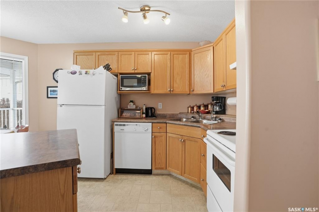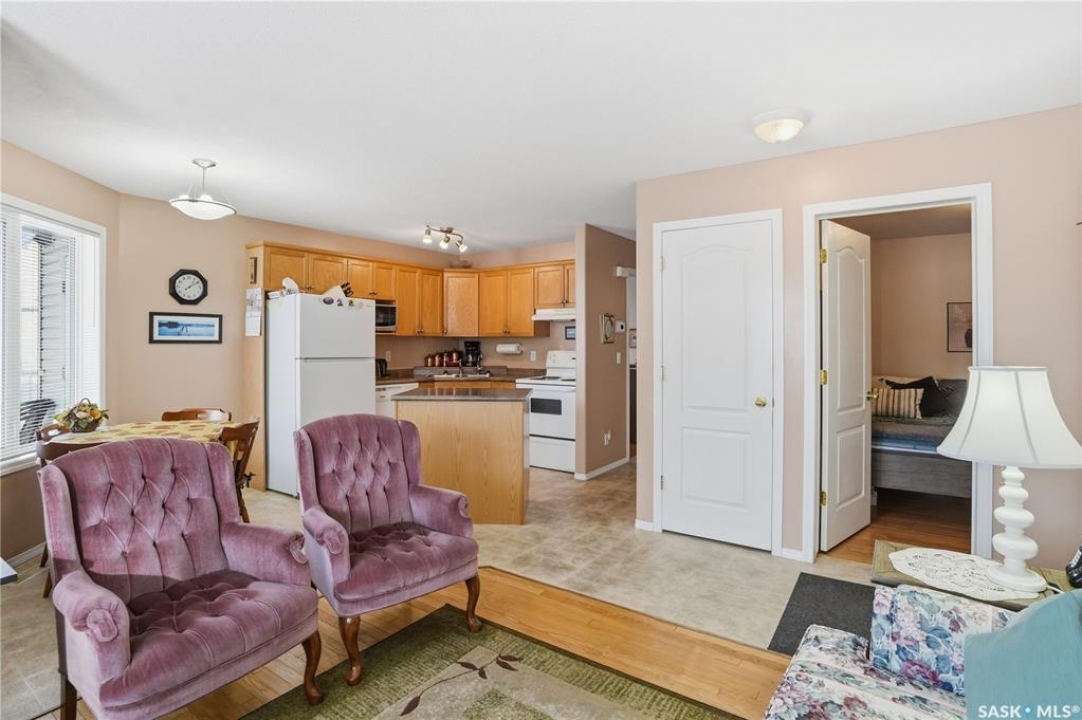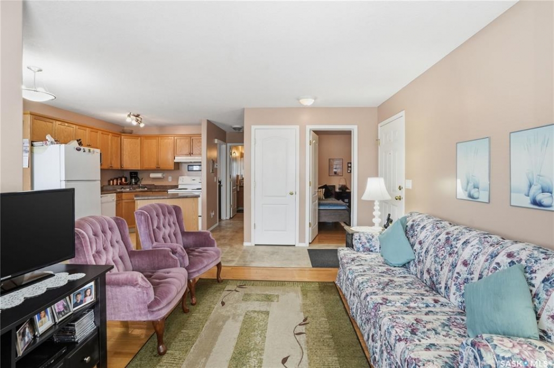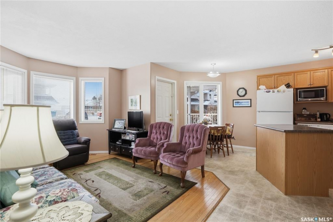 Welcome to 3281 Woodhams Drive East, a south-facing condo in an incredibly convenient location. Situated directly across the street from the Sandra Schmirler Leisure Centre, you'll have easy access to the gym, indoor pool, library, bus hub, and more — everything you need is right outside your door. Inside, the unit is bright and functional, with hardwood floors throughout the living room and bedrooms. The main living space gets great natural light and flows into a dedicated dining area with a door leading out to a spacious, sunny patio — perfect for morning coffee or relaxing in the evening. The open kitchen features an island and plenty of cabinet space, making everyday living easy. Both bedrooms are well-sized, each with hardwood floors and walk-in closets. A full four-piece bathroom completes the interior. You'll also appreciate the practical features this unit offers, including in-suite laundry, additional storage off the patio, and two parking stalls — one located conveniently right outside the unit. A solid opportunity in a location that truly delivers on convenience. Come take a look and see how well this space works.